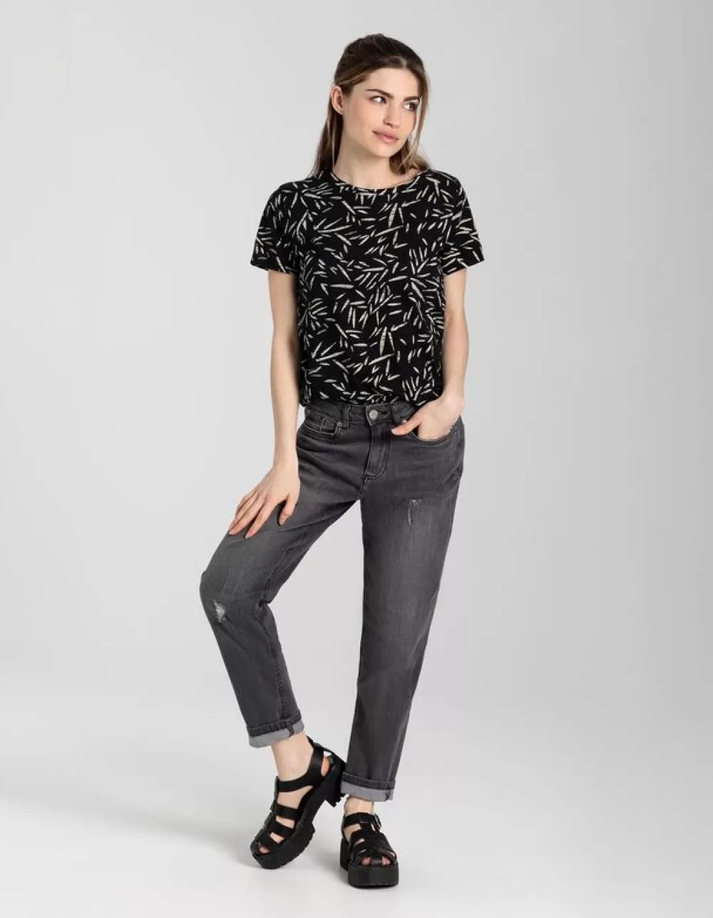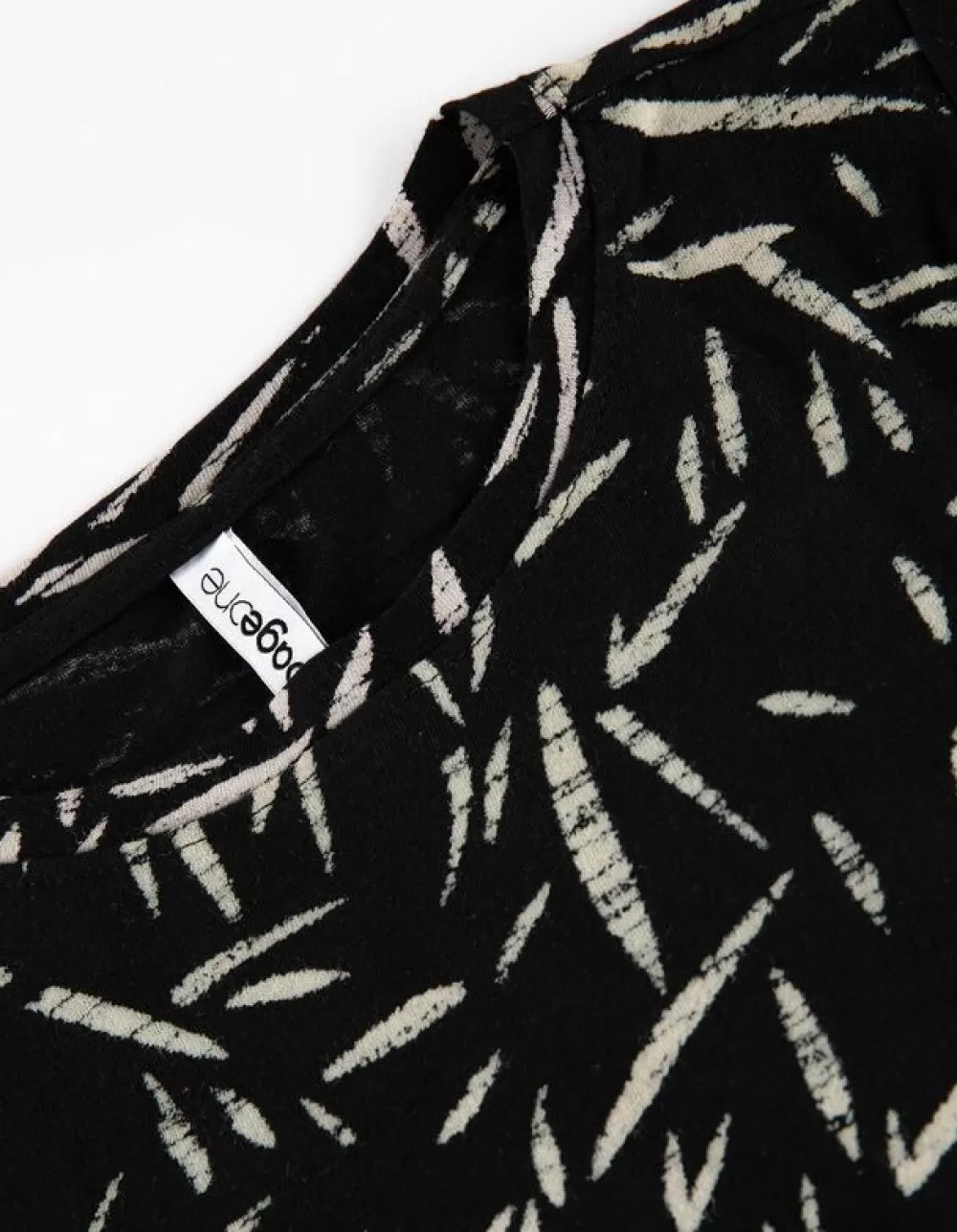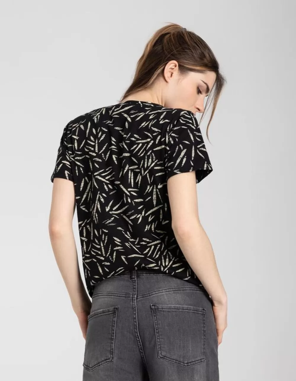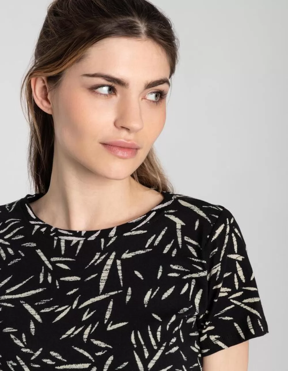 ZwartMotief All-OverRonde HalsKorte MouwenKatoen