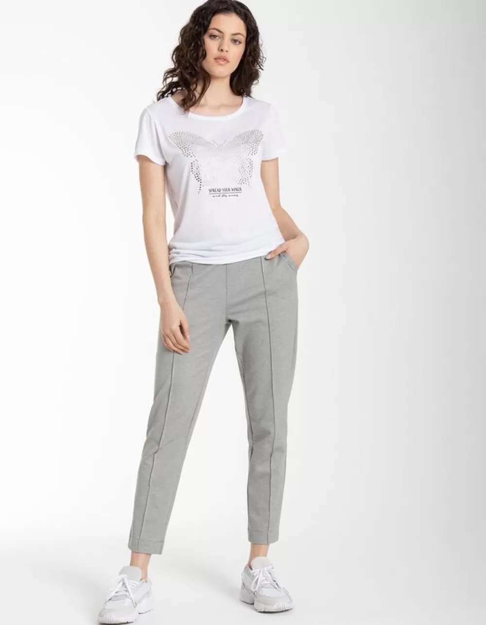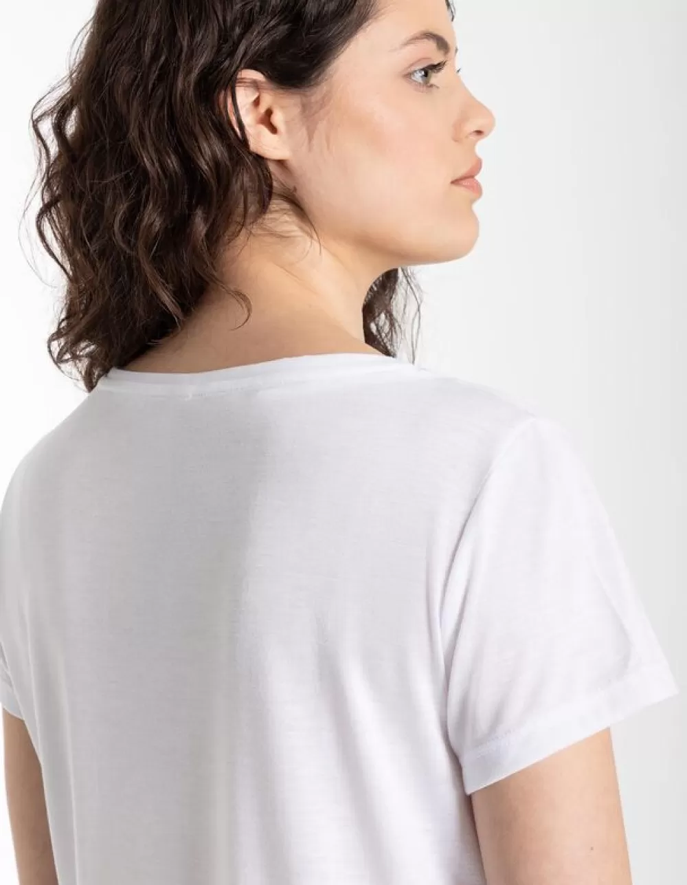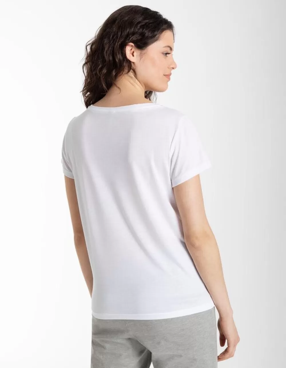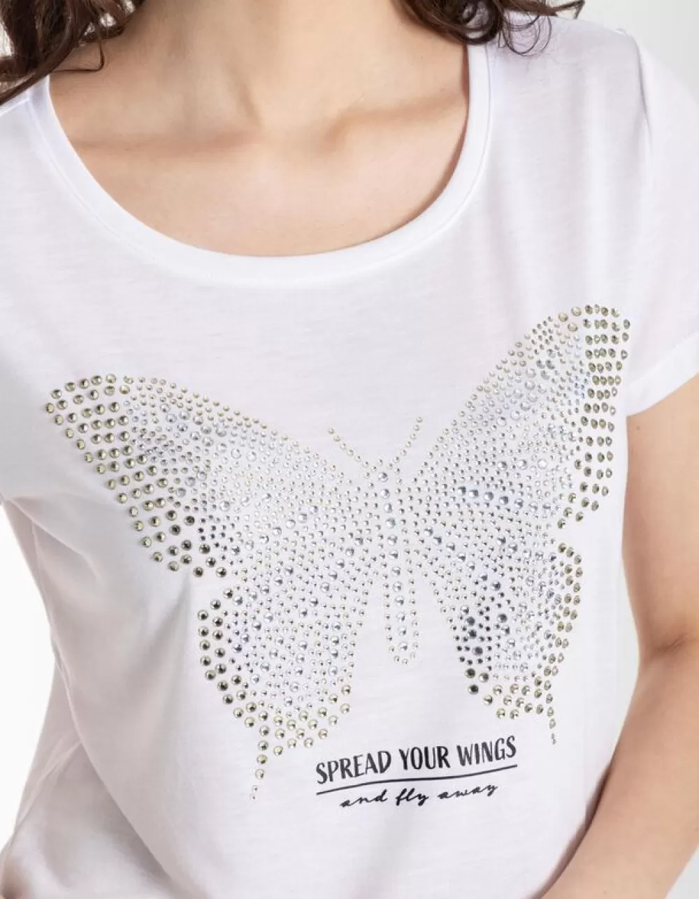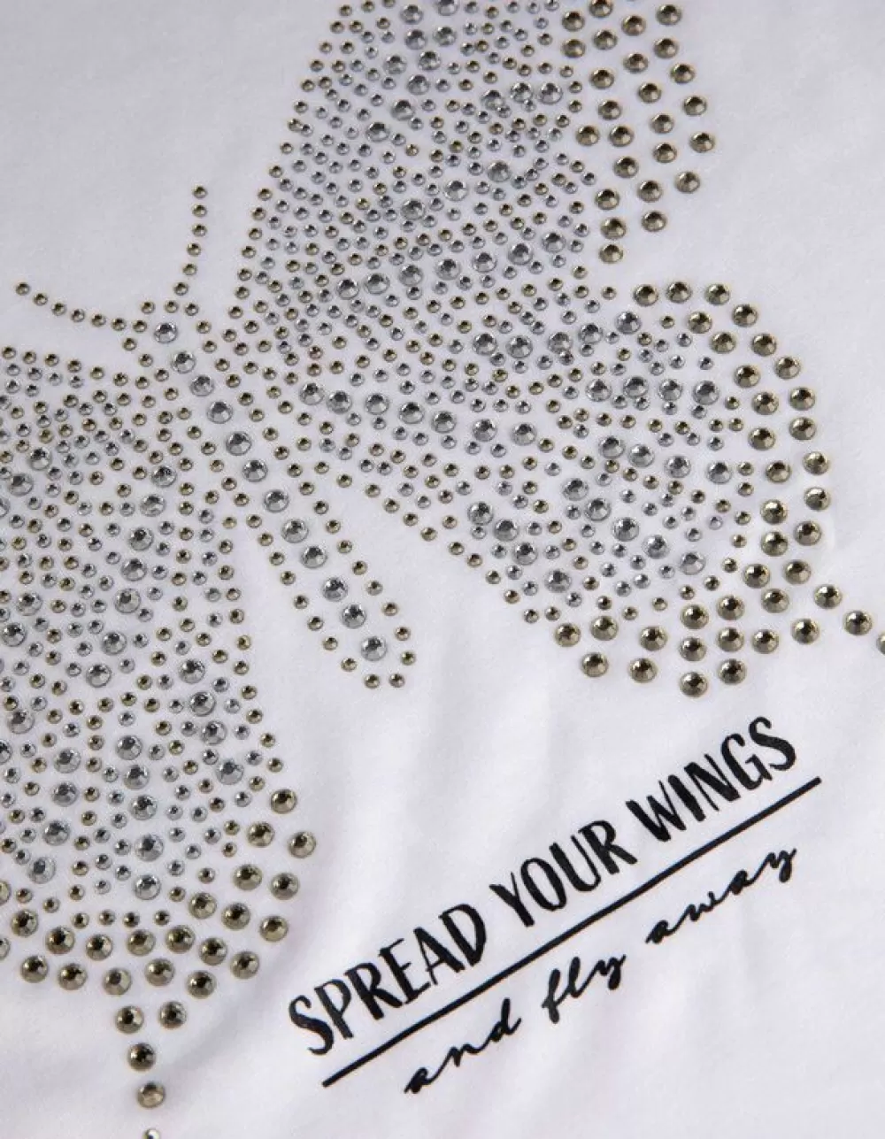 WitEffenRonde HalsKorte MouwenViscoseSiersteentjes