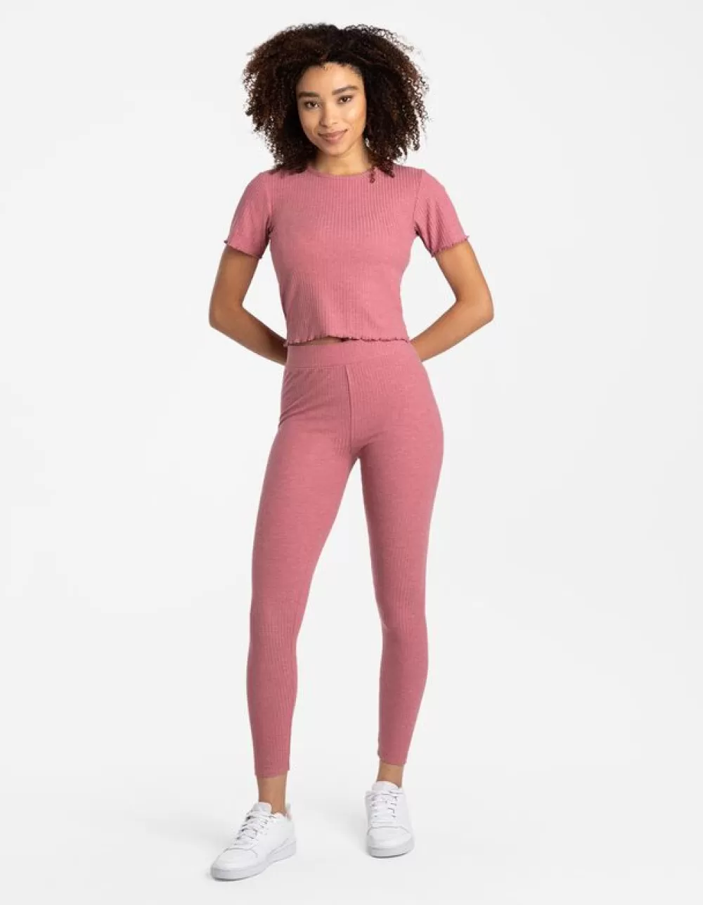 RozeEffenRonde HalsKorte MouwenViscoseZonder SluitingGeribde StructuurMet Stretch