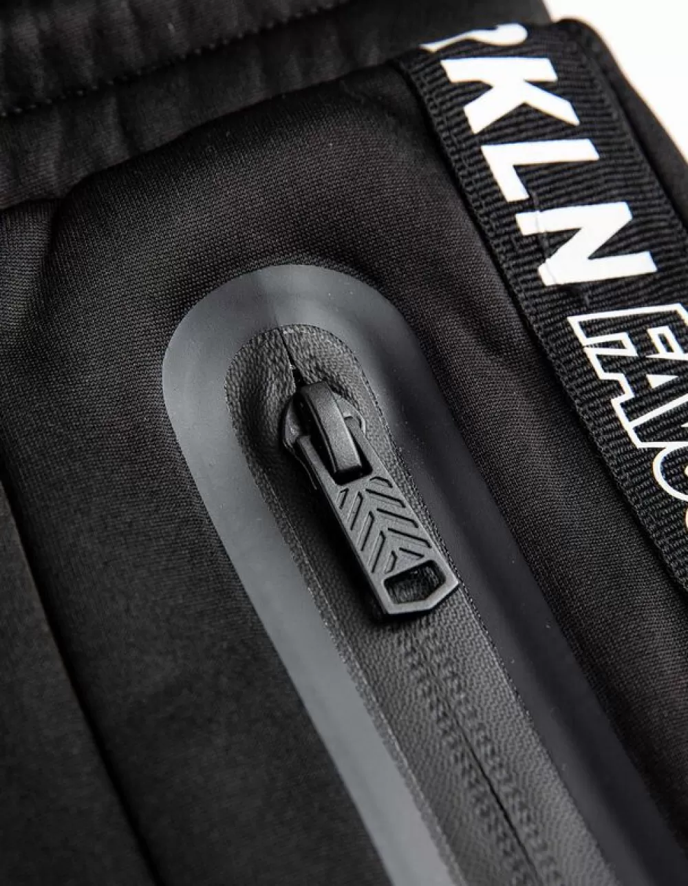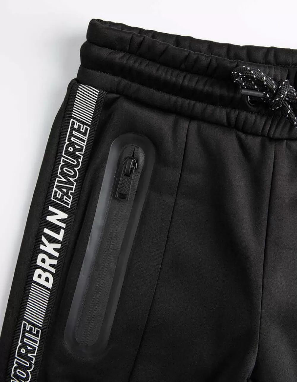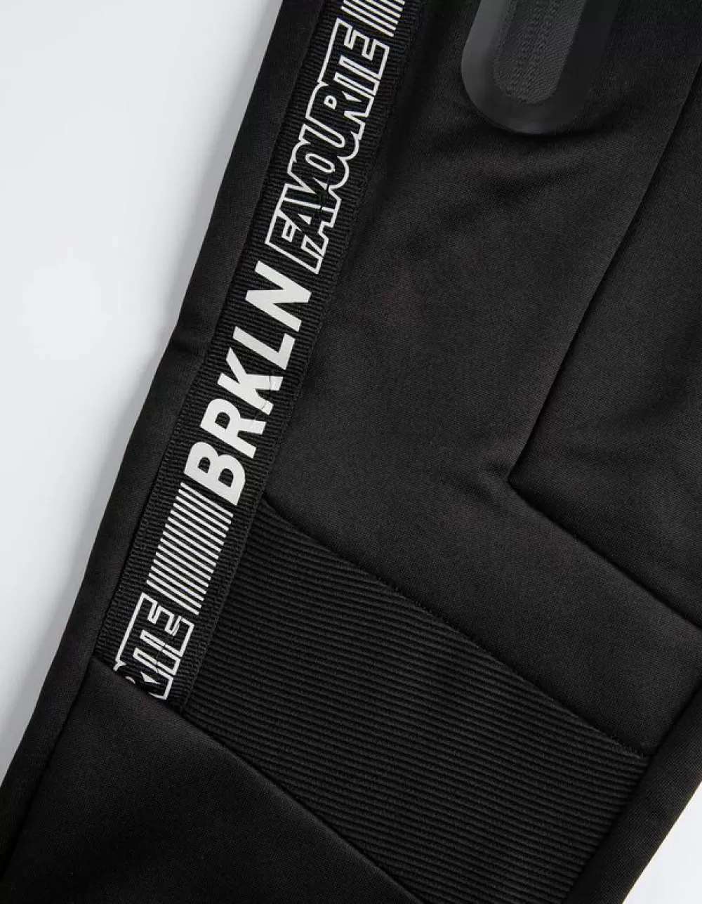 ZwartEffenRegular WaistRinse WashedNormale LengtePolyesterKoordContraststrepenSteekzakkenPrint