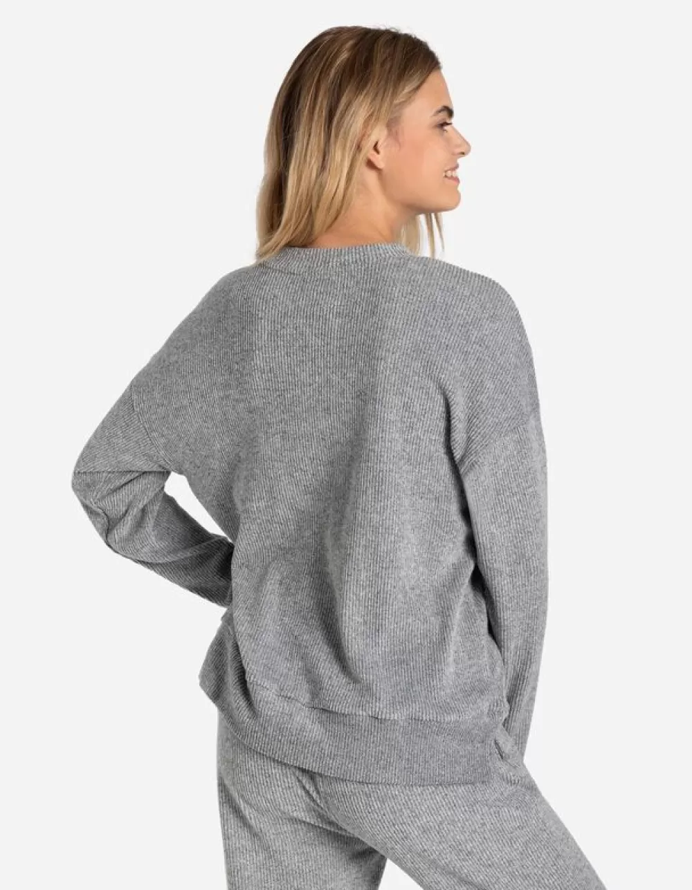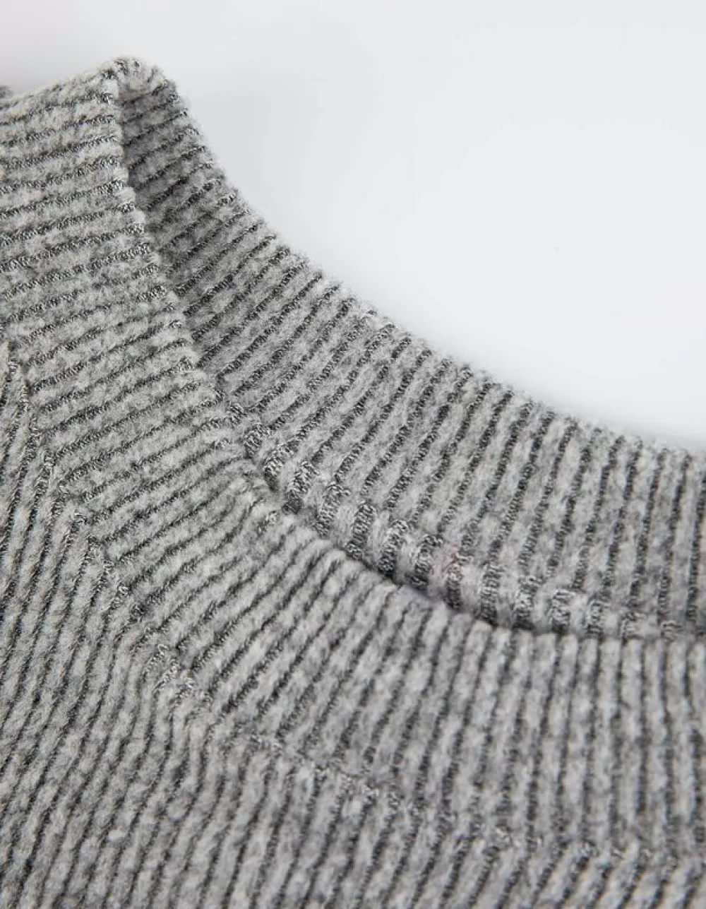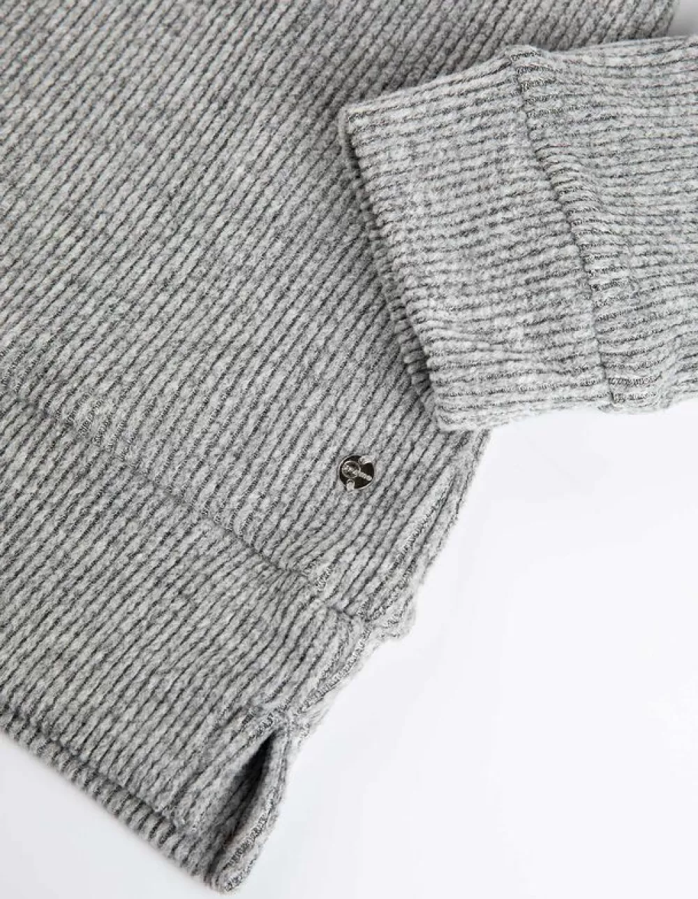GrijsGemeleerdRonde HalsLange MouwenViscosemixGeribde StructuurMetallic Details