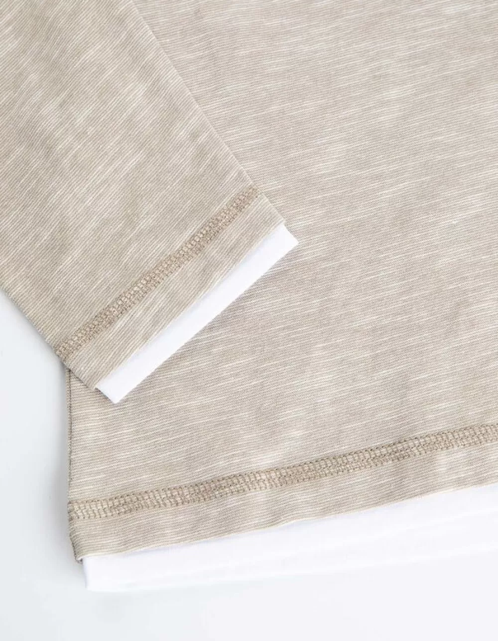 BeigeEffenRonde HalsLange MouwenKatoenZonder SluitingBorduurselsDubbellaagse LookMet Stretch