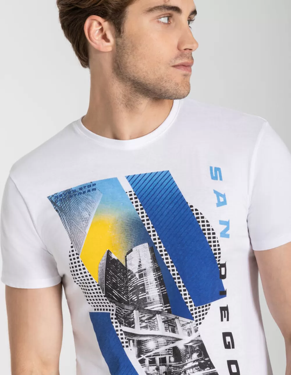 WitEffenRonde HalsKorte MouwenKatoenPrint