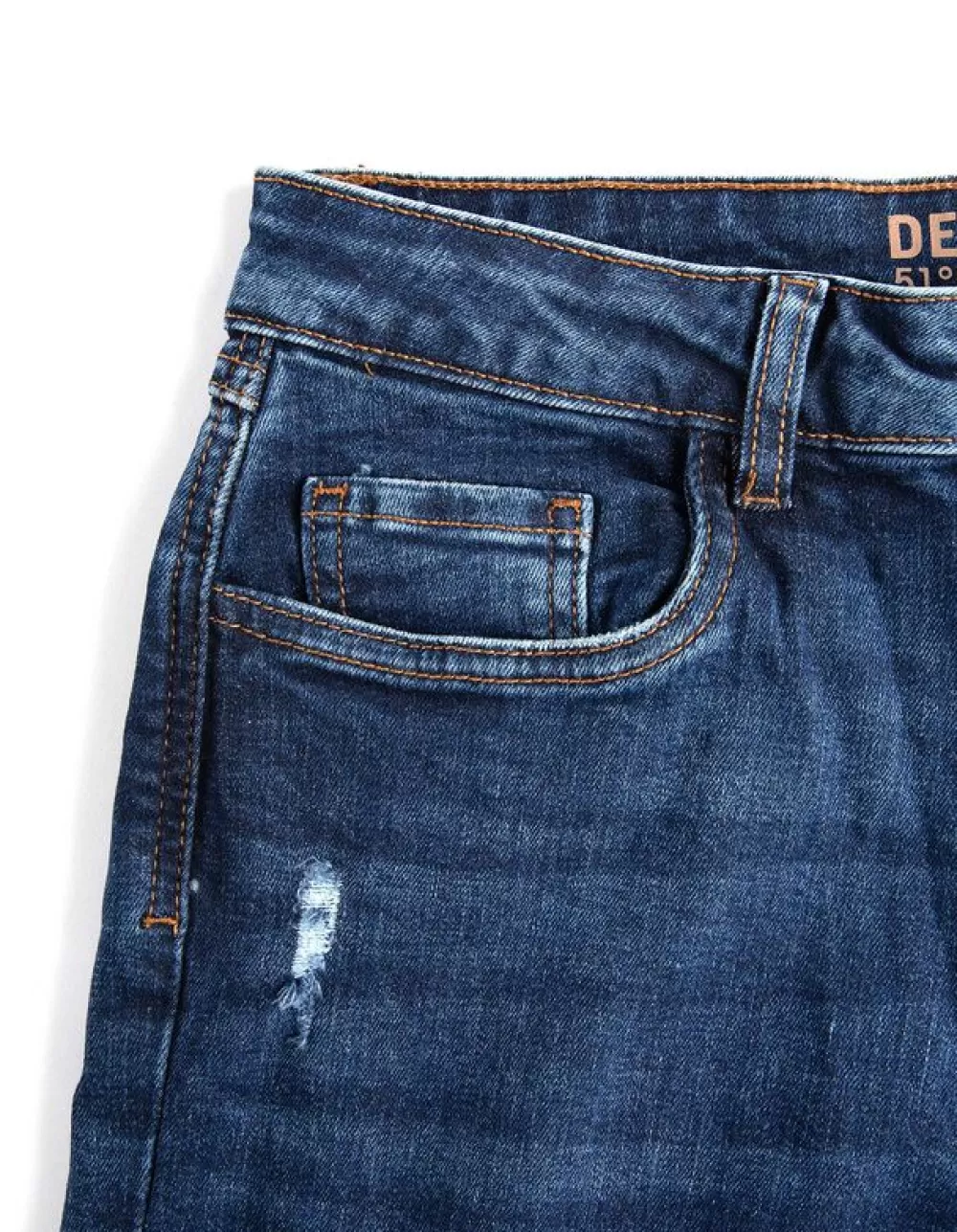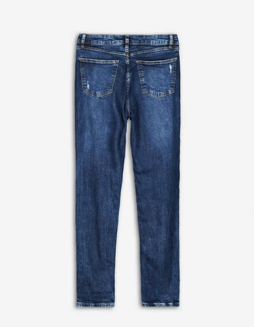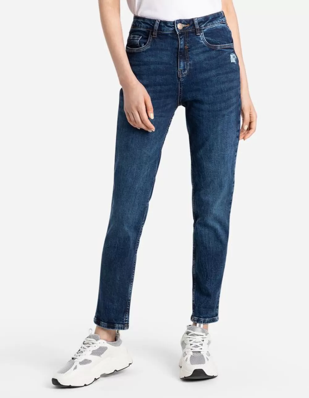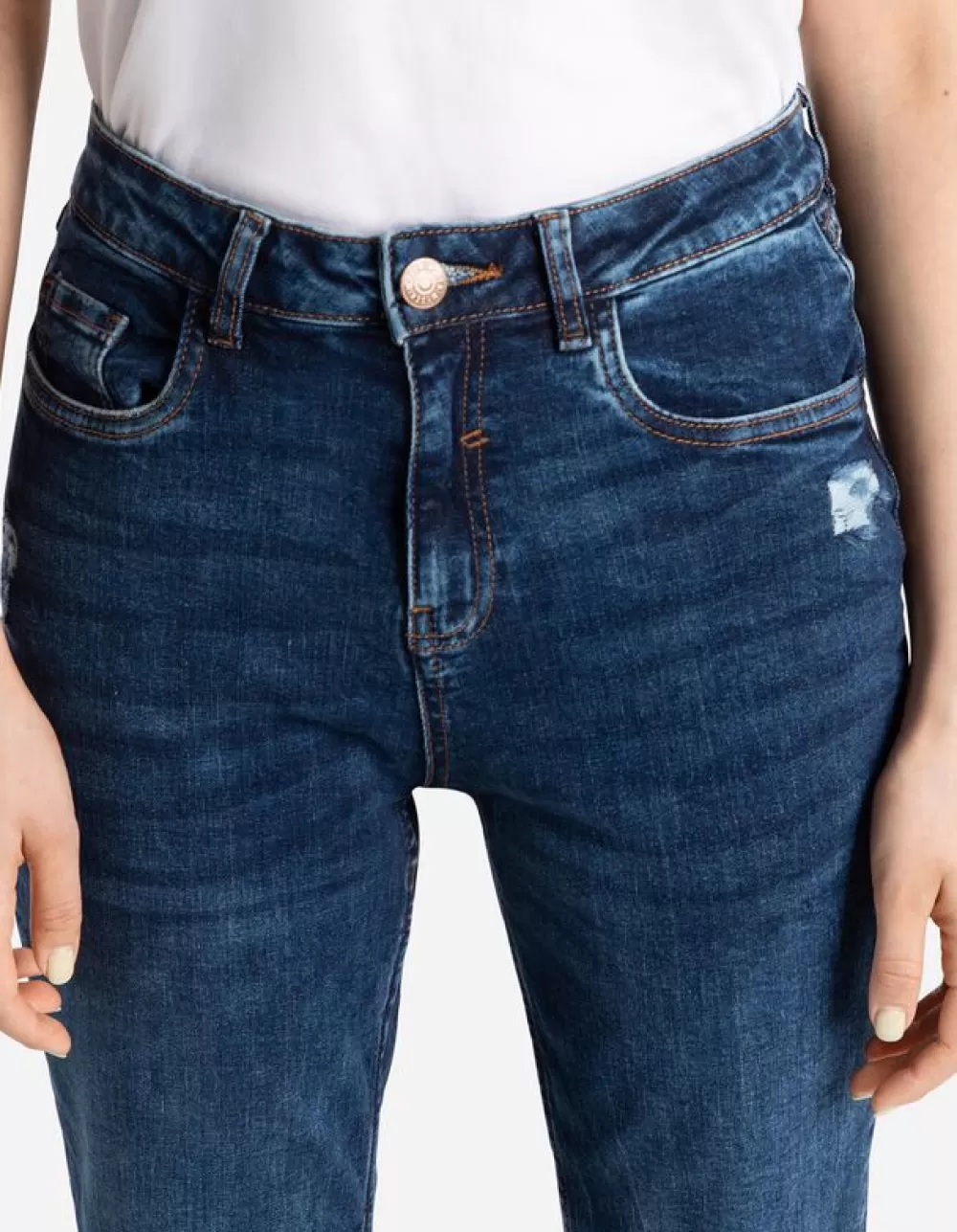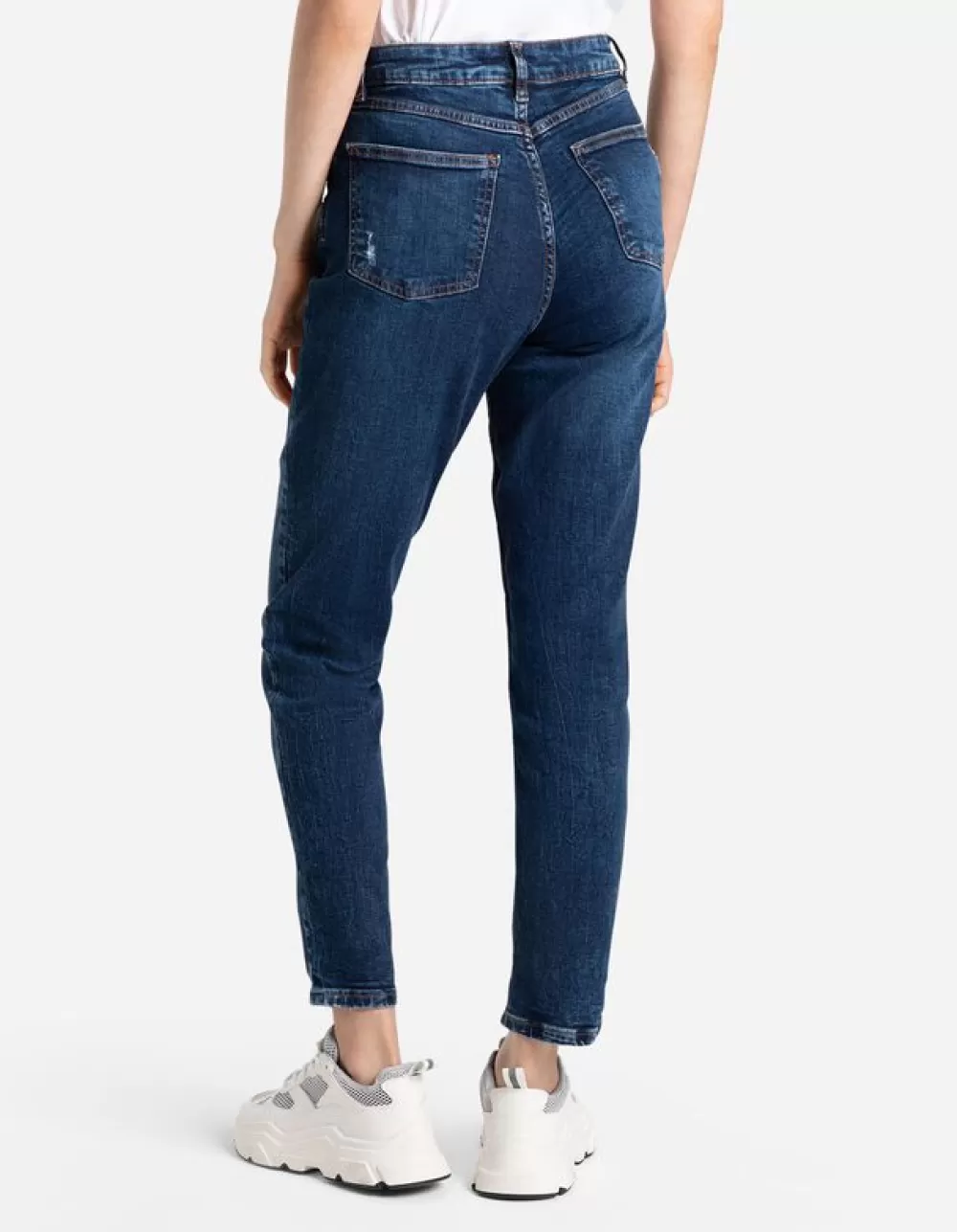 DonkerblauwDonkerblauw DenimRegular WaistWaseffectenEnkellengteDenimKnoop- En RitssluitingBurnt-Out Effect