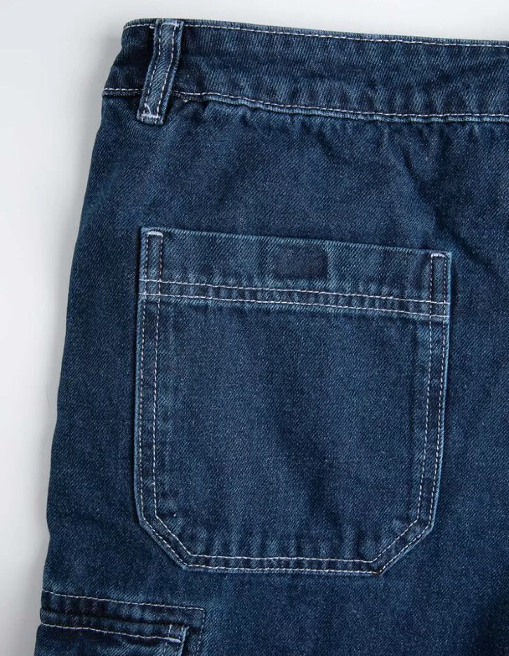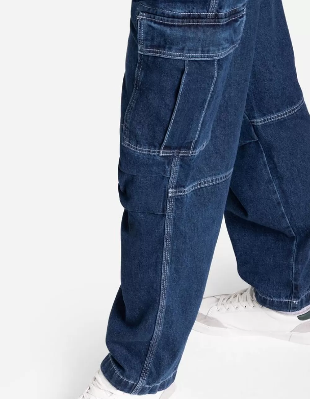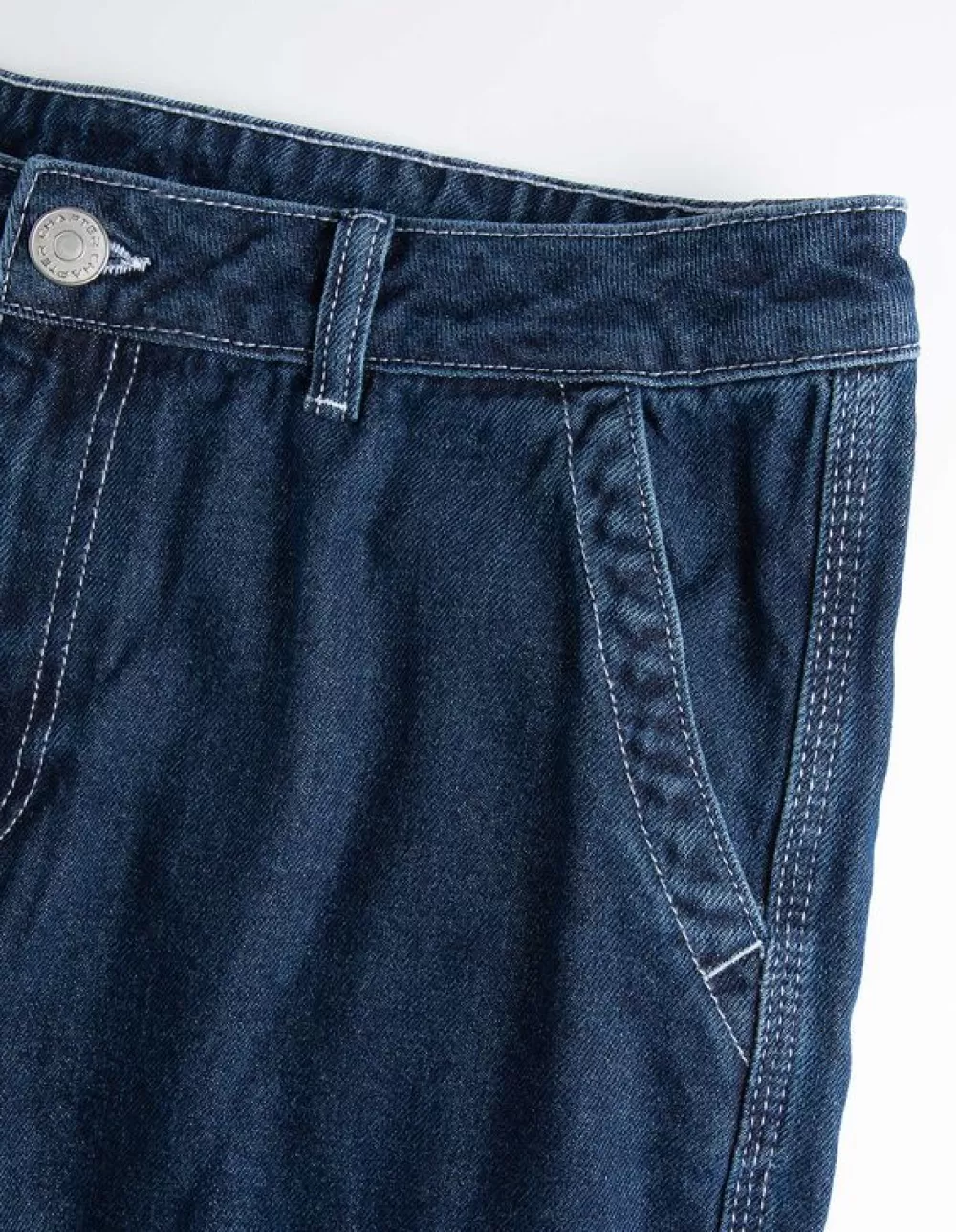 DonkerblauwRegular WaistRelaxed FitNormale LengteDenimKnoop- En RitssluitingOpgestikte Zakken