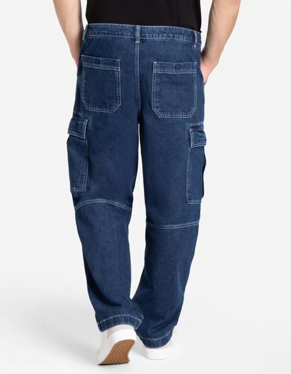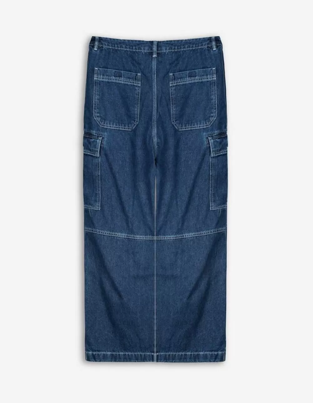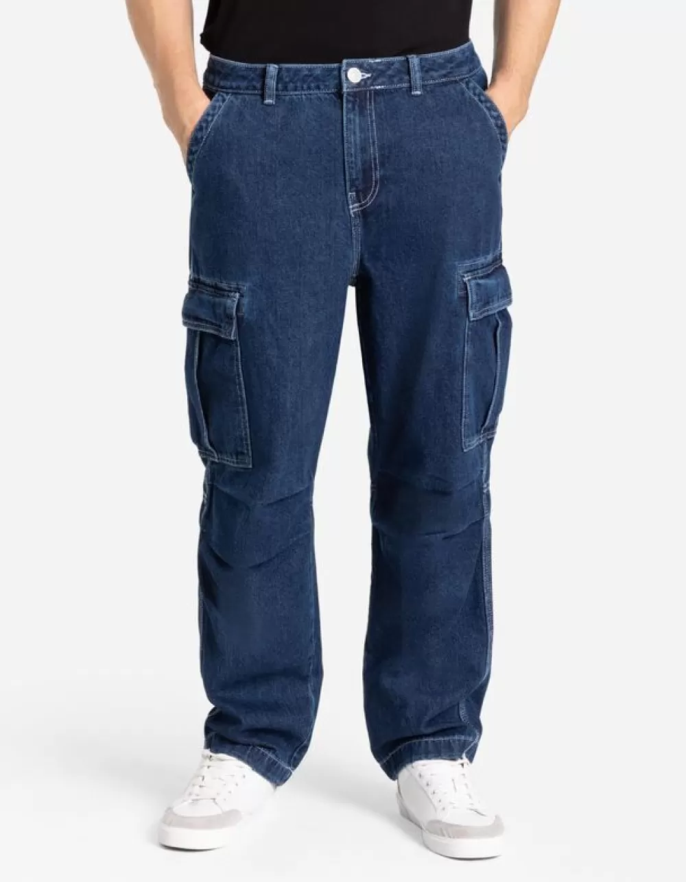 DonkerblauwRegular WaistRelaxed FitNormale LengteDenimKnoop- En RitssluitingOpgestikte Zakken