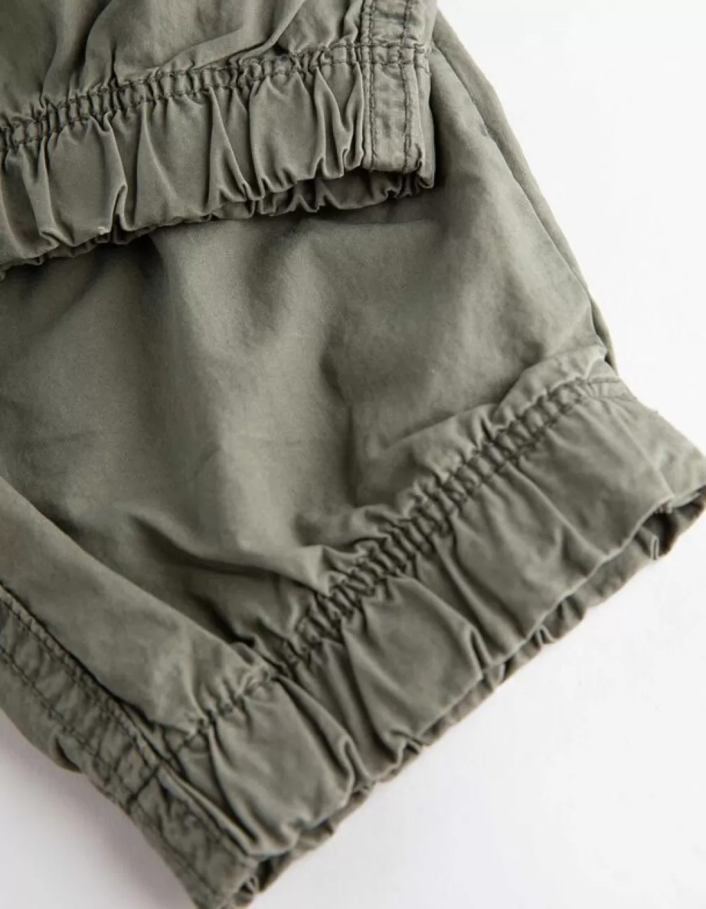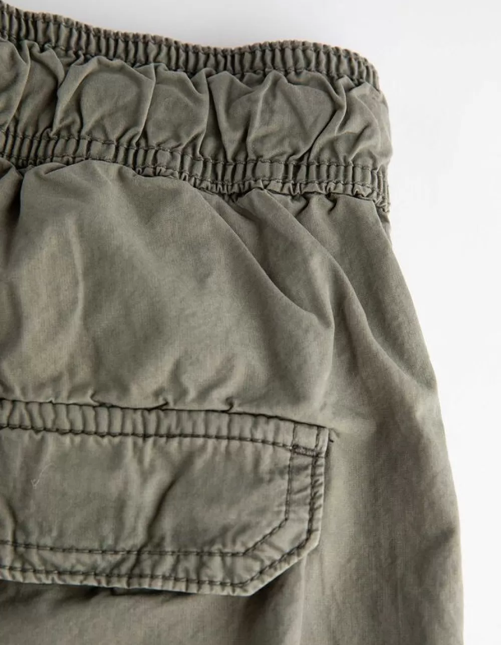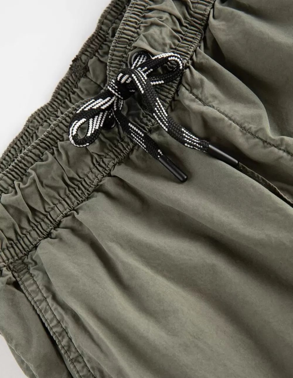 DonkergroenEffenRegular WaistRinse WashedNormale LengteKatoenKoordTekstprintOpgestikte ZakkenElastische Band
