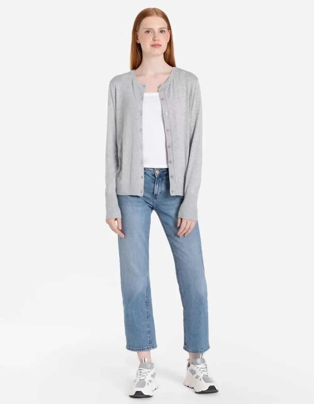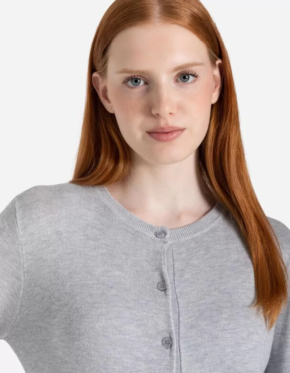 GrijsGemeleerdRonde HalsLange MouwenViscosemixKnoopsluitingMet StretchZacht MateriaalZacht Materiaal