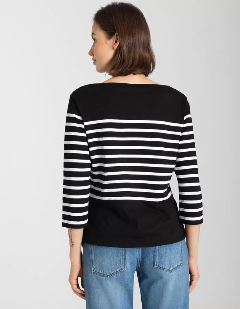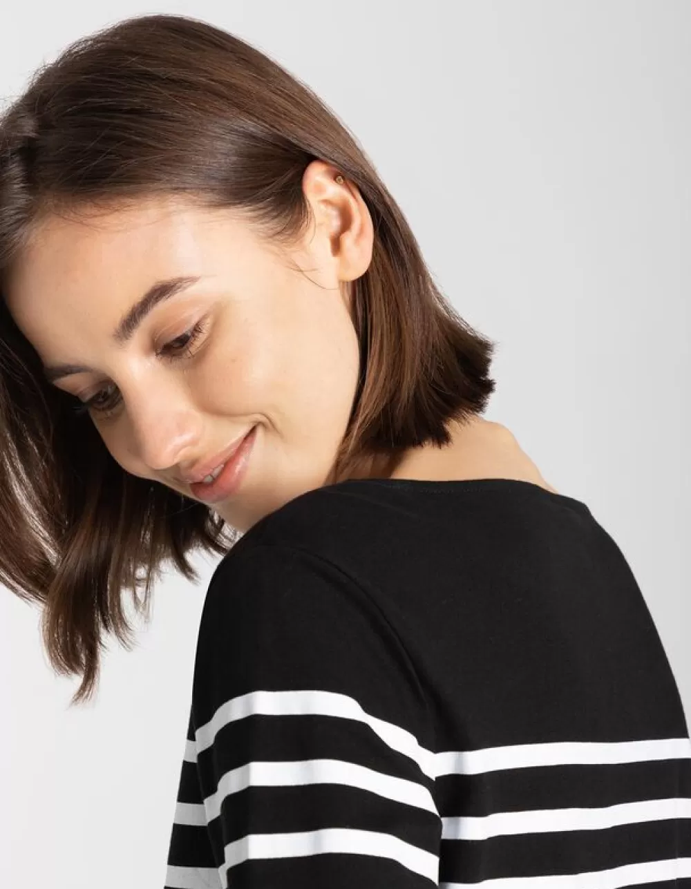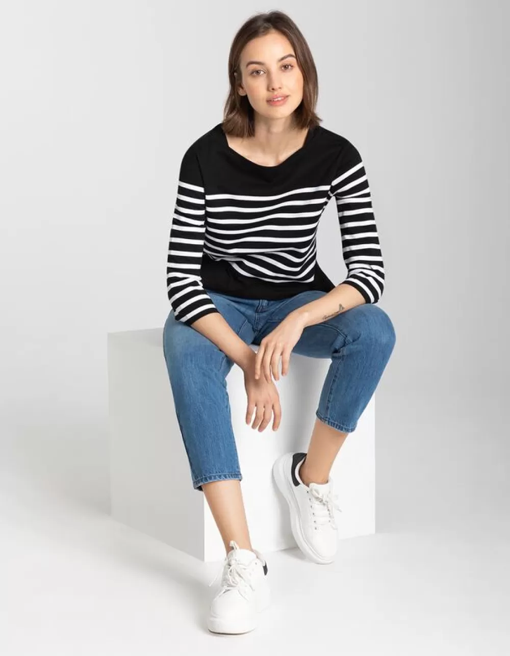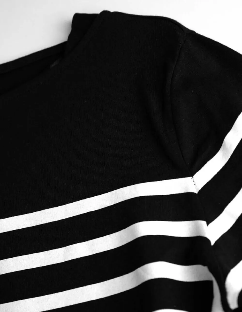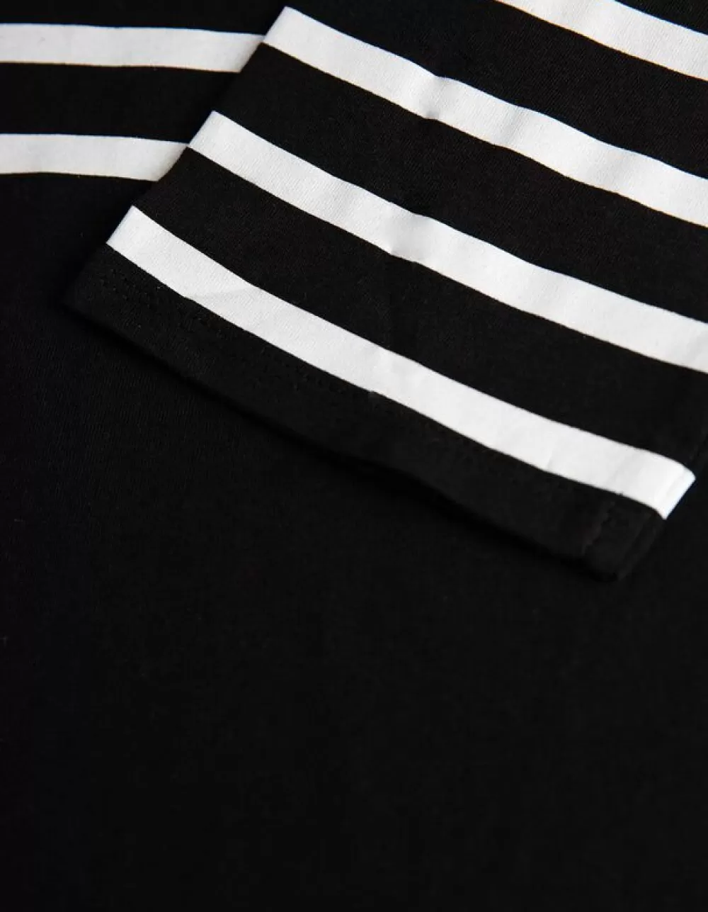 ZwartStrepenRonde Hals3/4-MouwenKatoenElastische Randen