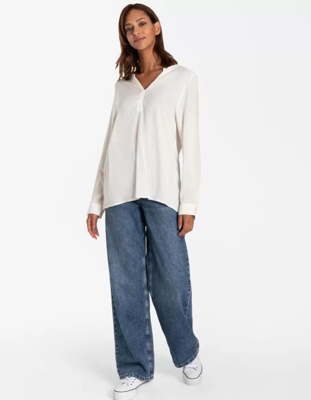 WitEffenV-HalsLange MouwenViscoseLanger Achterpand
