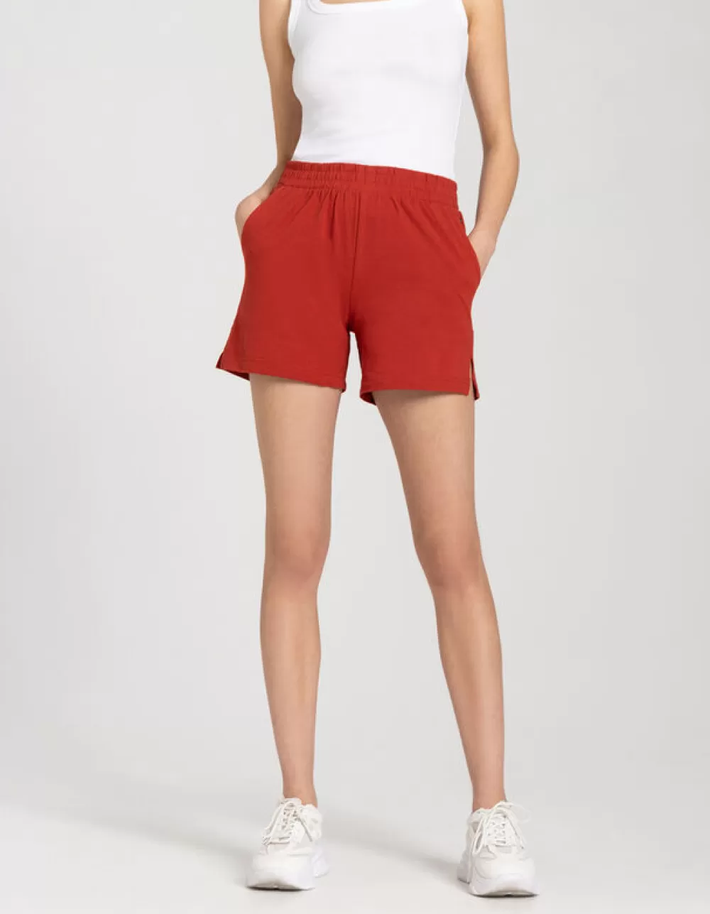 DonkerroodEffenRegular WaistDijlengteKatoenElastische Band
