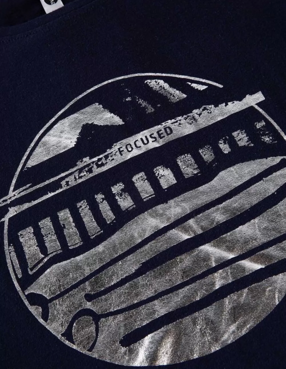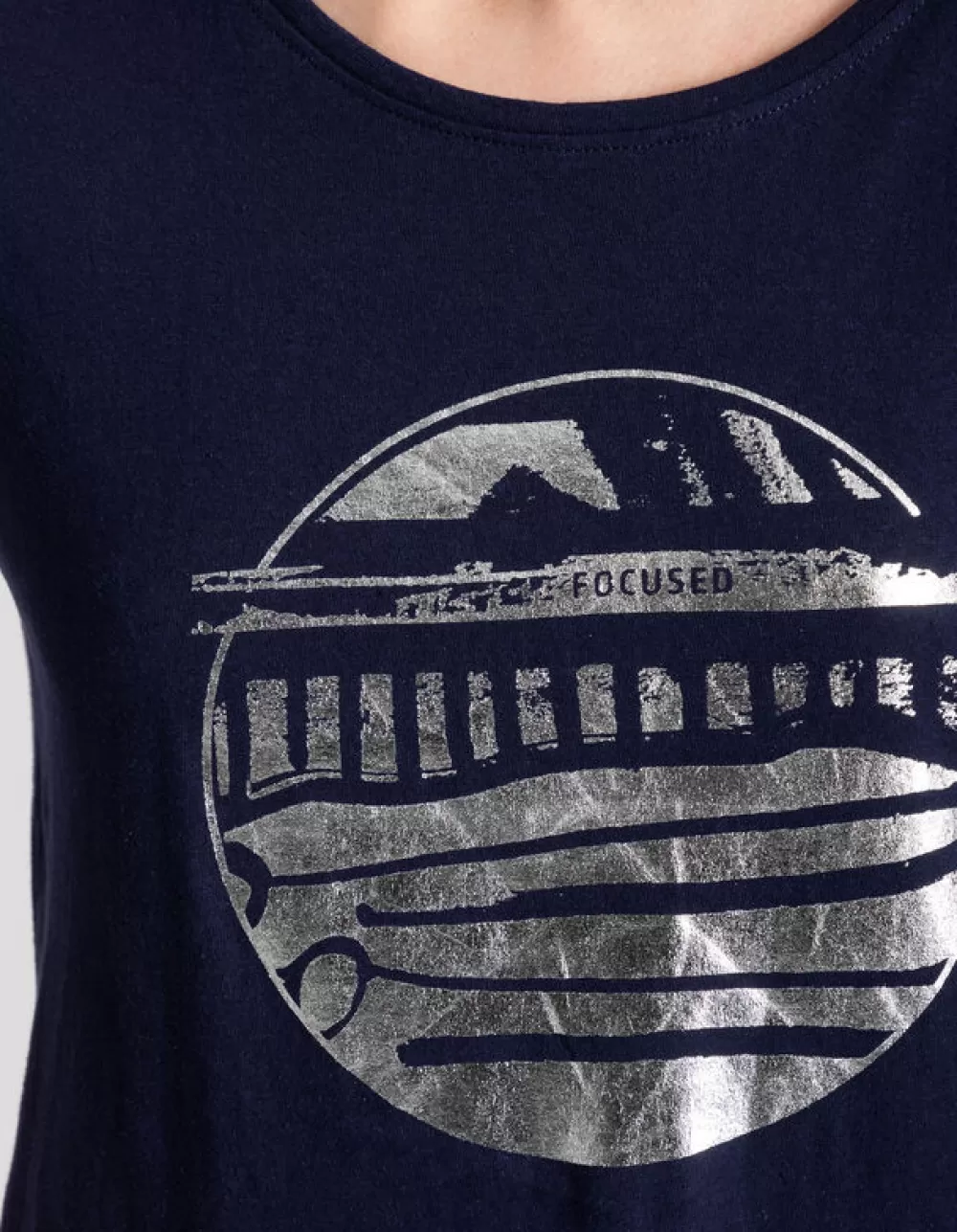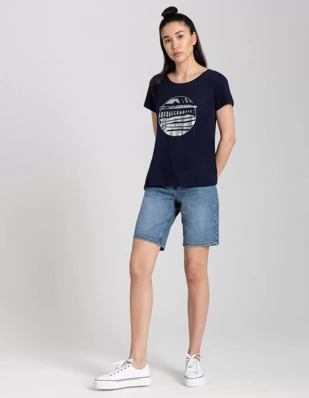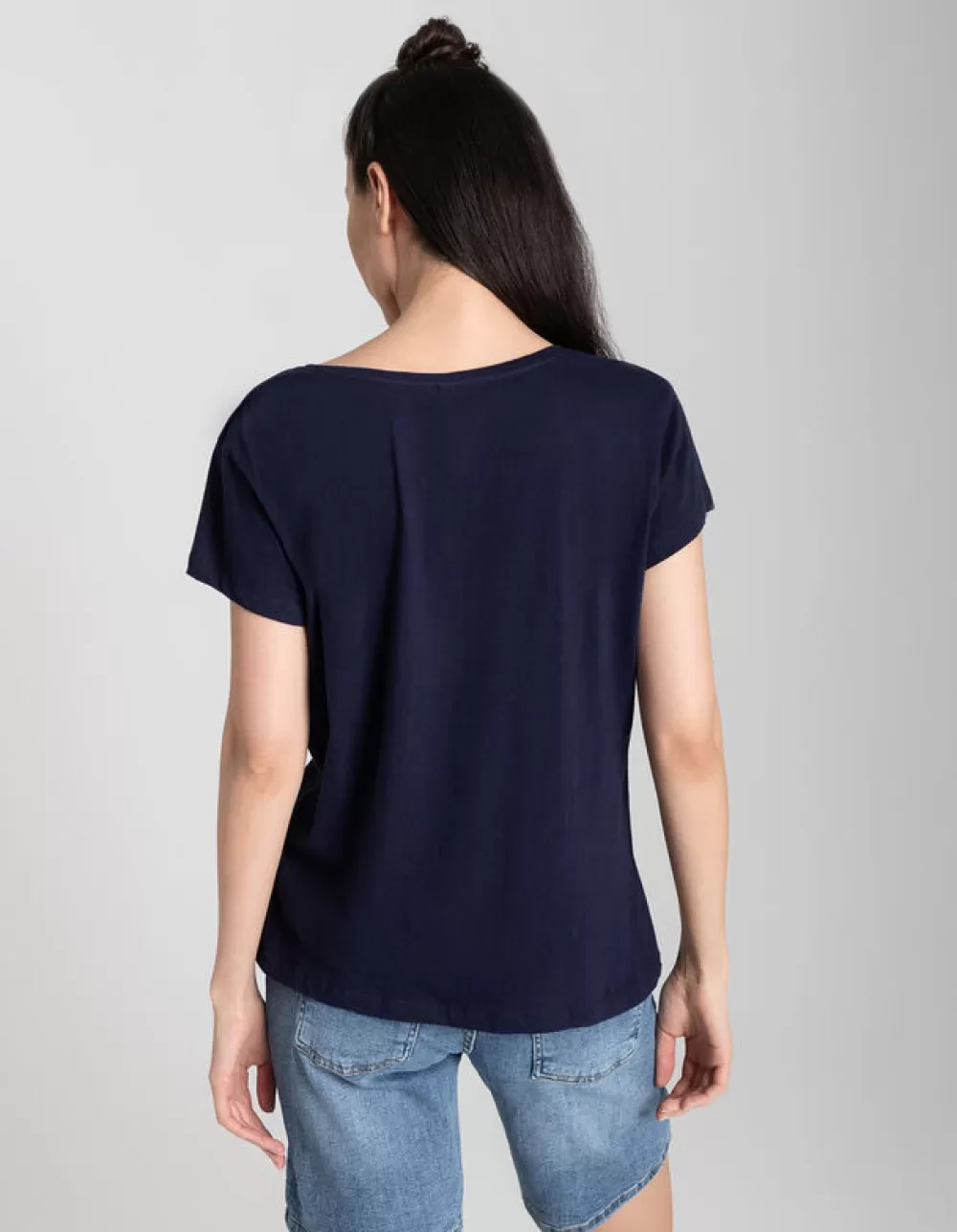 DonkerblauwEffenRonde HalsKorte MouwenKatoenPrint