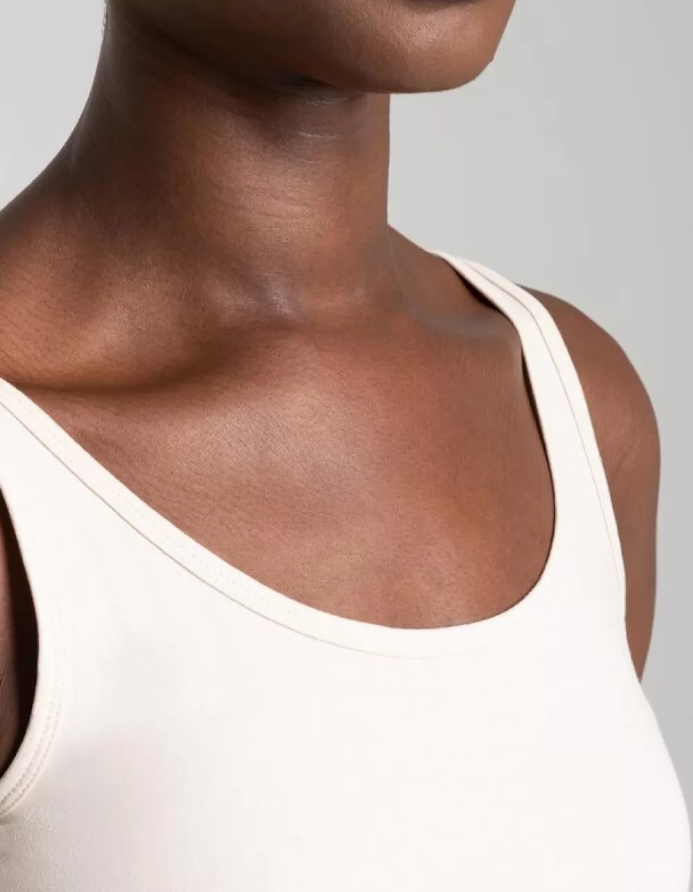 BeigeEffenRonde HalsBrede SchouderbandjesKatoenmixZonder SluitingMet Stretch