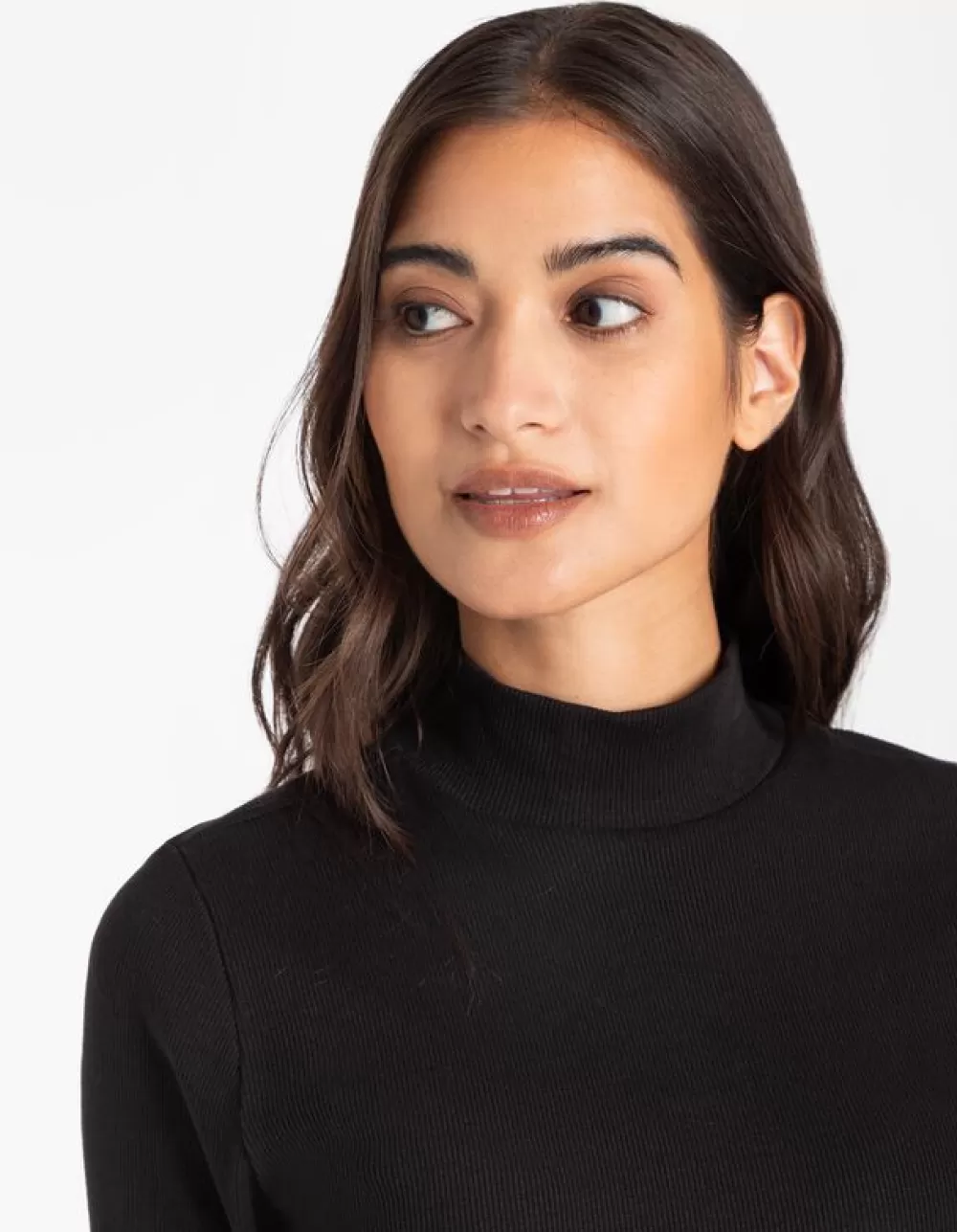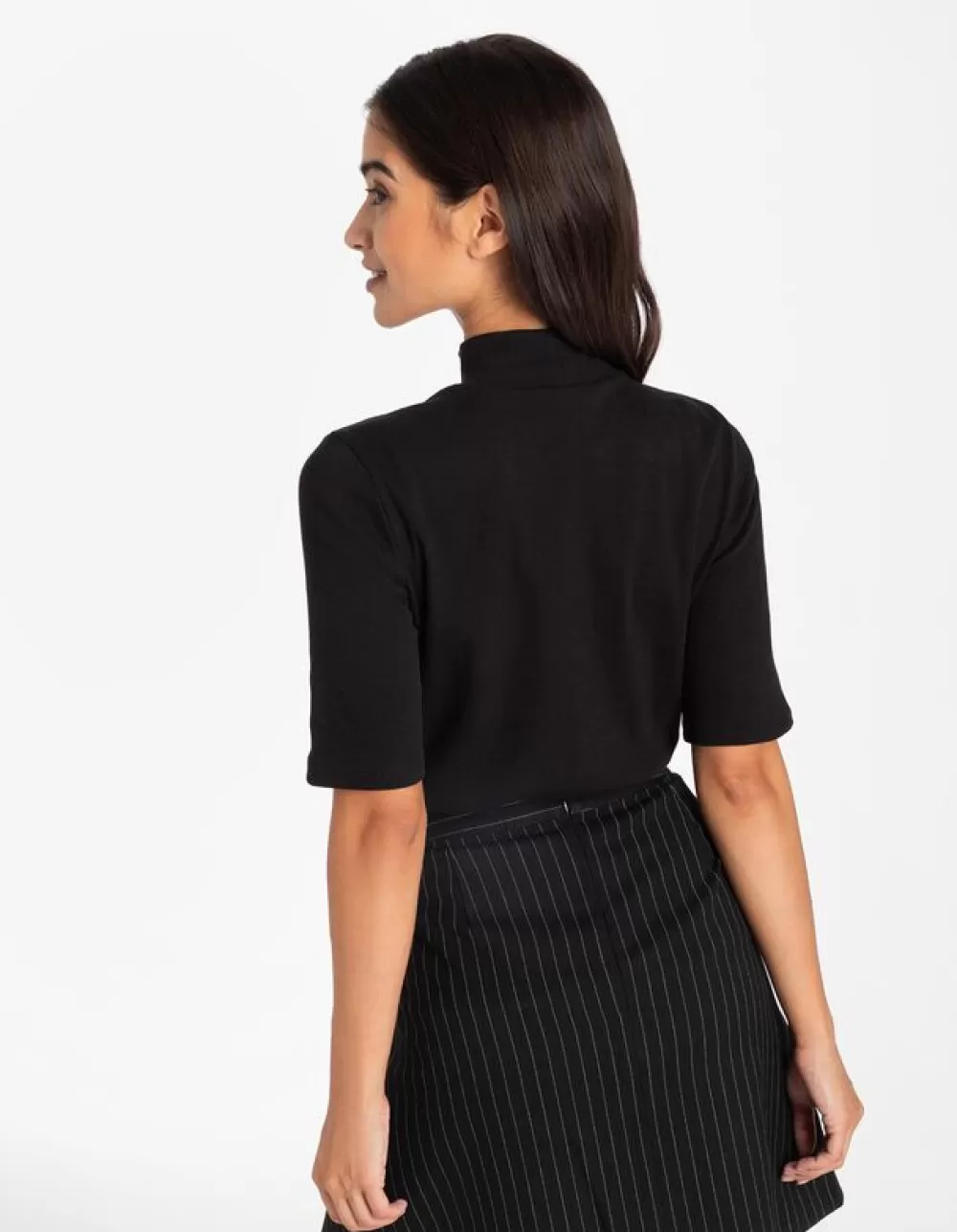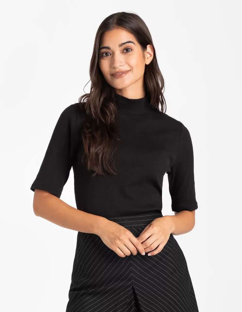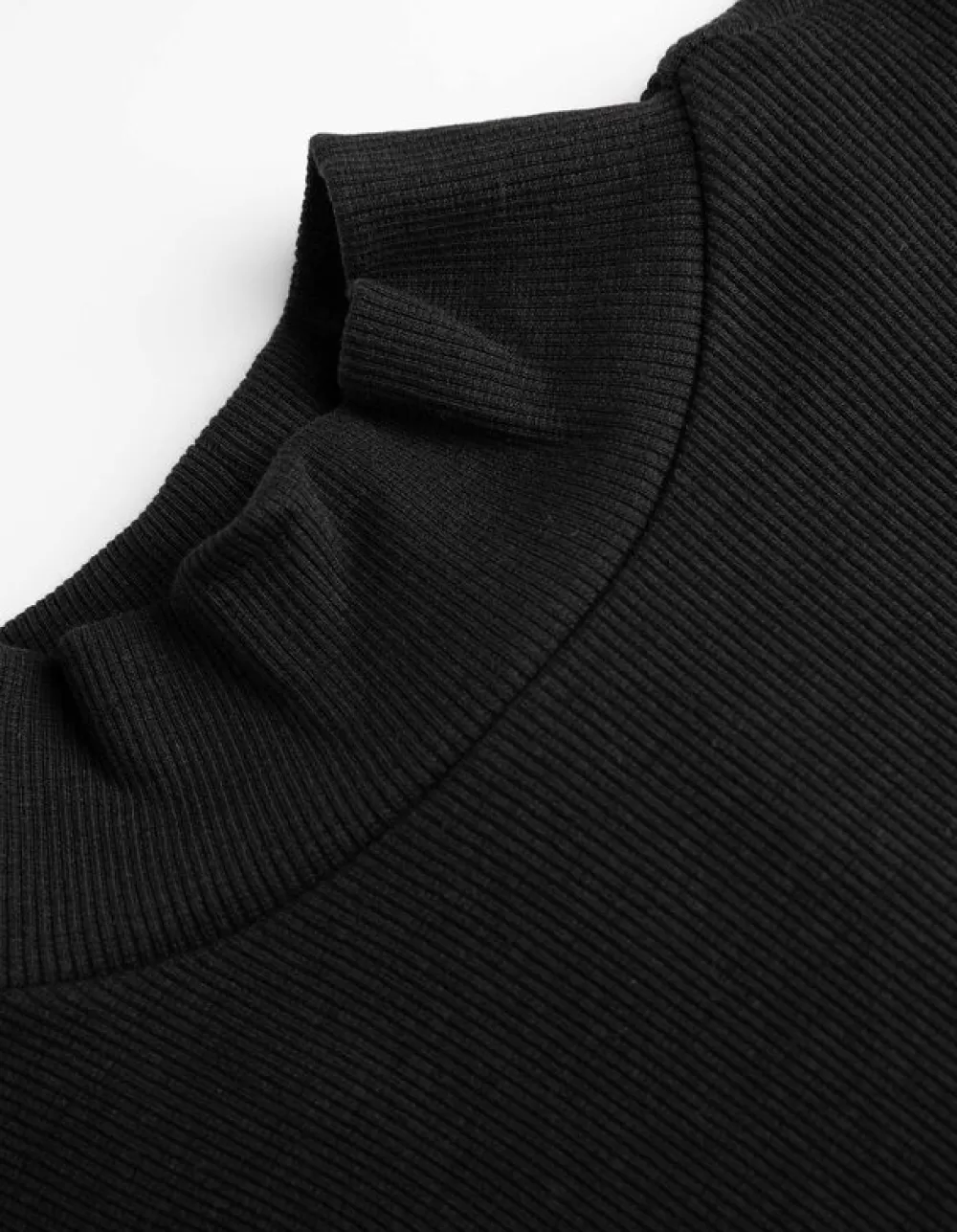 ZwartEffenOpstaande Kraag3/4-MouwenKatoenmixGeribde StructuurMet Stretch