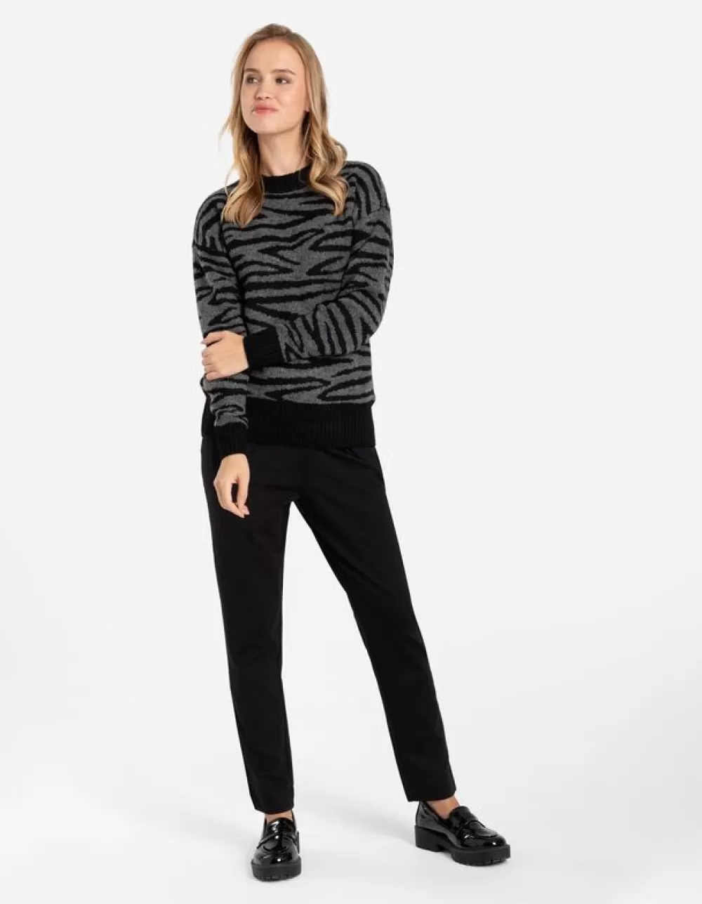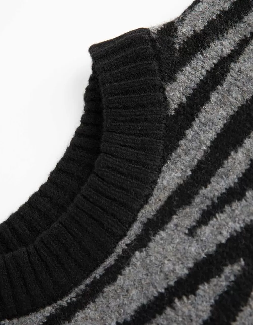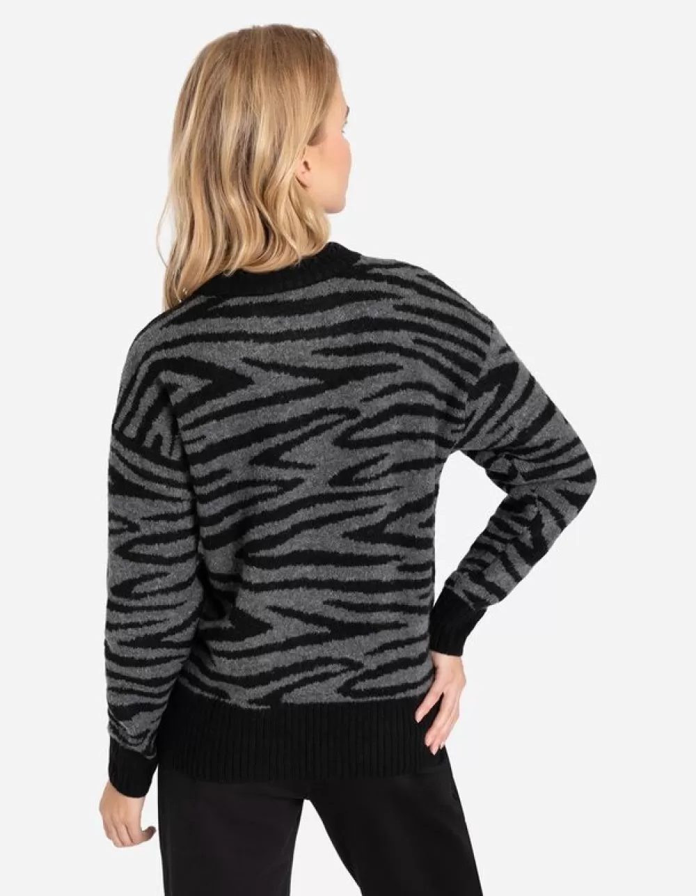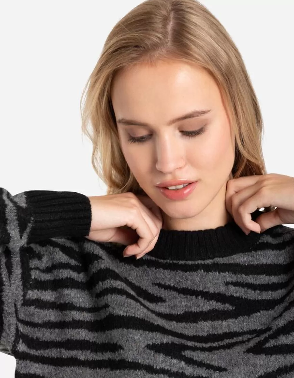 BruinZebrapatroonRonde HalsLange MouwenBreigoedZonder SluitingOversized Schouders