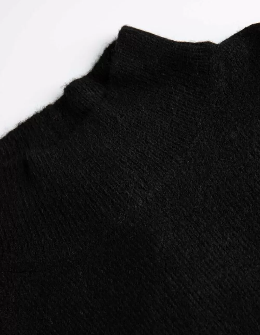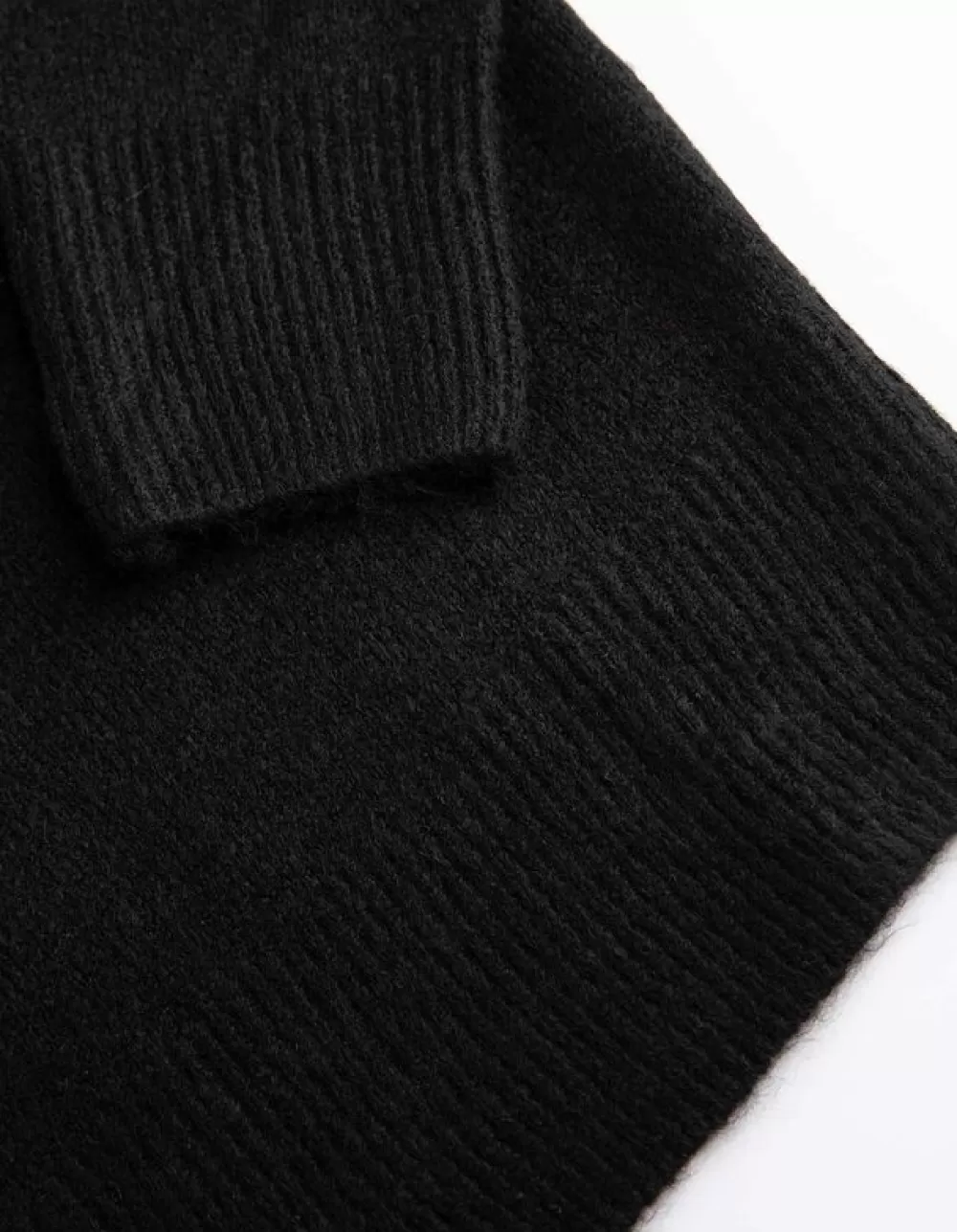 ZwartGemeleerdOpstaande KraagLange MouwenBreigoedZonder SluitingZacht Materiaal