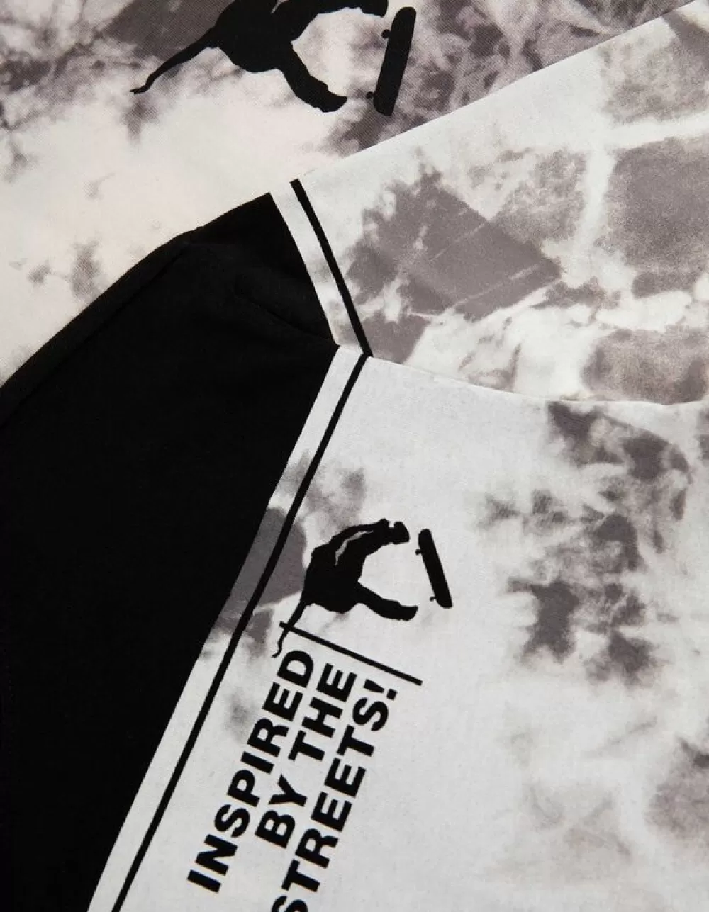 ZwartGebatiktRonde HalsLange MouwenKatoenSet Van 2TekstprintElastische Randen