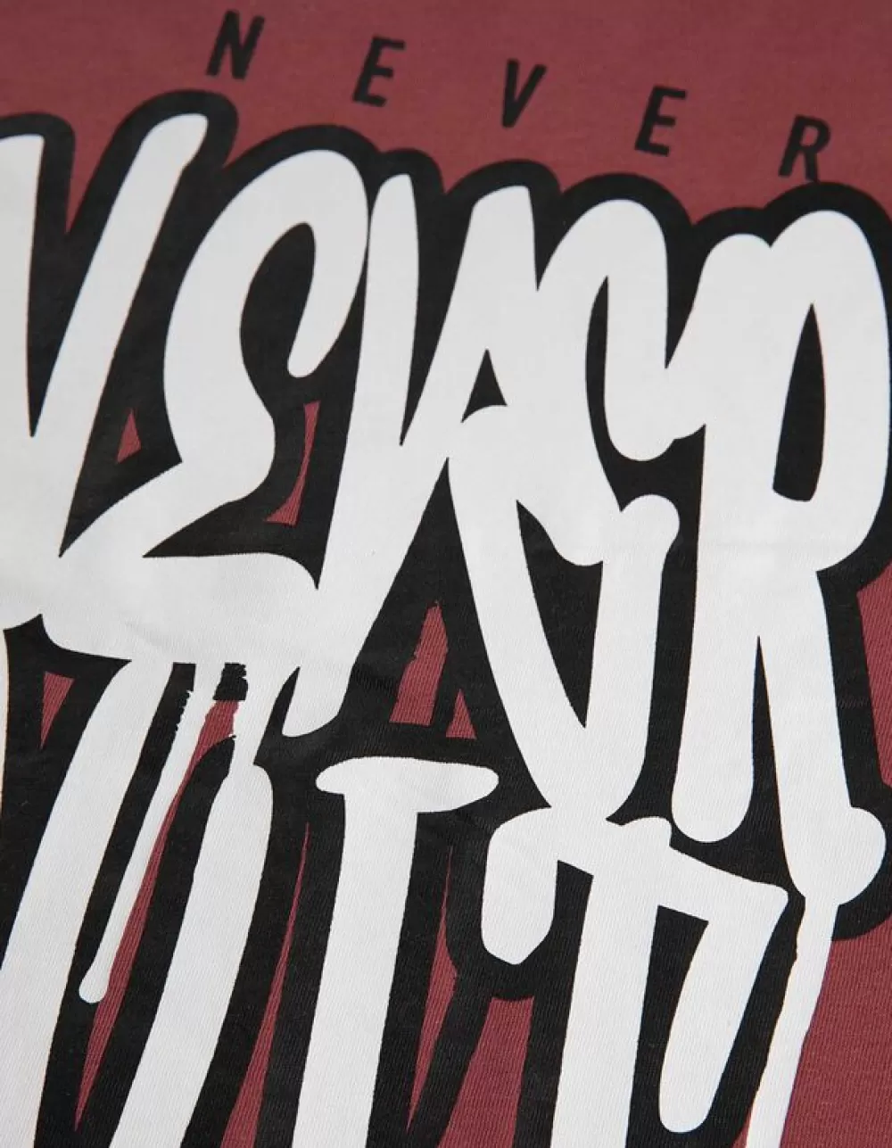 DonkerroodTekstRonde HalsLange MouwenKatoenZonder SluitingElastische Randen