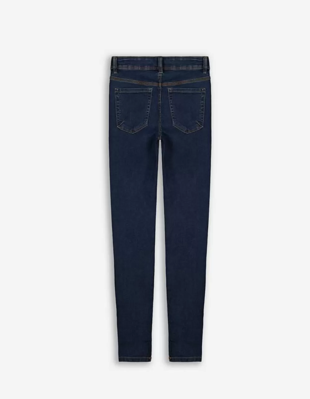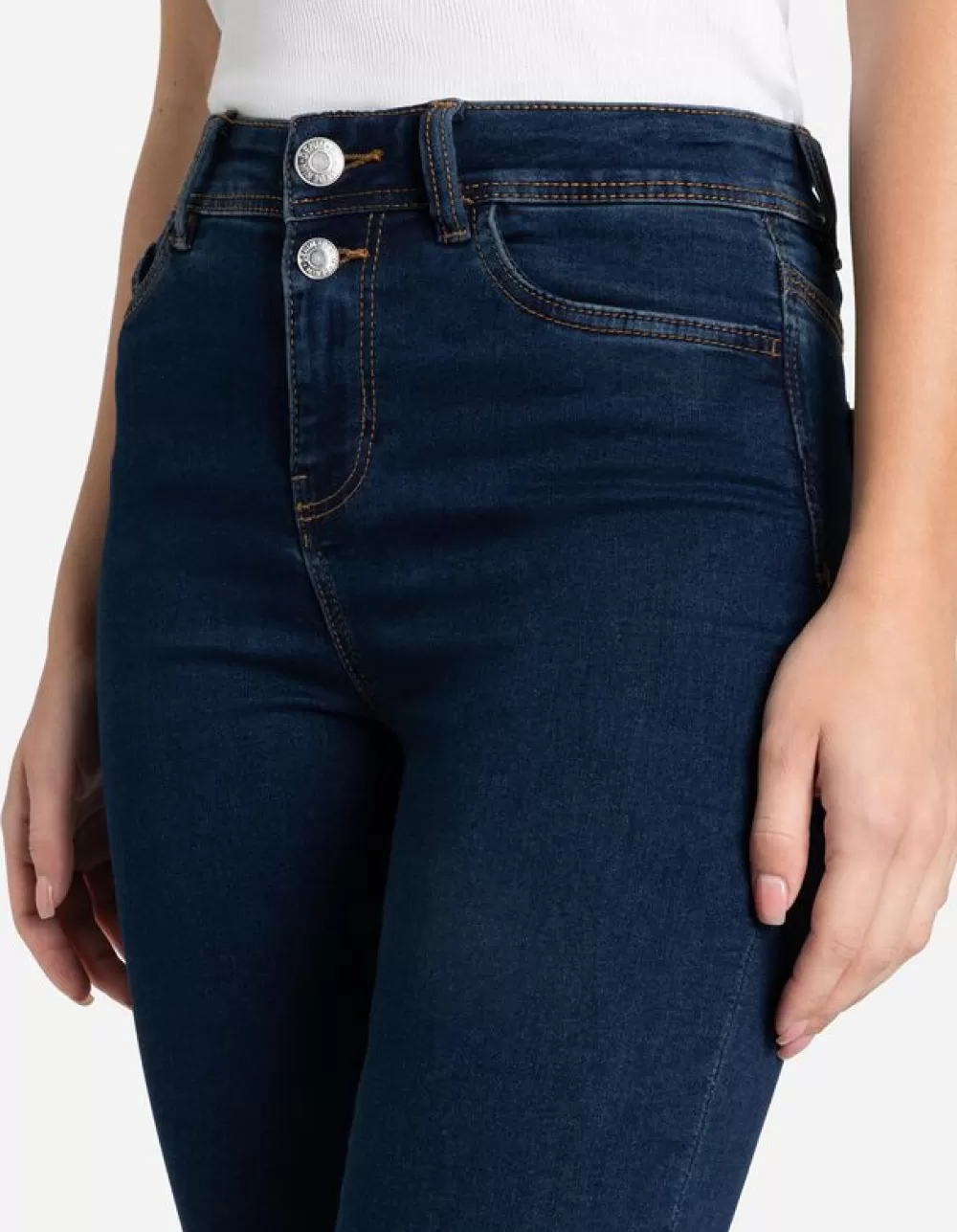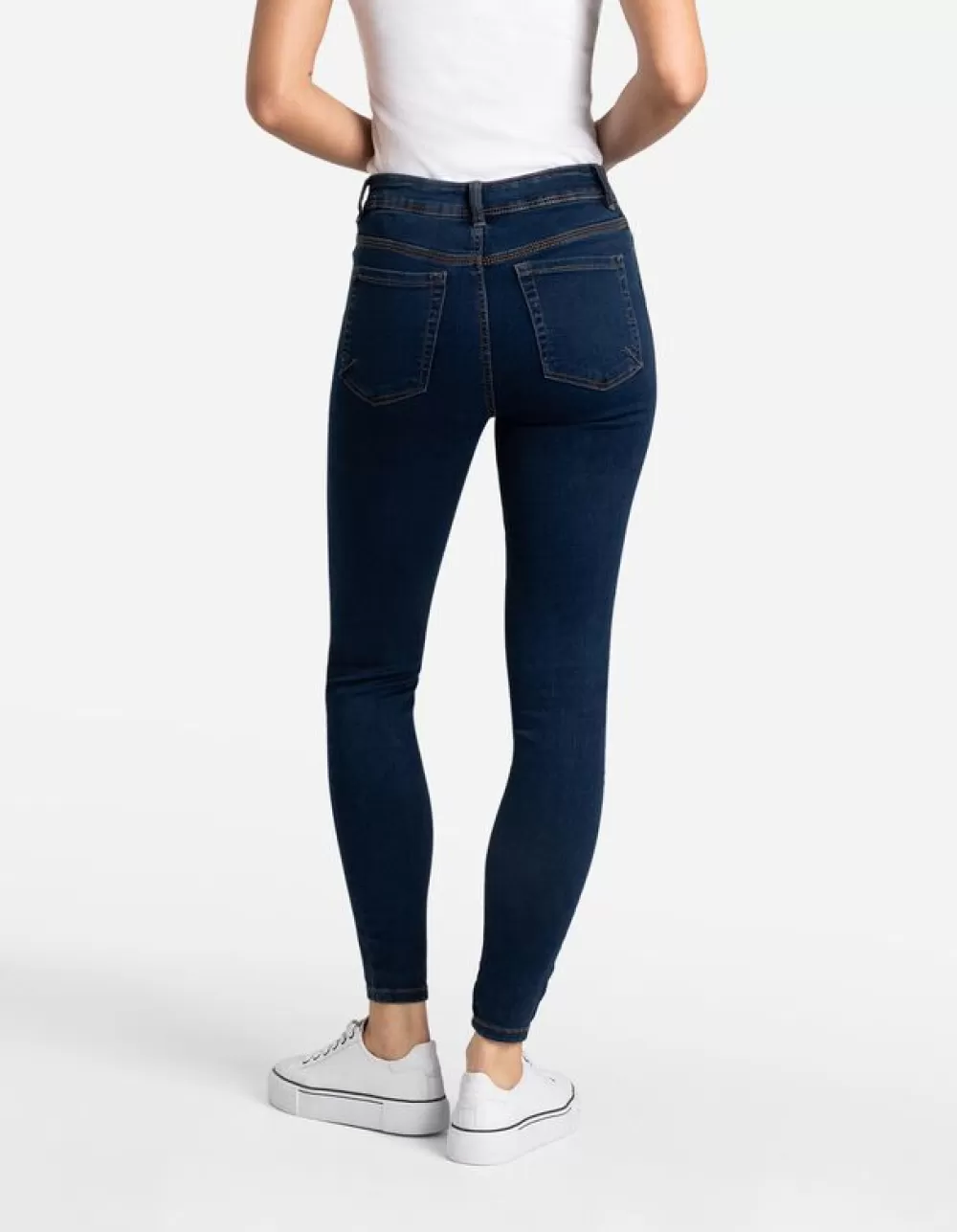 DonkerblauwDonkerblauw DenimHoge TailleStone WashedEnkellengteDenimKnoop- En RitssluitingMet Stretch