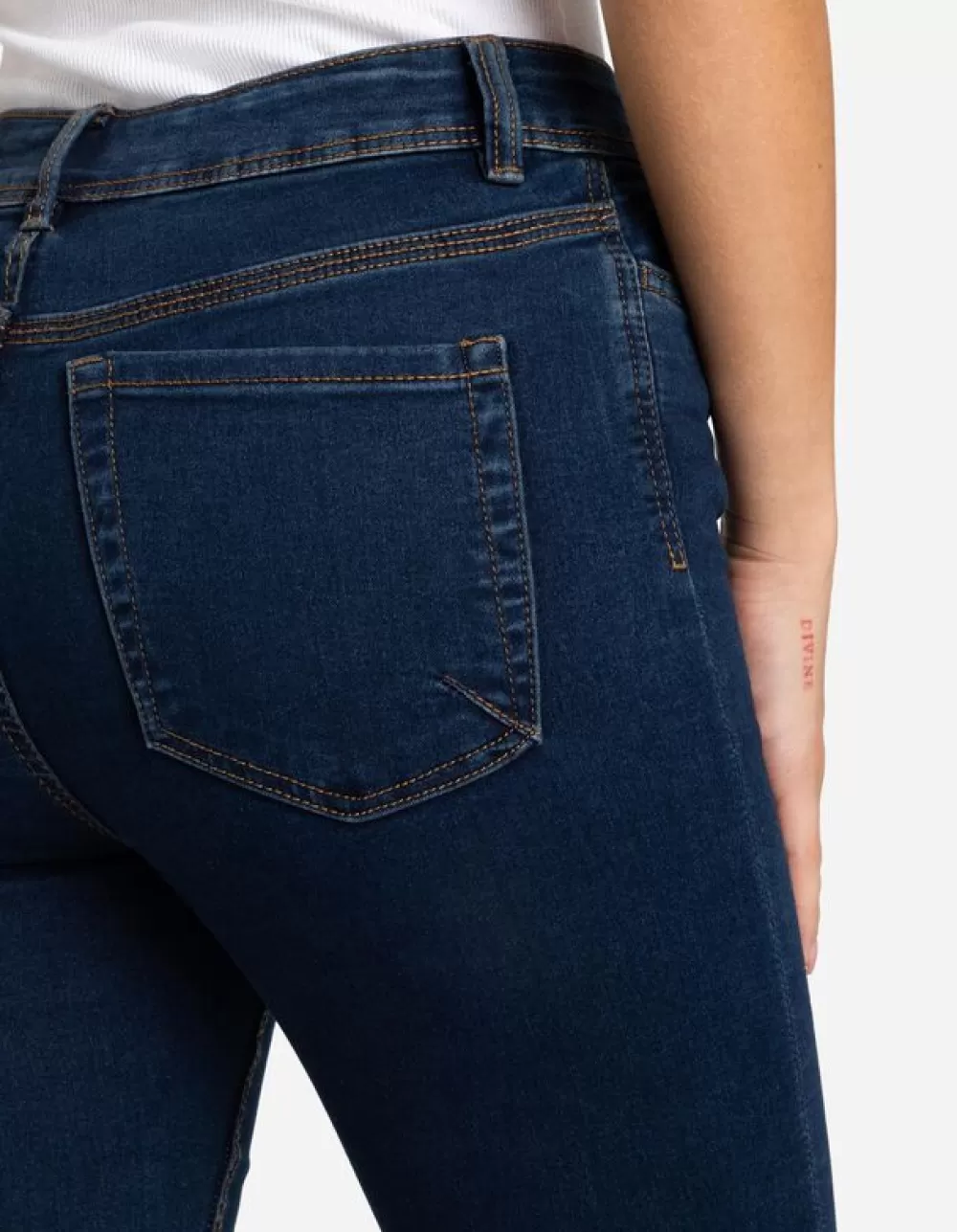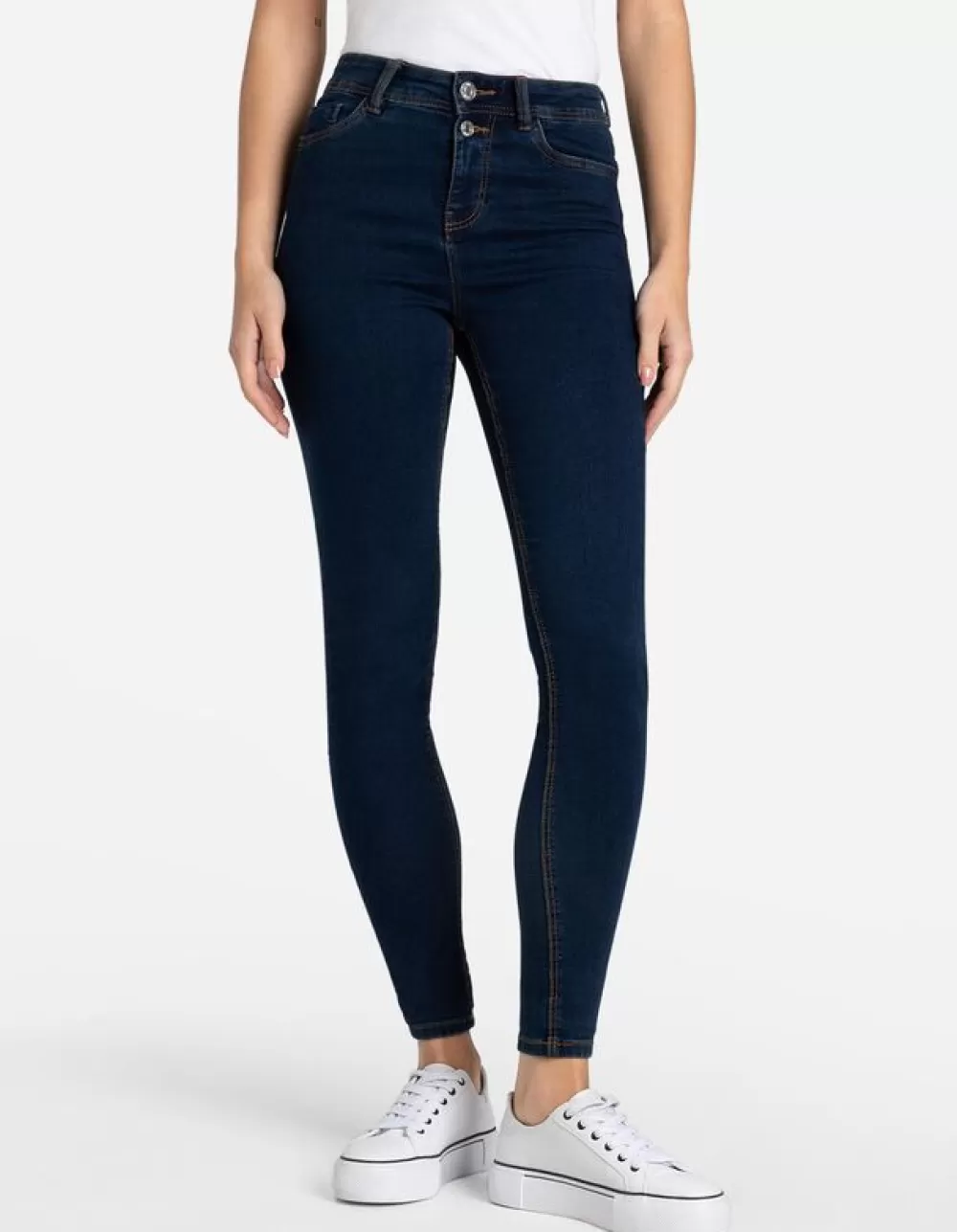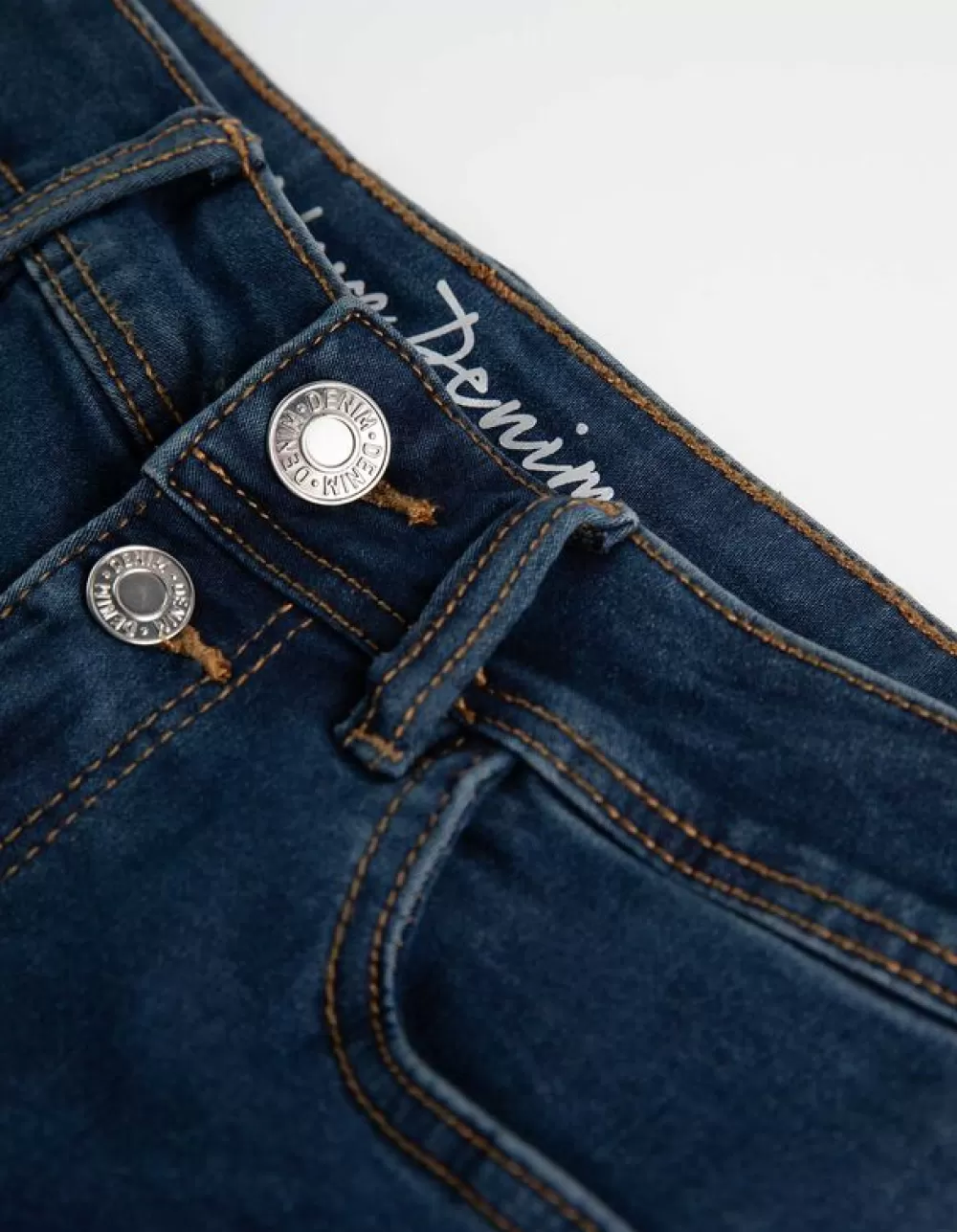 DonkerblauwDonkerblauw DenimHoge TailleStone WashedEnkellengteDenimKnoop- En RitssluitingMet Stretch