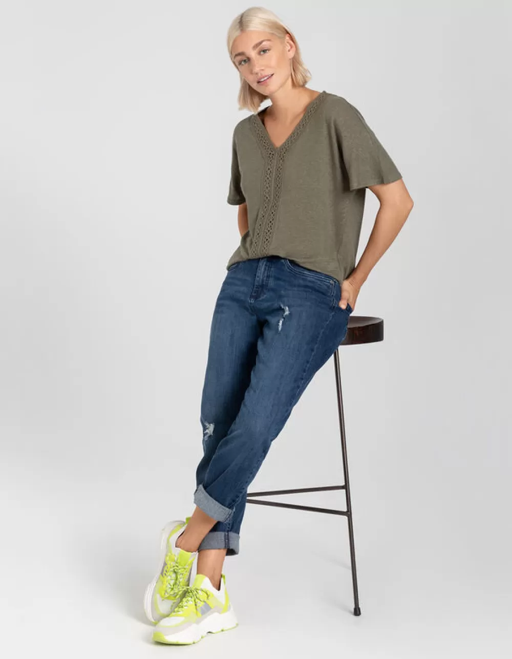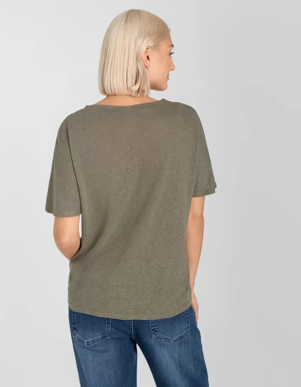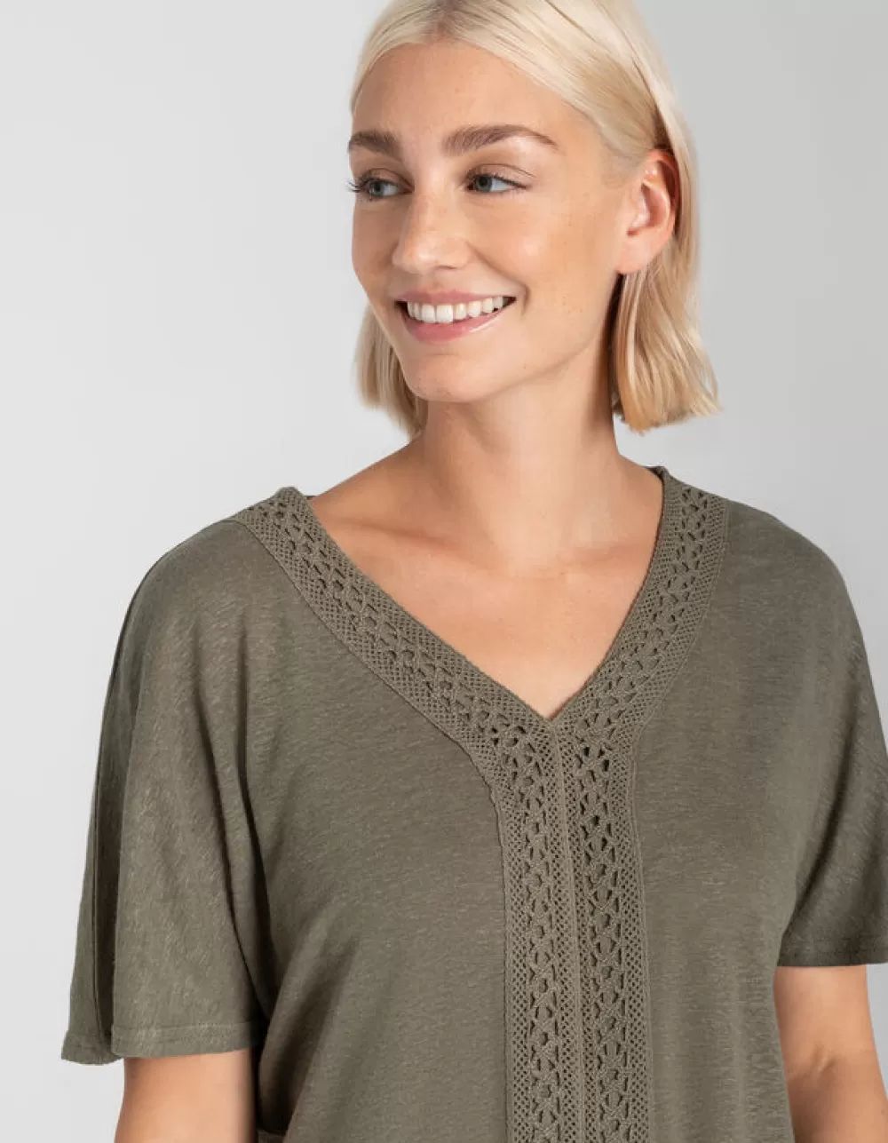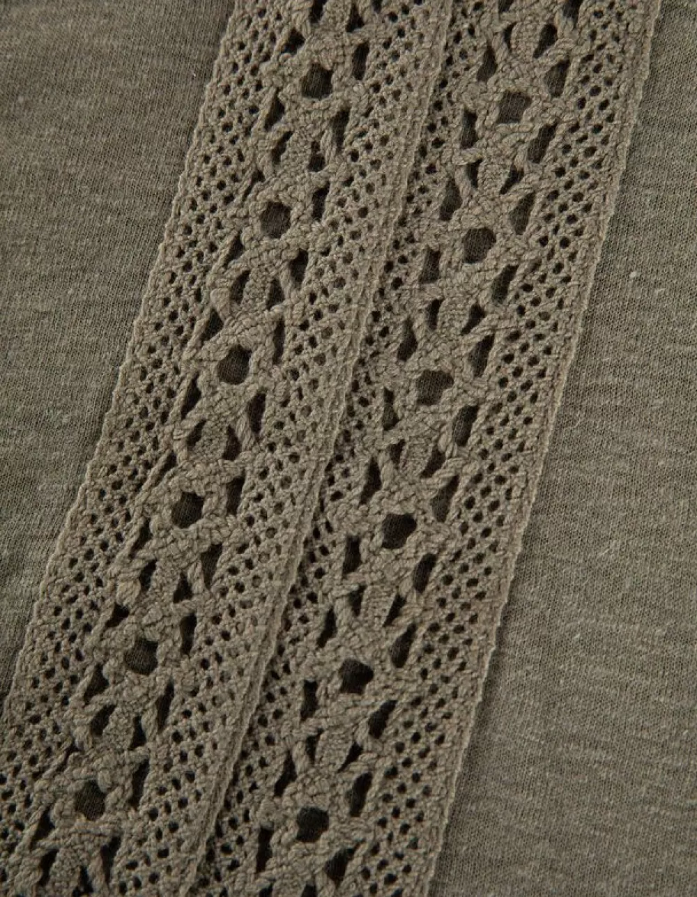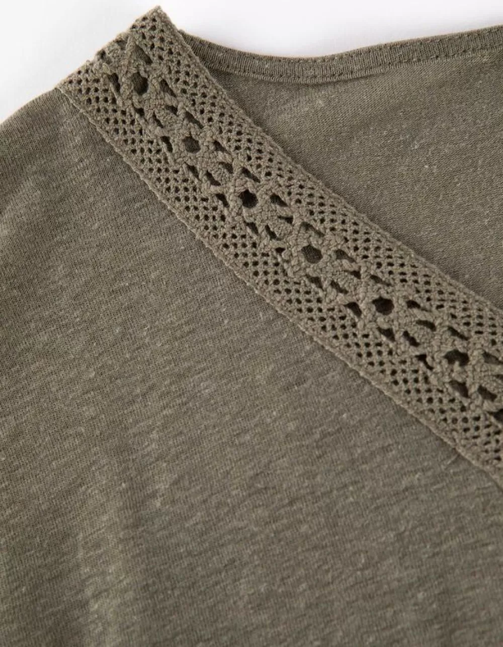 DonkergroenEffenV-HalsOversized MouwenLinnenmixGehaakte Kant