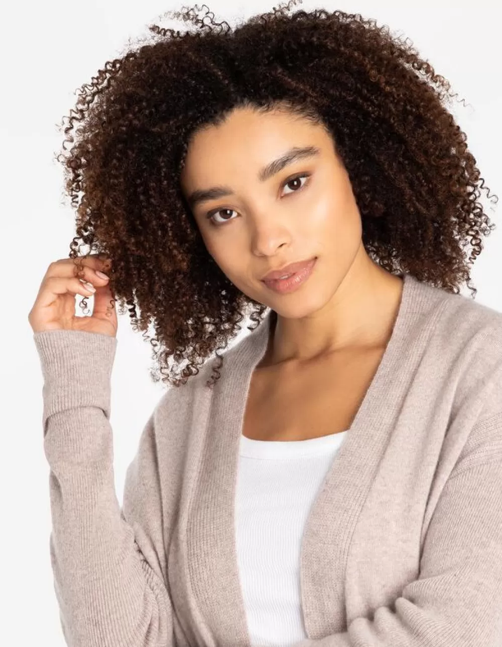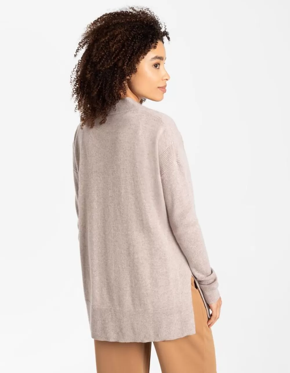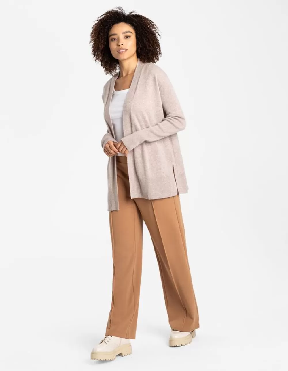 BeigeEffenLoose FitKasjmierZonder SluitingRibboordenZijsplitZacht Materiaal