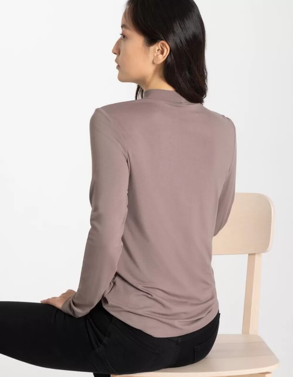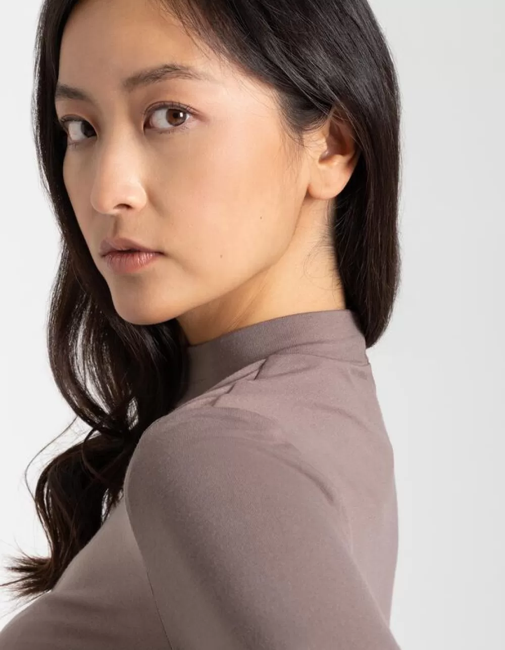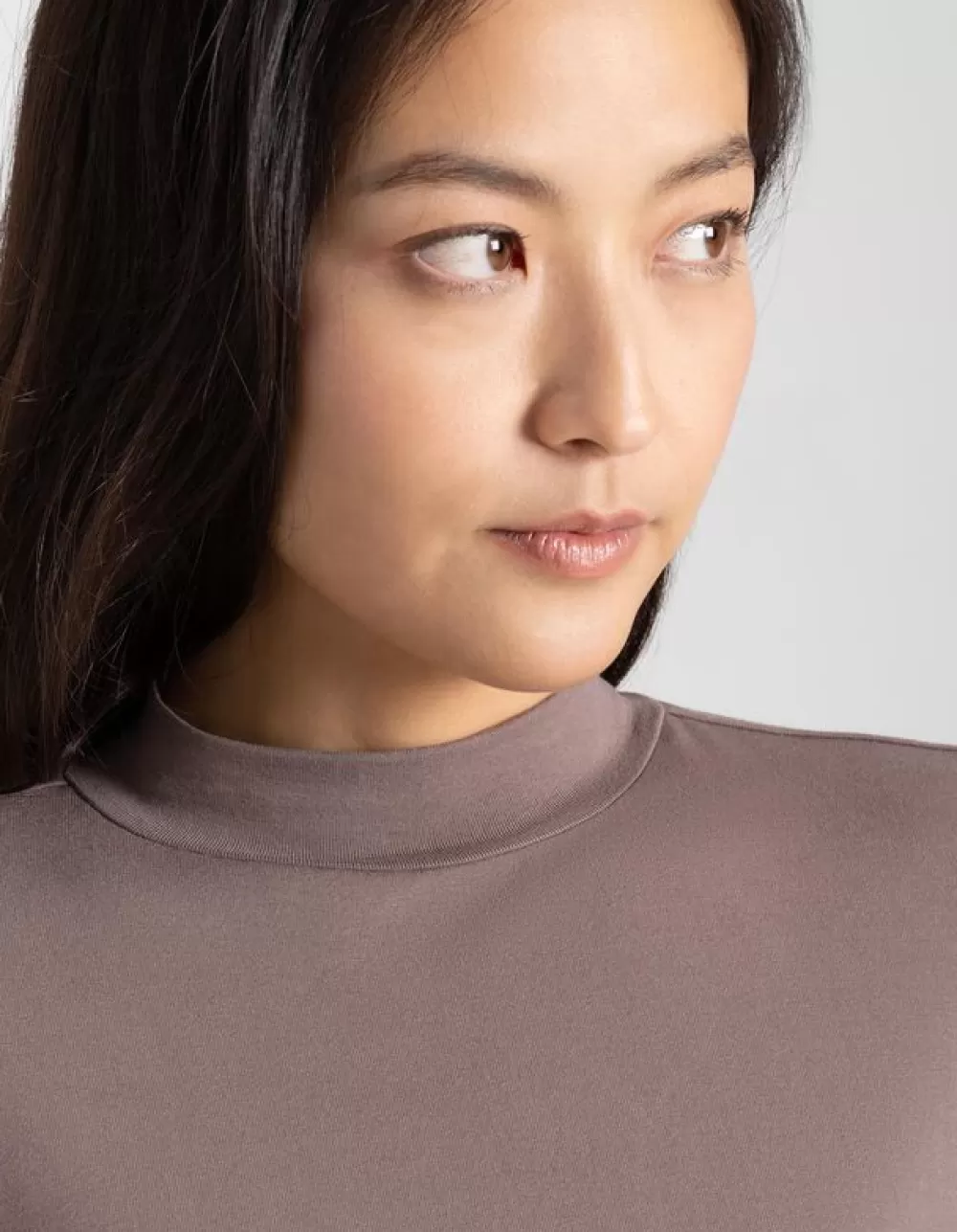 BruinEffenRonde HalsLange MouwenOpstaande KraagViscosemixMet Stretch