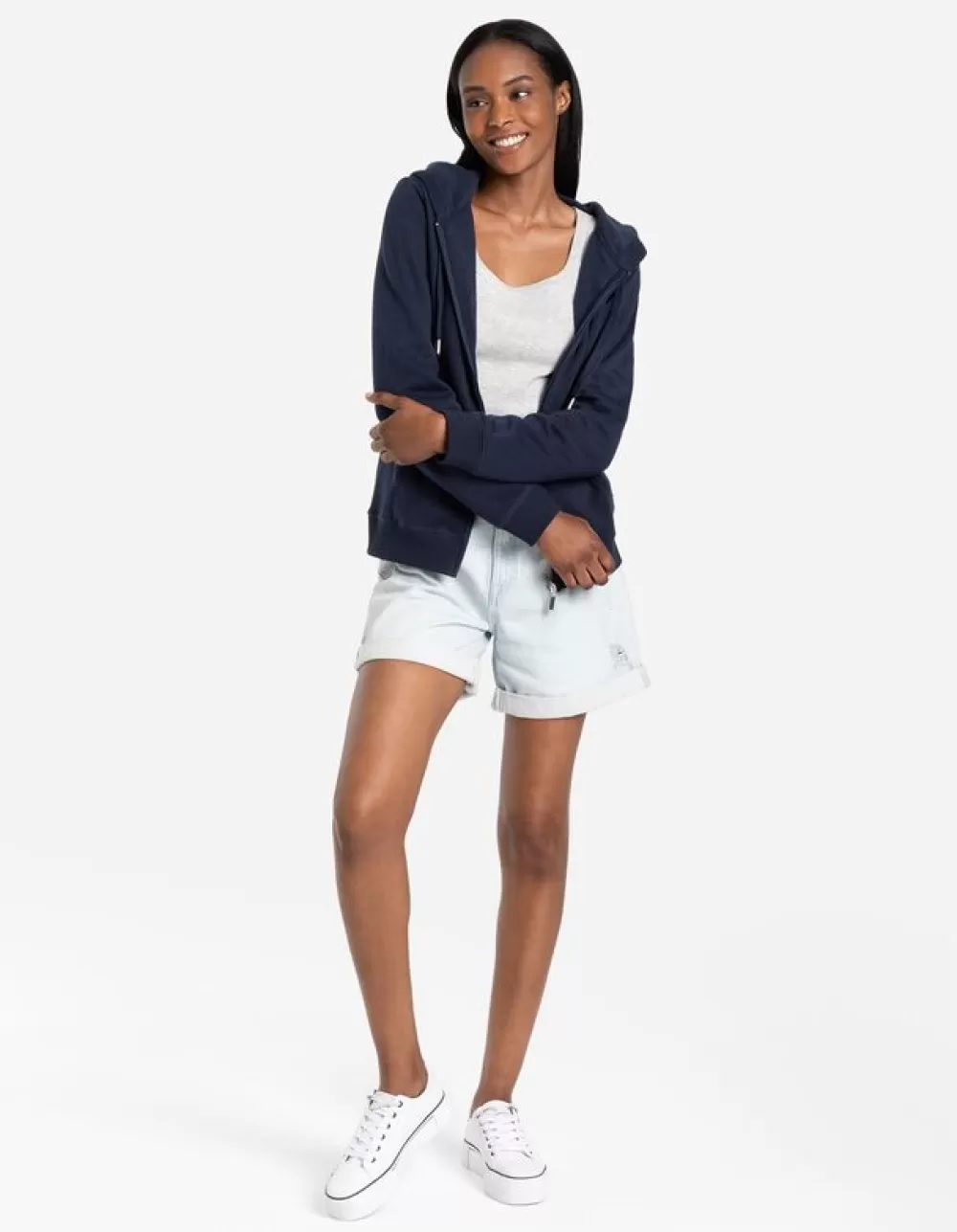 DonkerblauwEffenKapLange MouwenSweatstofRitssluitingCapuchonMetallic DetailsKangoeroezak