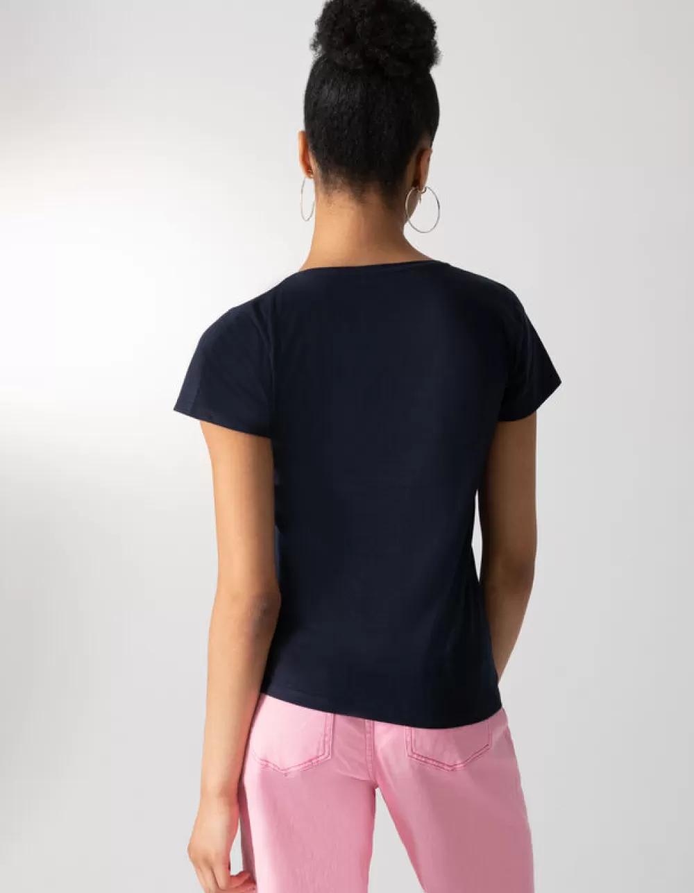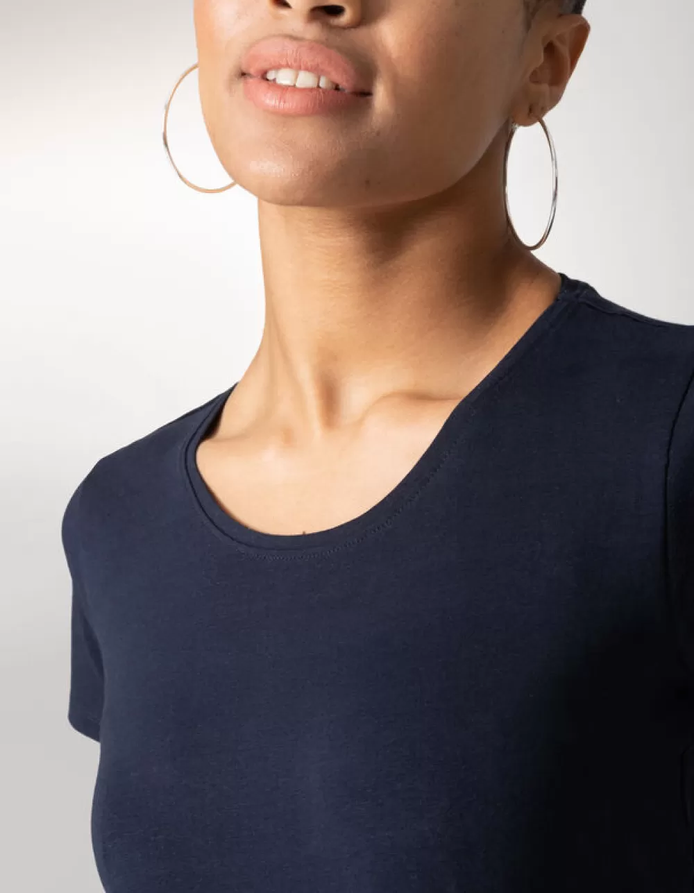 DonkerblauwEffenRonde HalsJerseyMet Stretch