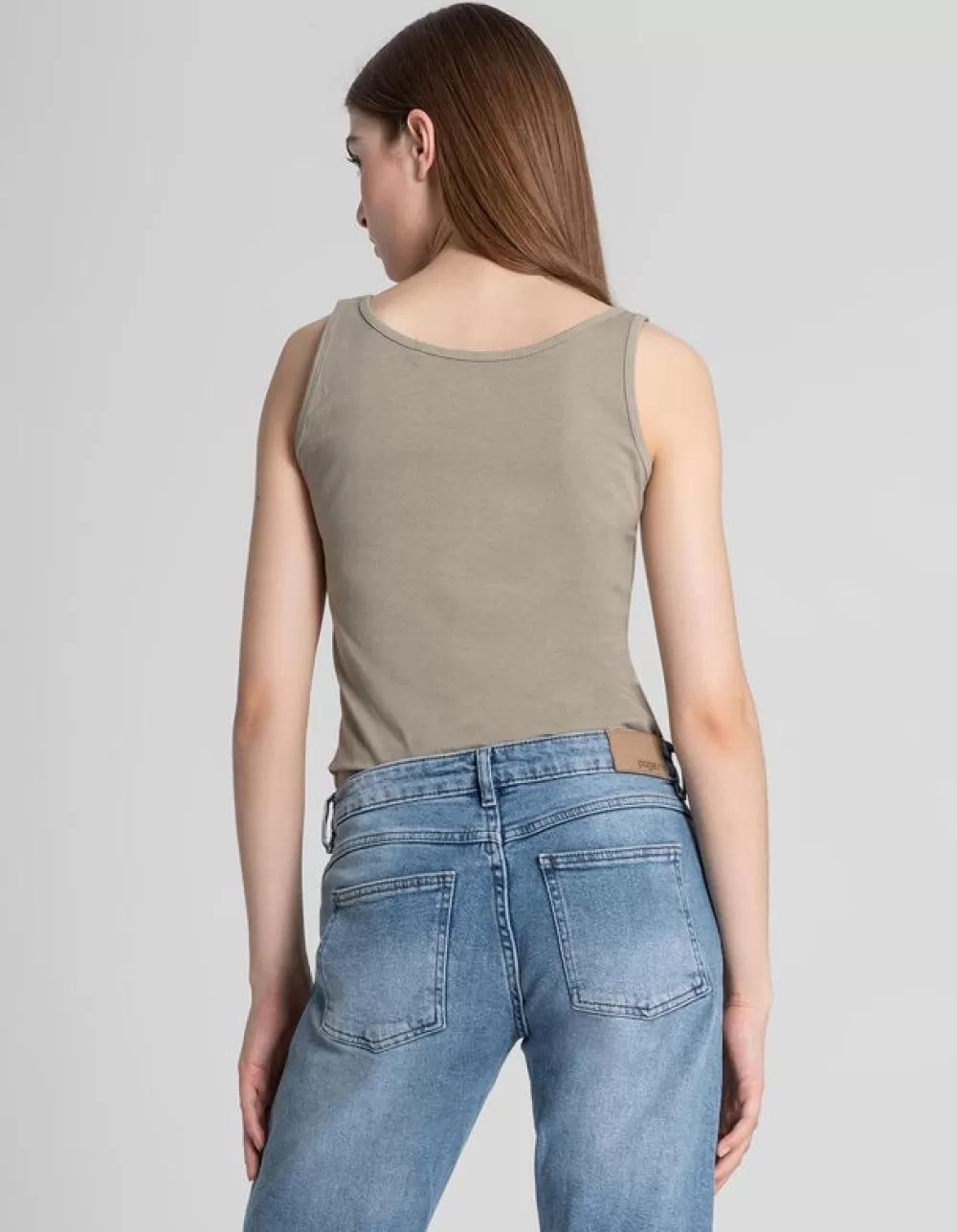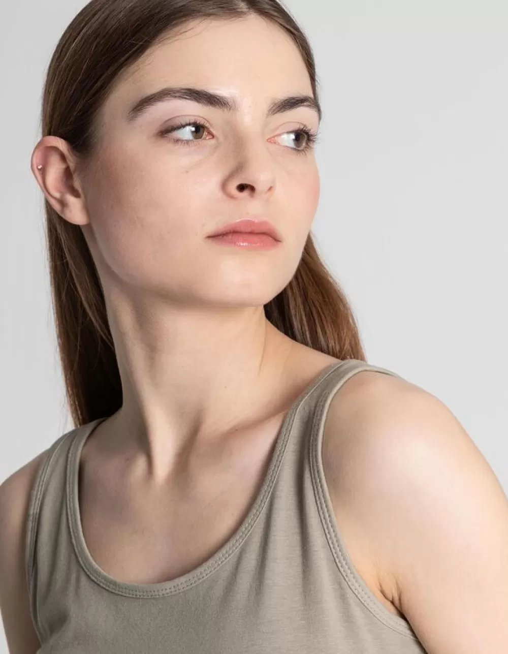 DonkergroenEffenRonde HalsBrede SchouderbandjesKatoenmixZonder SluitingMet Stretch