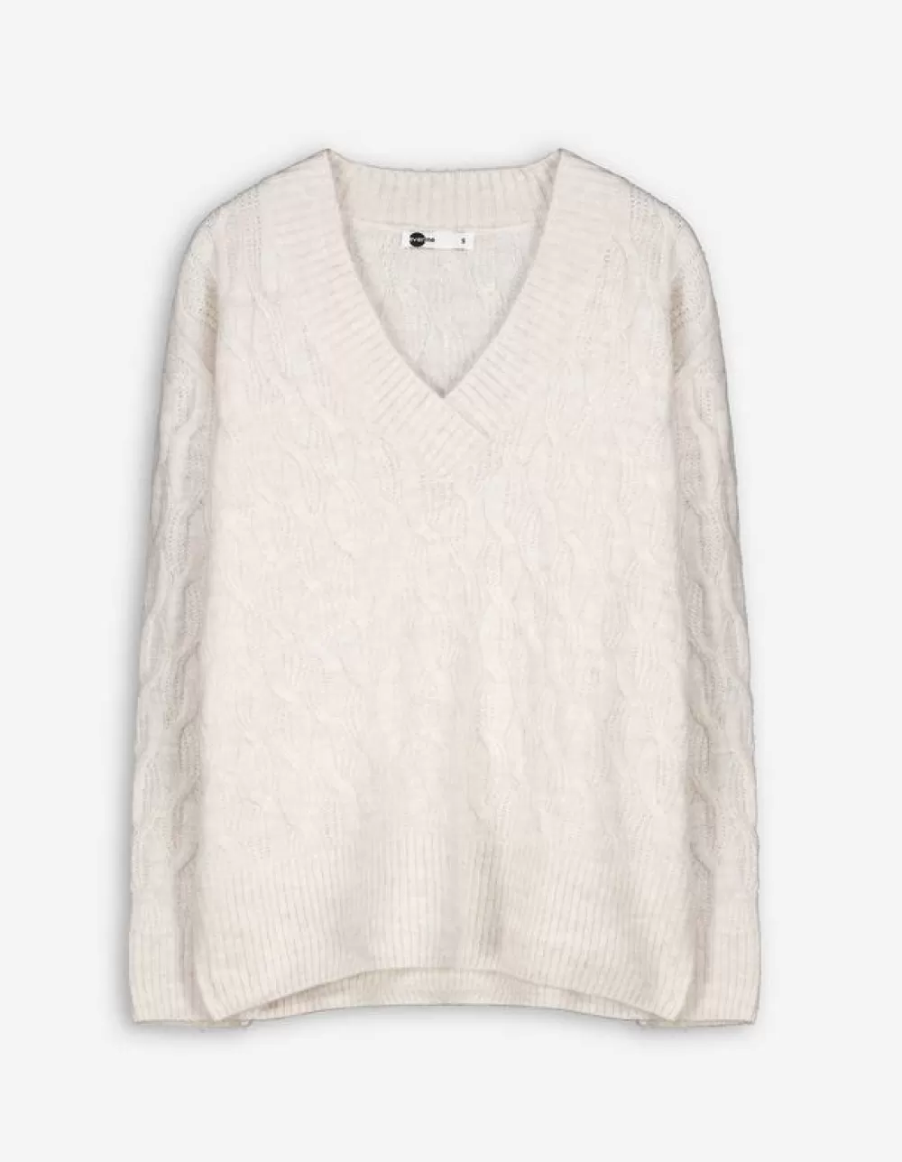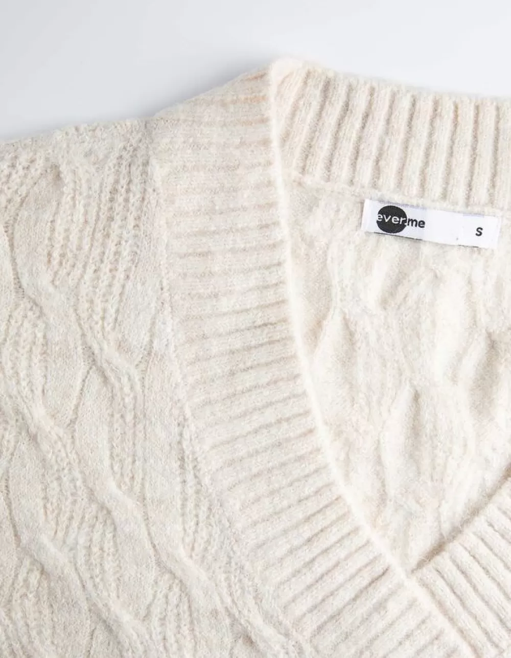 BeigeGemeleerdV-HalsLange MouwenBreigoedZonder SluitingMet StretchZacht Materiaal