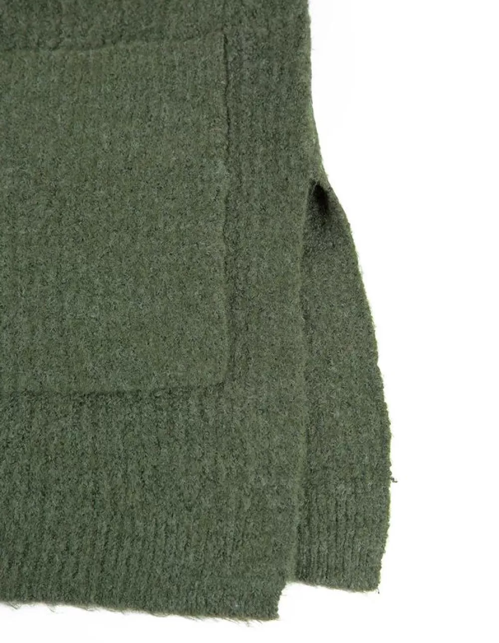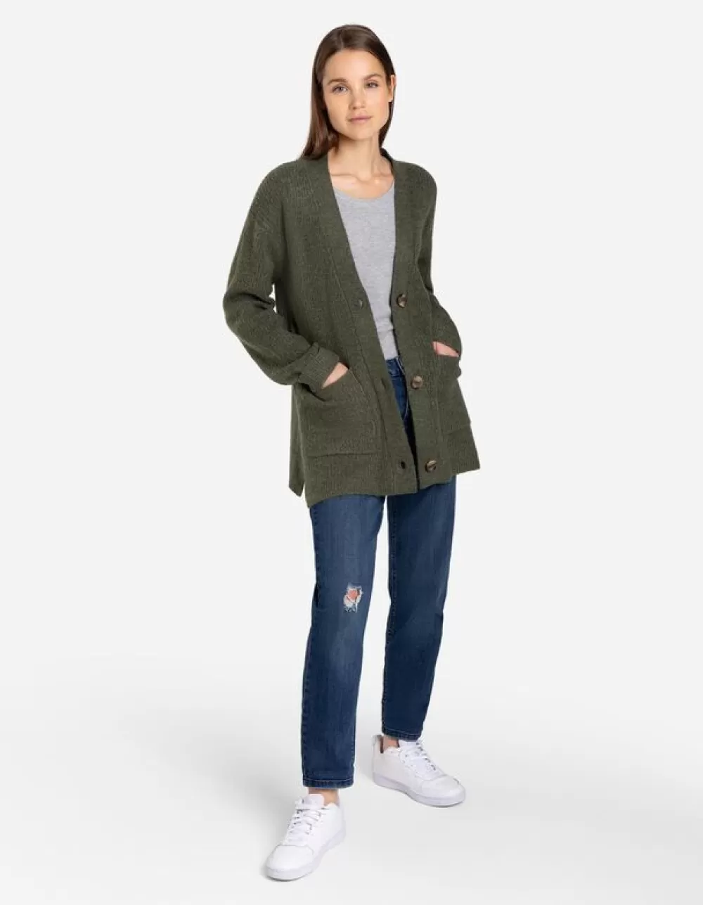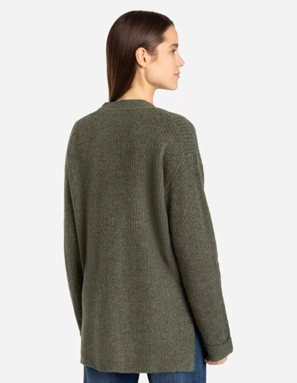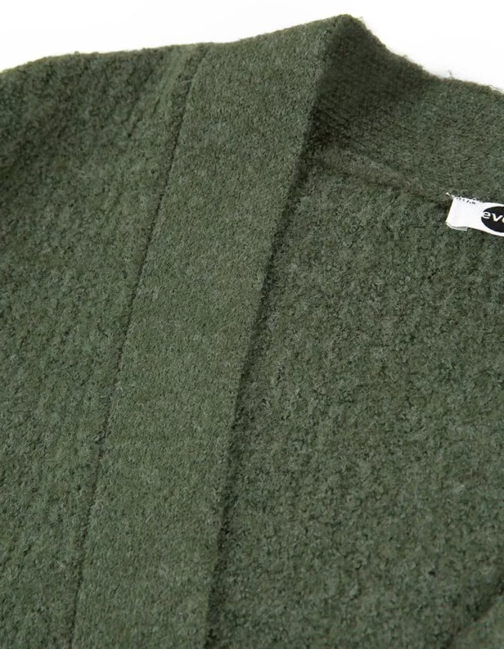 DonkergroenEffenV-HalsMouwen Met Vaste OmslagBreigoedKnoopsluitingOpgestikte ZakkenMet Stretch
