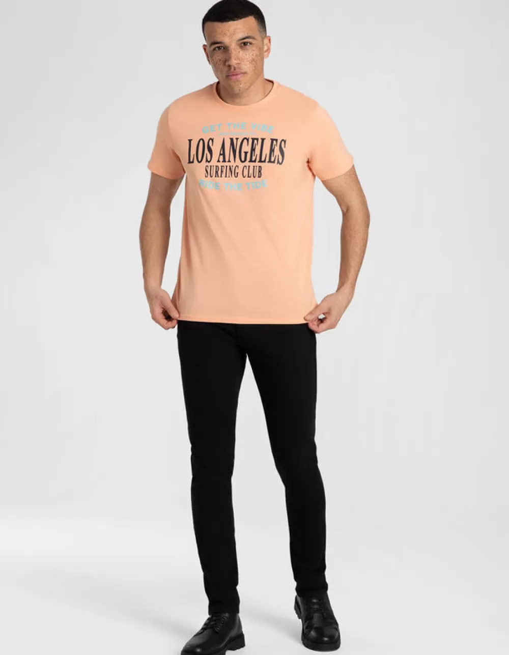 OranjeEffenRonde HalsKorte MouwenKatoenTekstprint