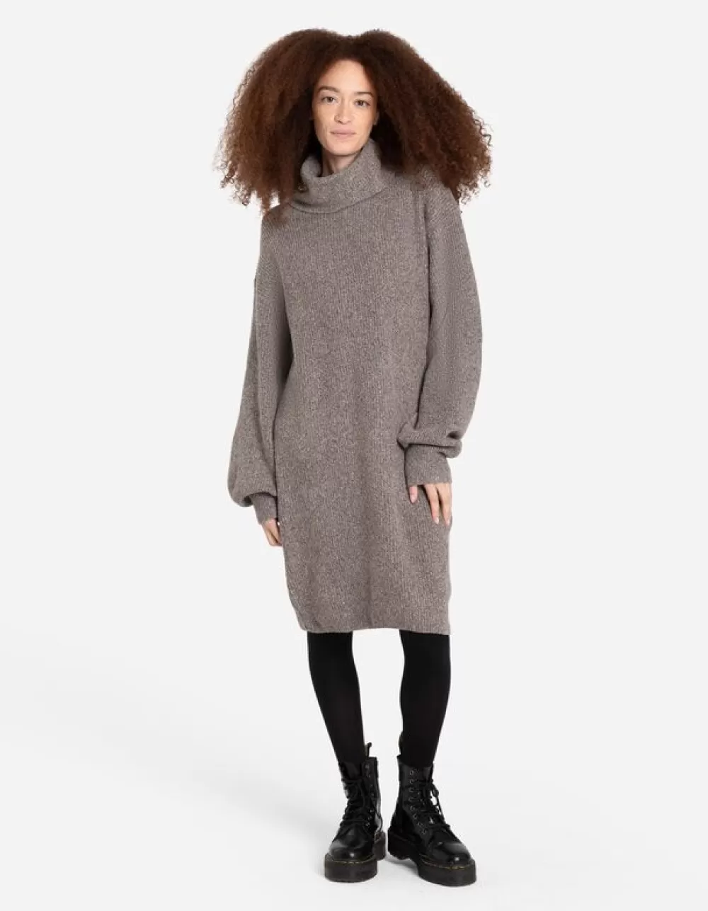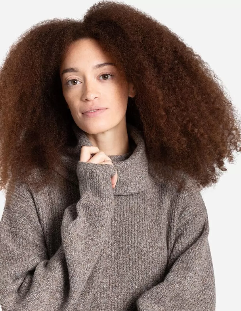 DonkerbruinEffenColPofmouwenFijn BreiselZonder SluitingMet Stretch
