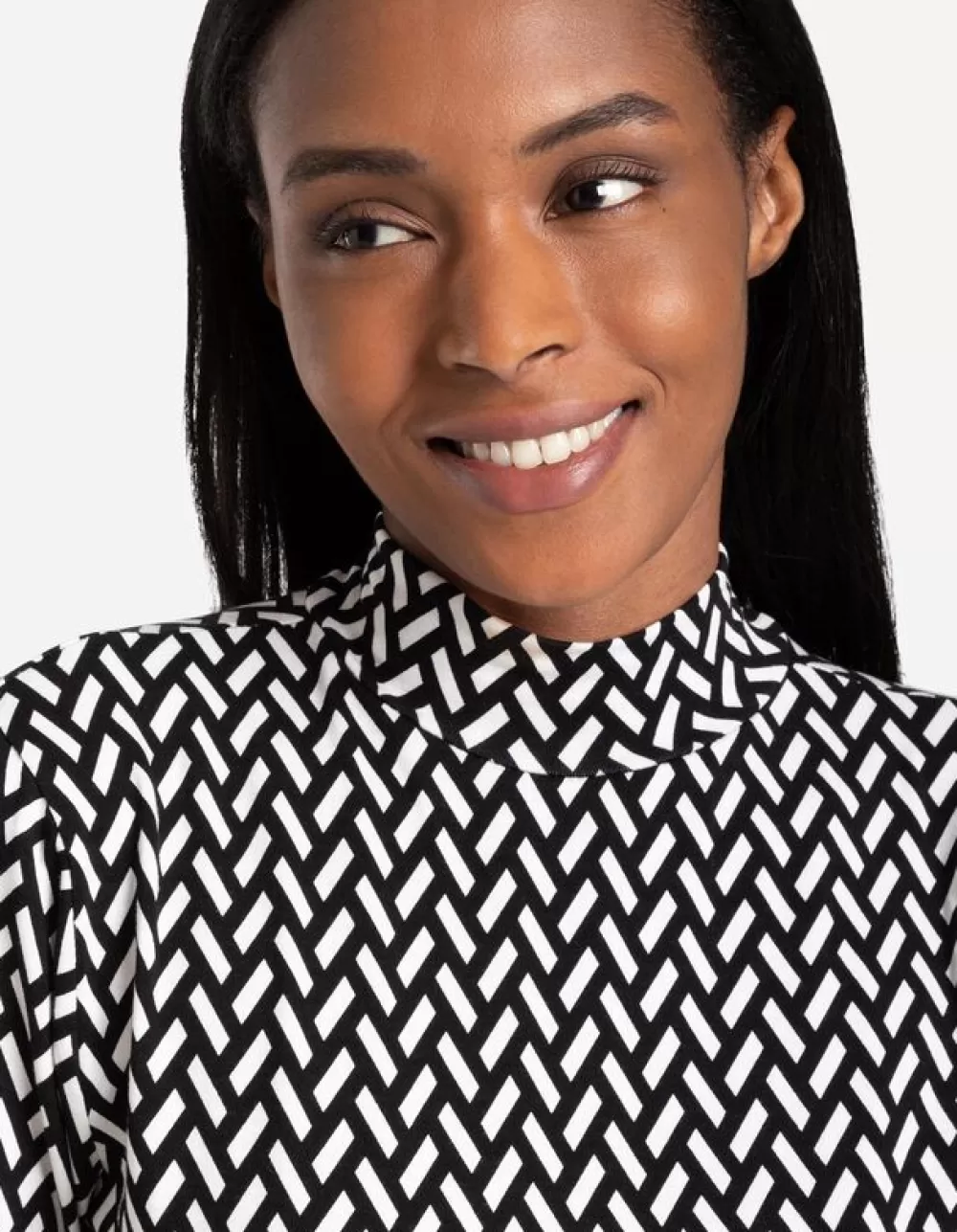 WitGeometrisch MotiefColtrui3/4-MouwenLenzing™ Ecovero™Met Stretch