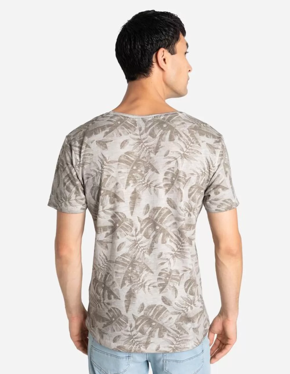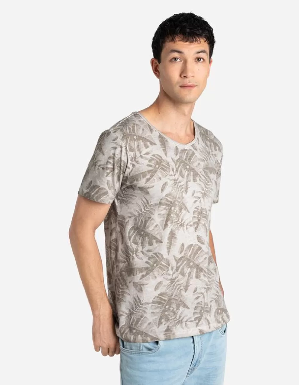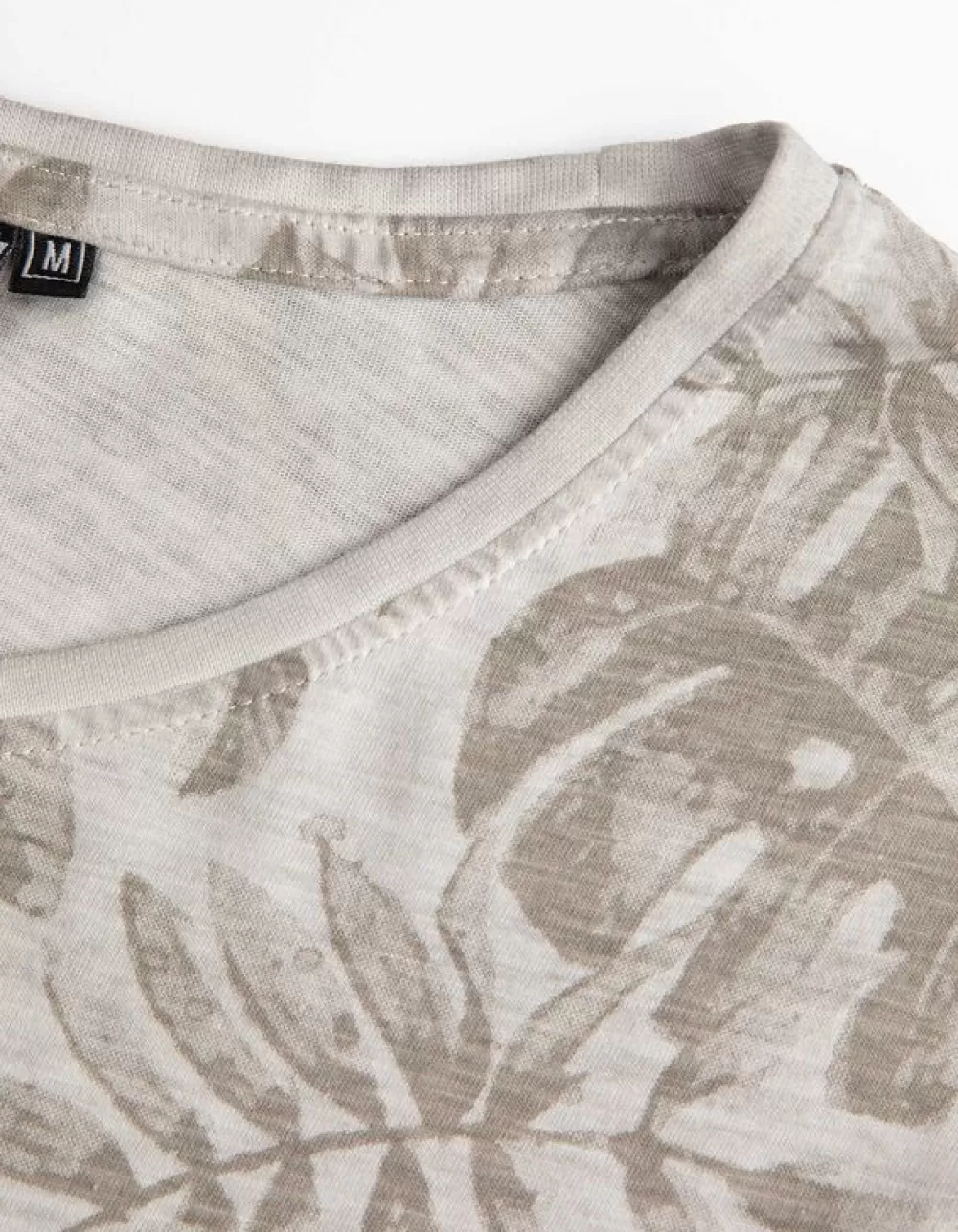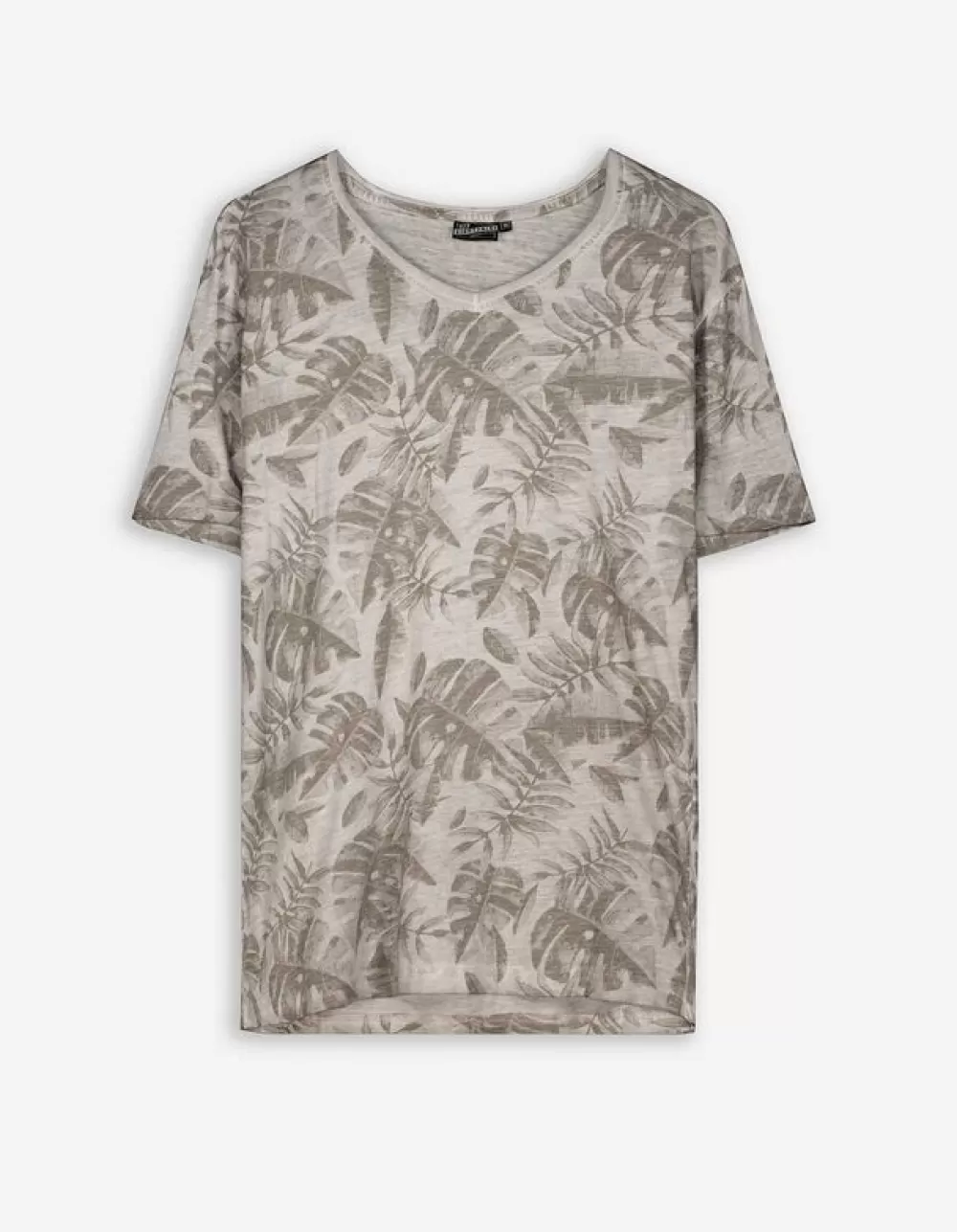 BeigeMotief All-OverV-HalsKorte MouwenKatoen