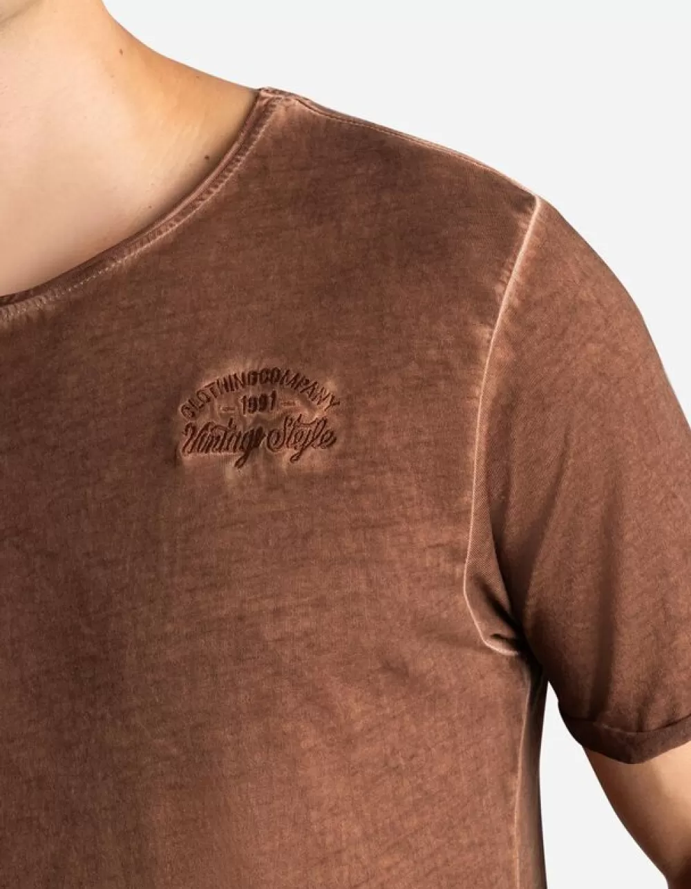 DonkerbruinRonde HalsRegular FitKatoenRolrandjes