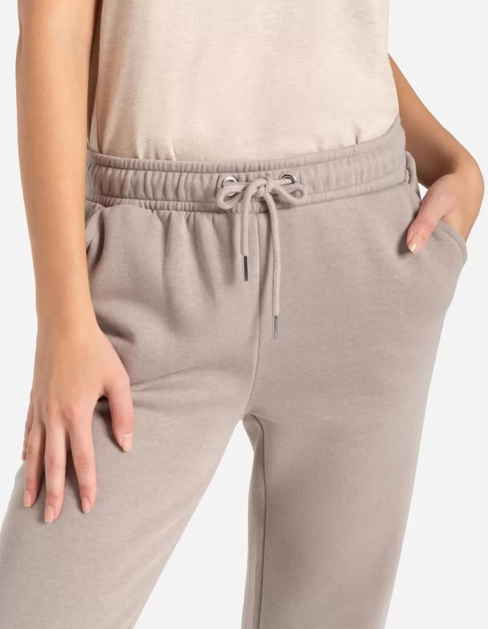 BeigeEffenRegular WaistNormale LengteSweatstofKoordElastische BandMetallic DetailsTunnelkoord In De Zoom