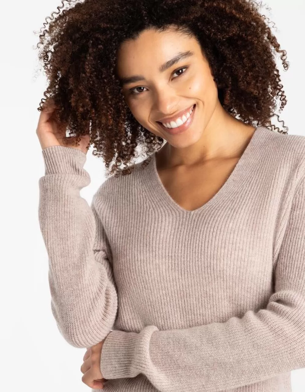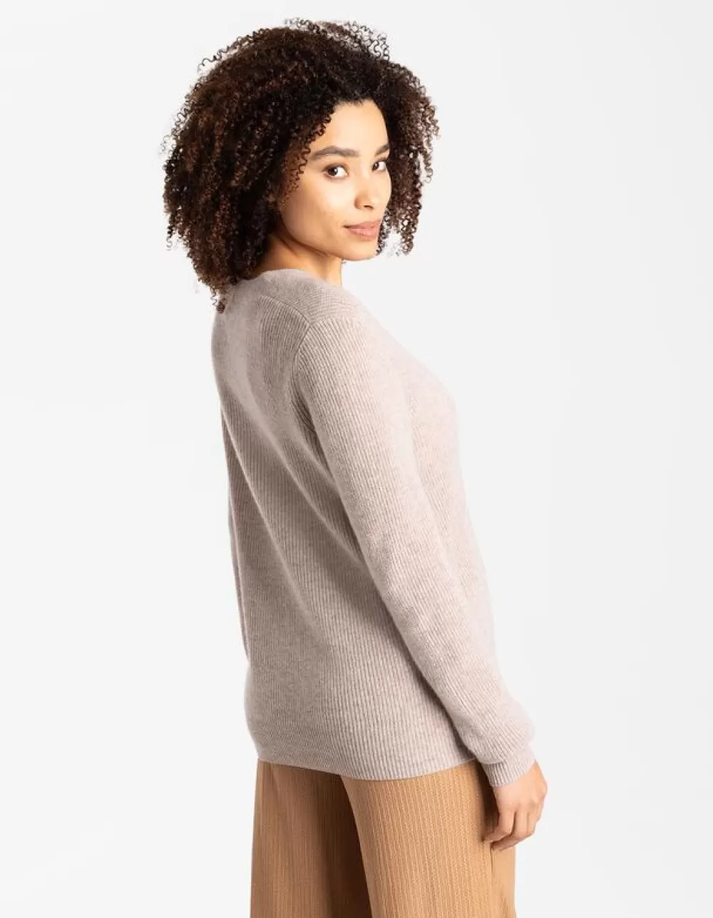 BeigeGemeleerdV-HalsLange MouwenKasjmierZonder SluitingZacht MateriaalMet Stretch