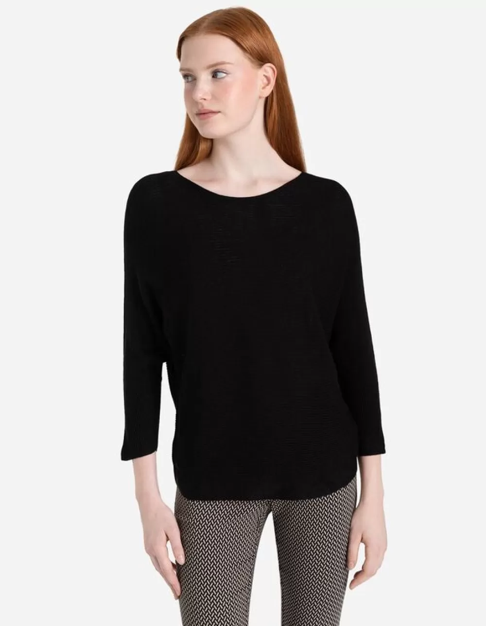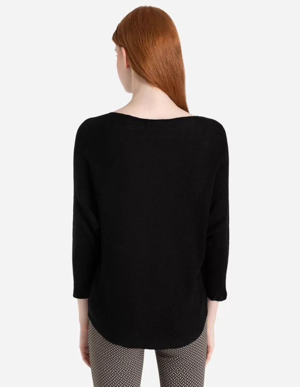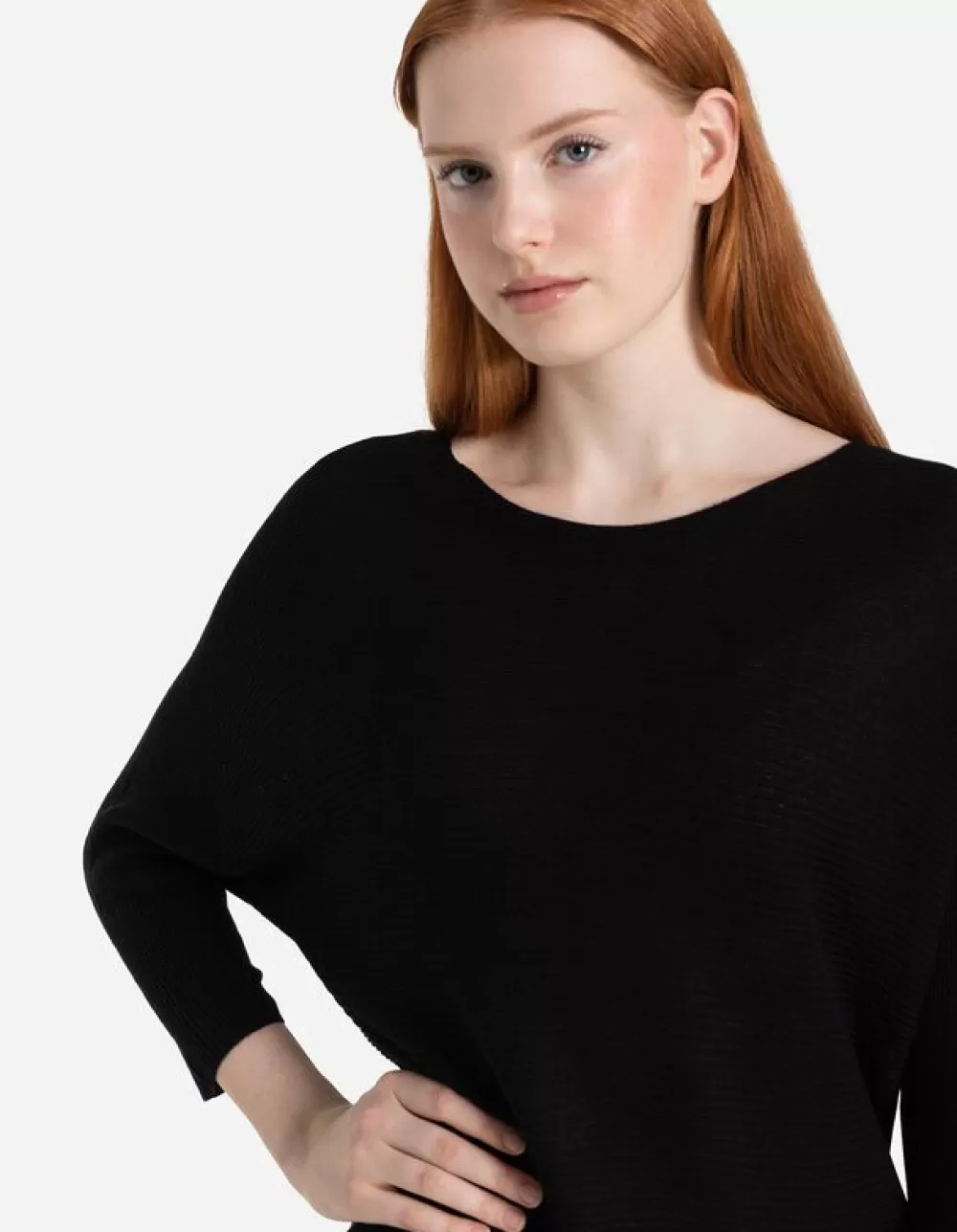 ZwartEffenRonde HalsVleermuismouwenFijn BreiselZonder SluitingElastische RandenGeribde StructuurMet Stretch