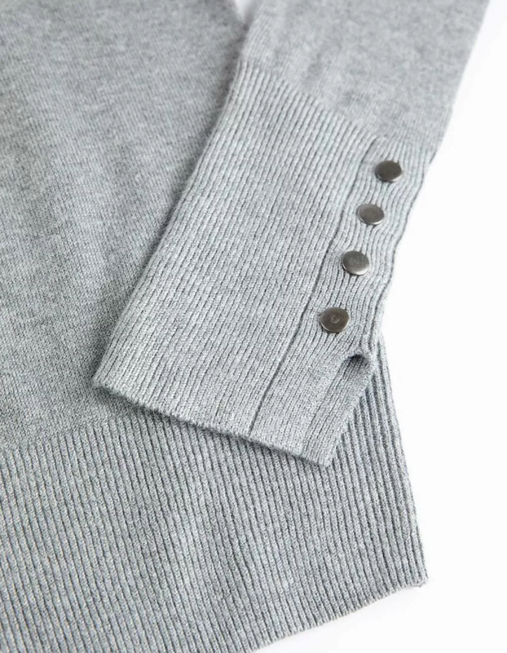 GrijsGemeleerdRonde HalsLange MouwenViscosemixZacht MateriaalSierknopenZijsplit