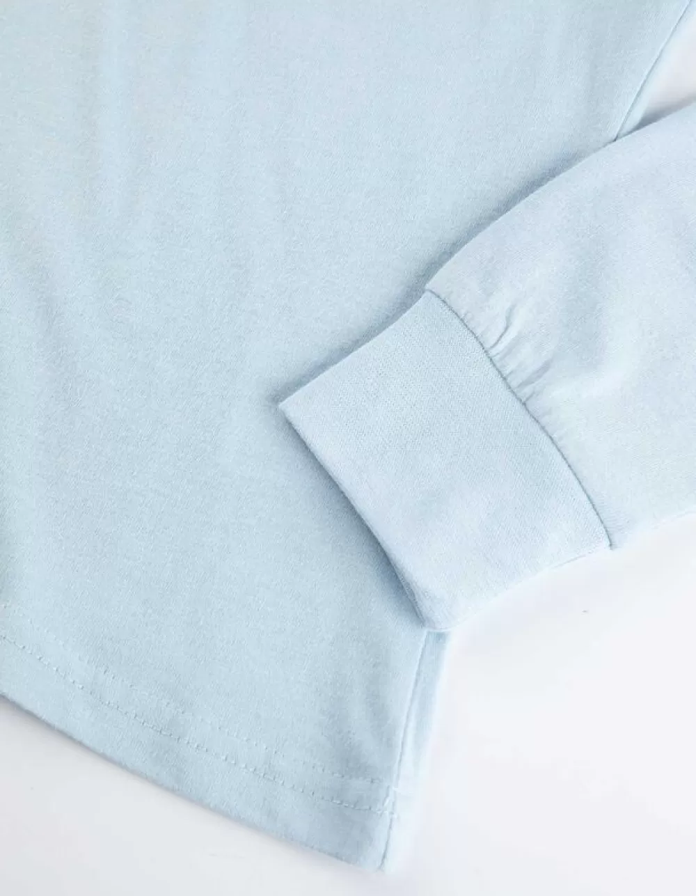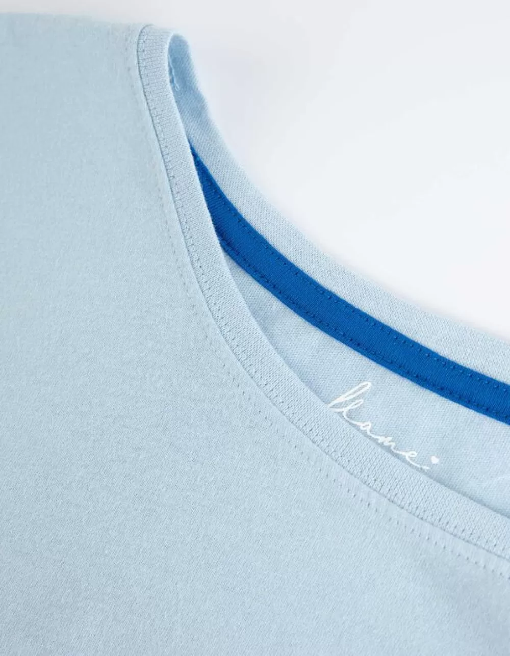 LichtblauwEffenKatoenZacht MateriaalTekstprint