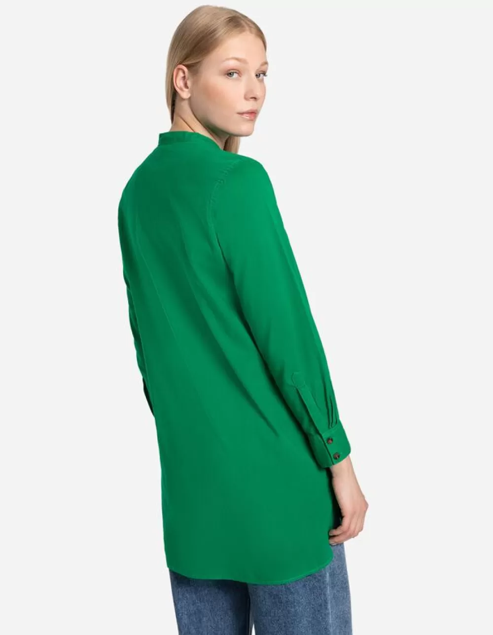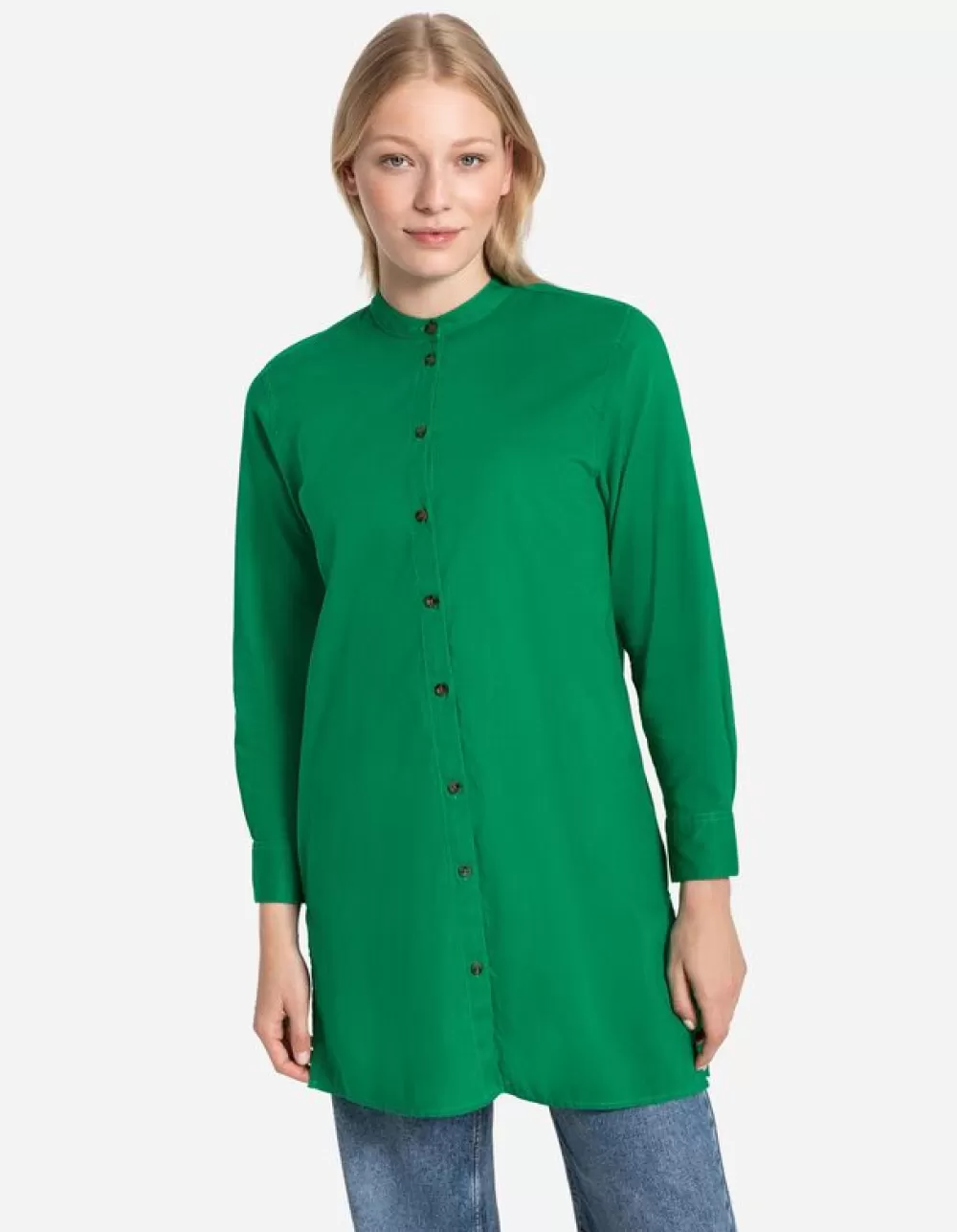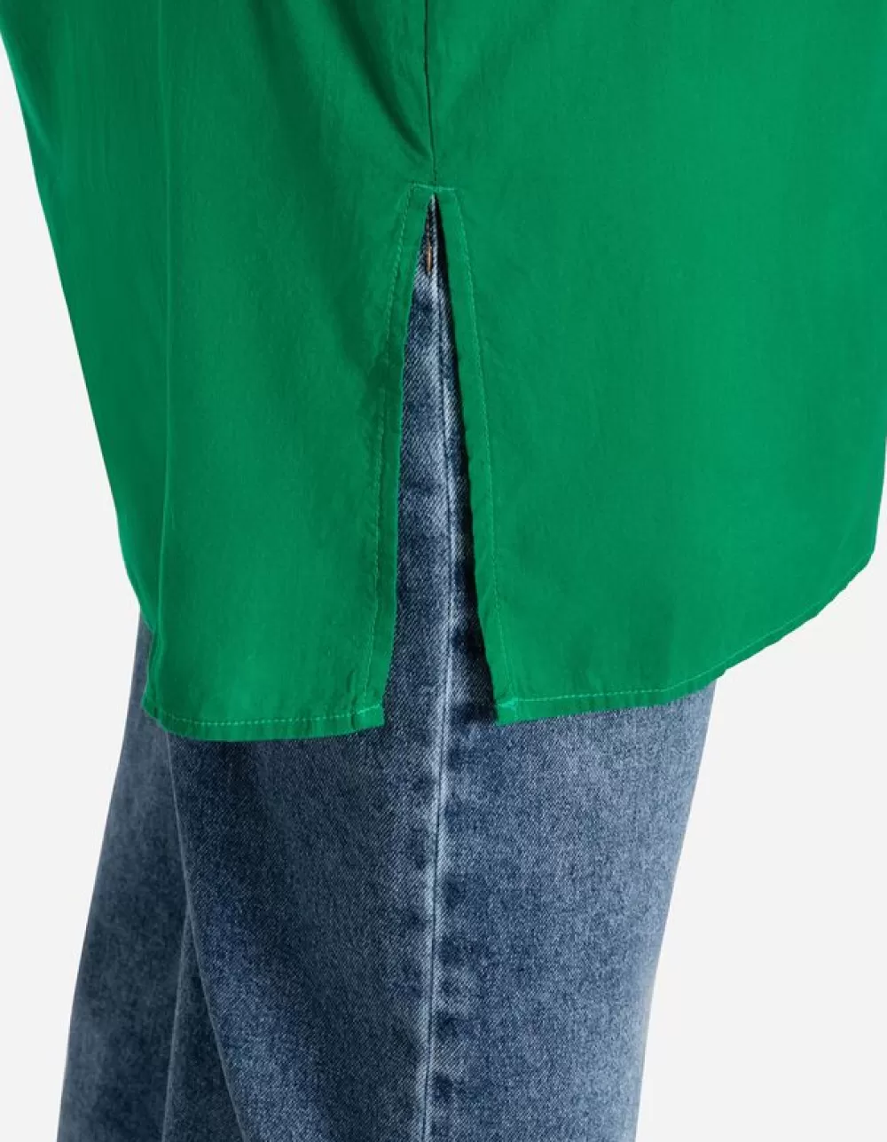 GroenEffenRonde HalsLange MouwenKatoenKnoopsluitingElastische RandenZijsplitZijsplit