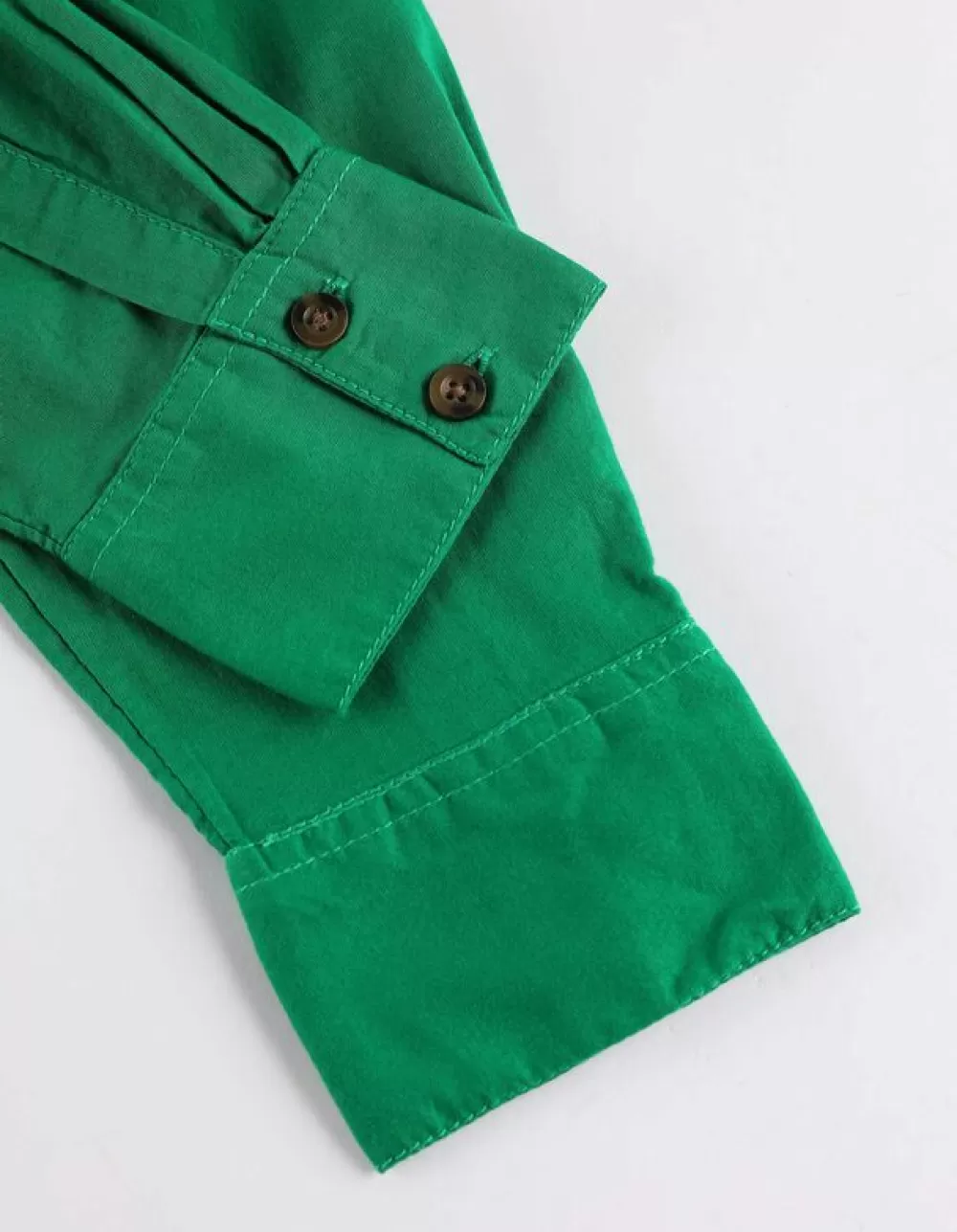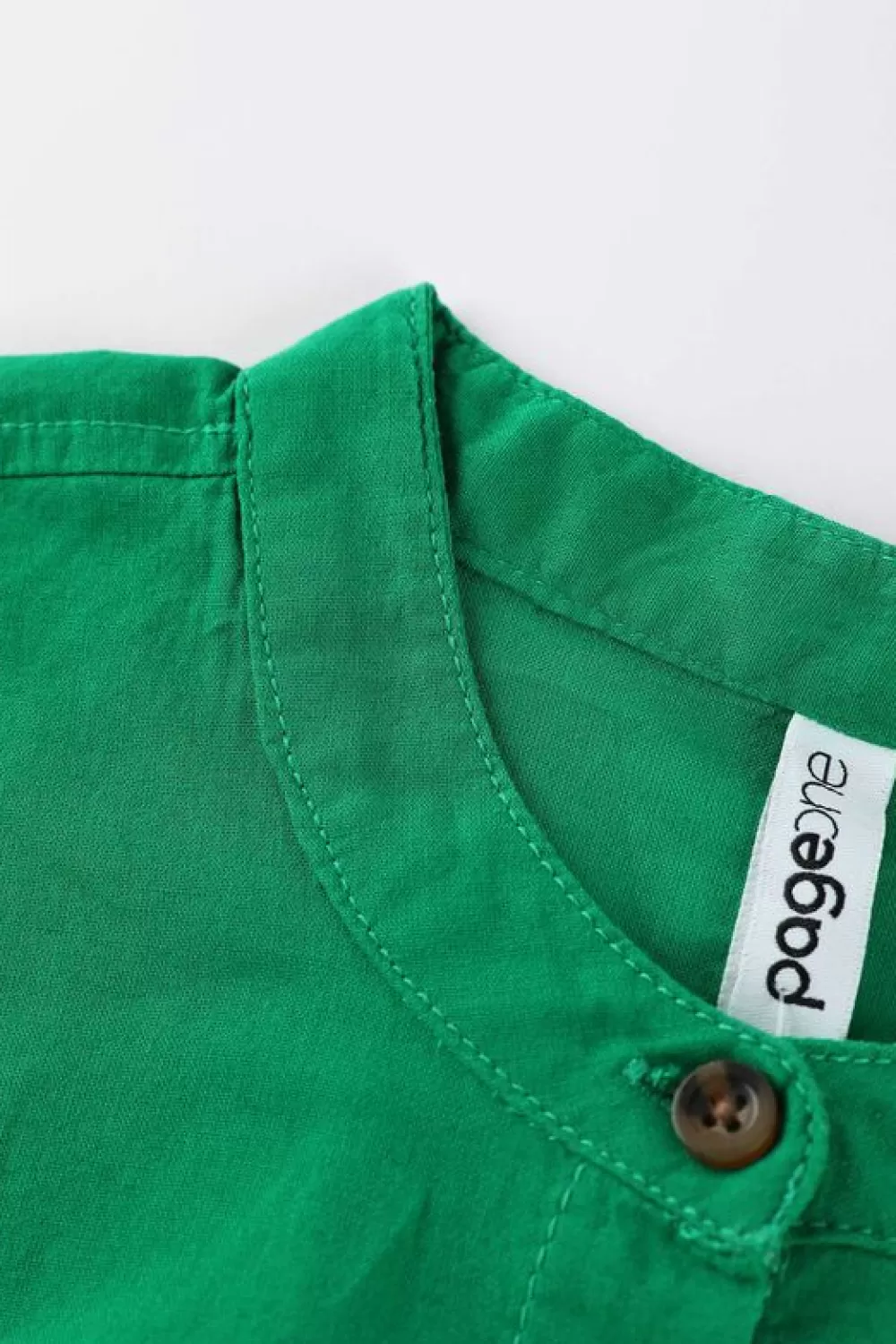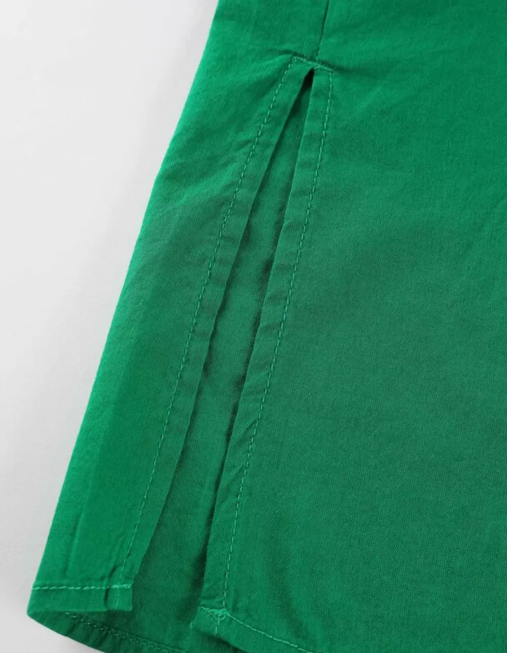 GroenEffenRonde HalsLange MouwenKatoenKnoopsluitingElastische RandenZijsplitZijsplit