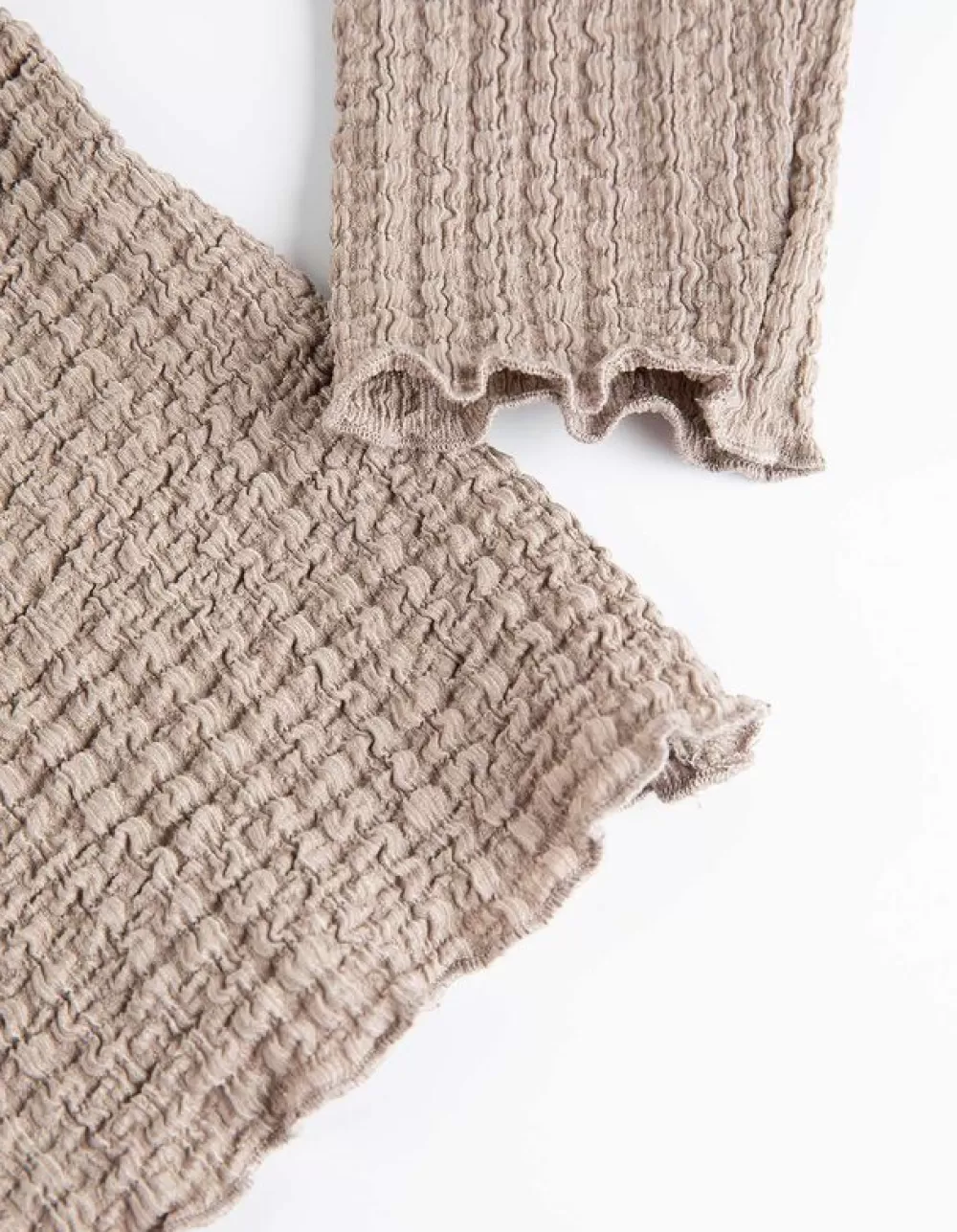 BeigeEffenHalsLange MouwenMateriaalmixZonder SluitingGeschulpte Zoom