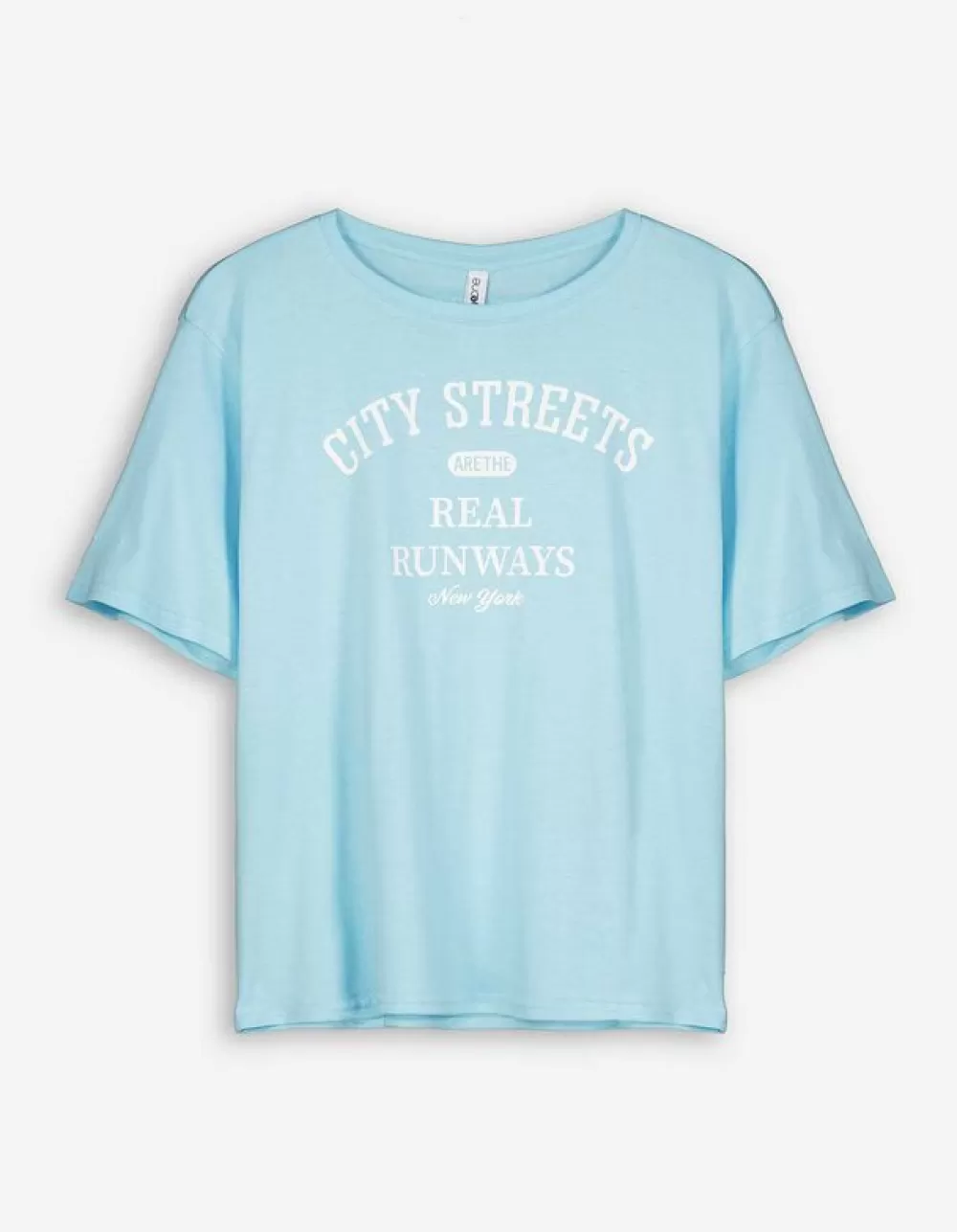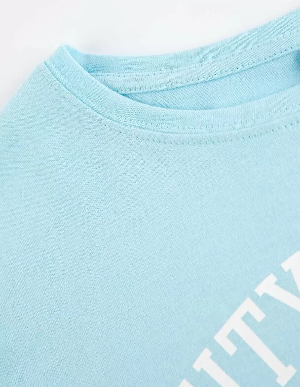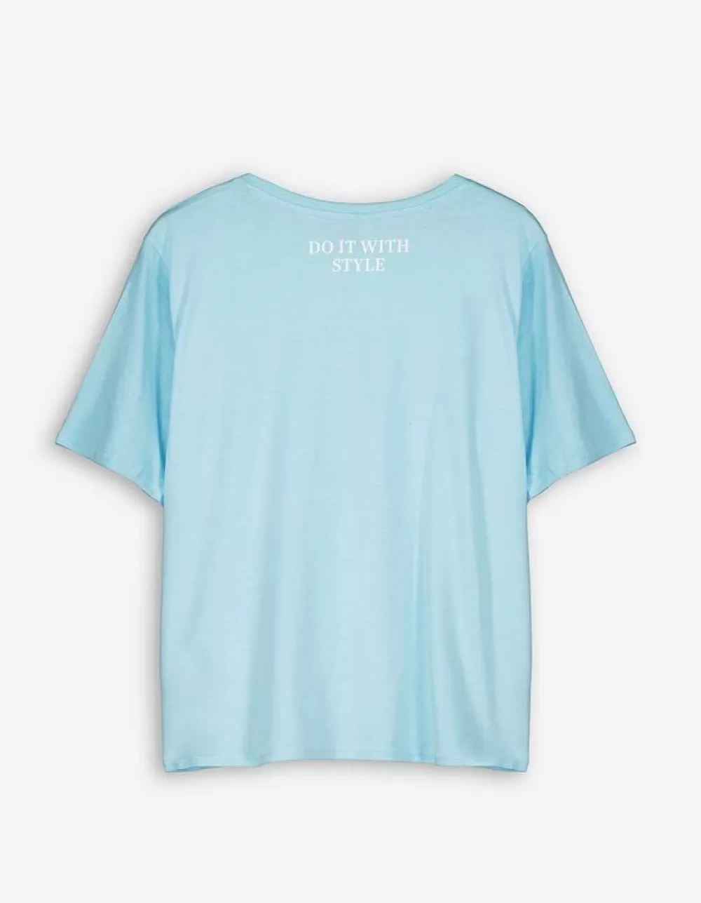 LichtblauwEffenRonde HalsKorte MouwenKatoenZonder SluitingTekstprint