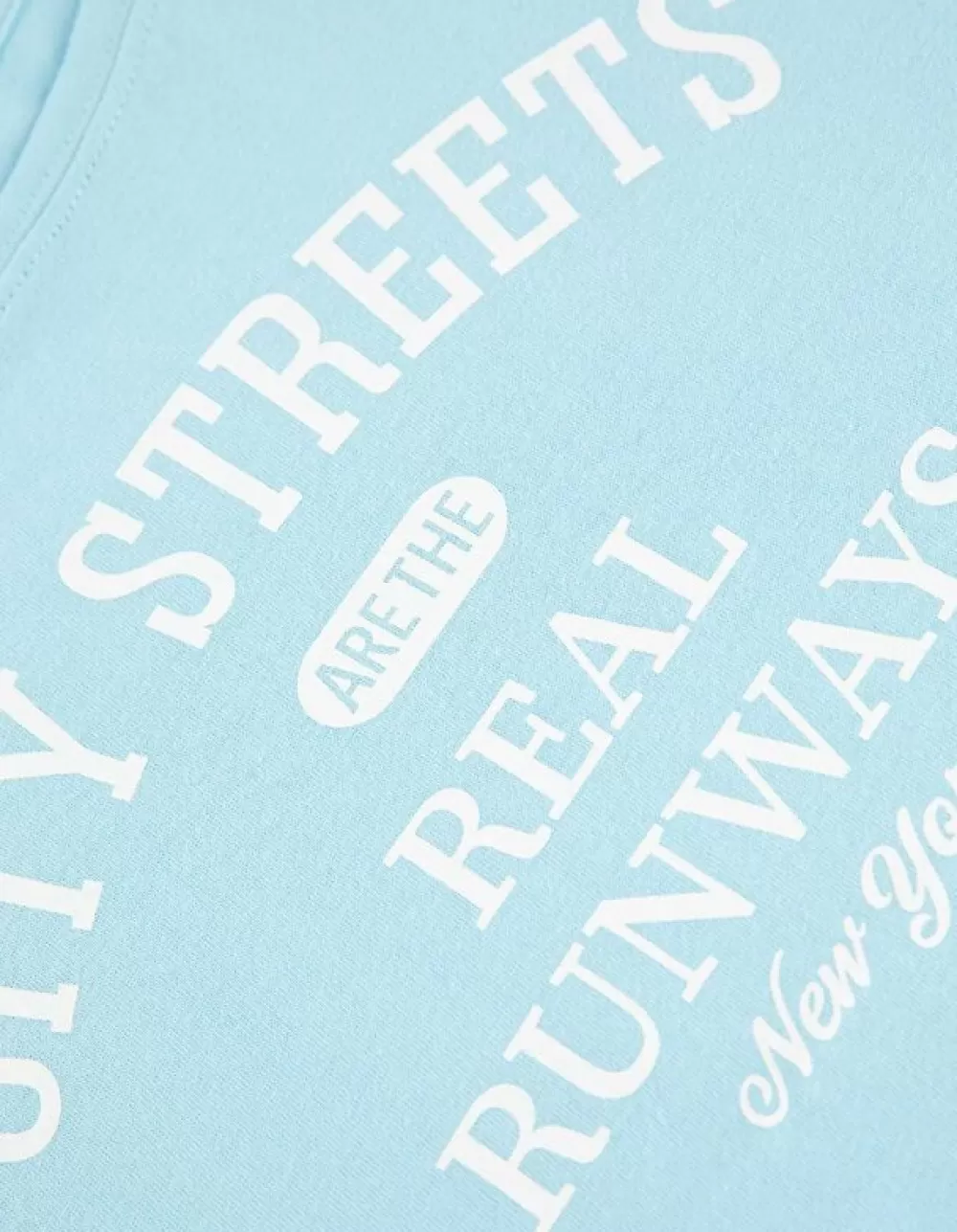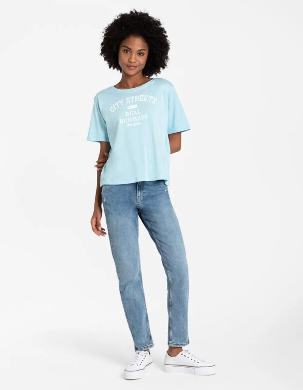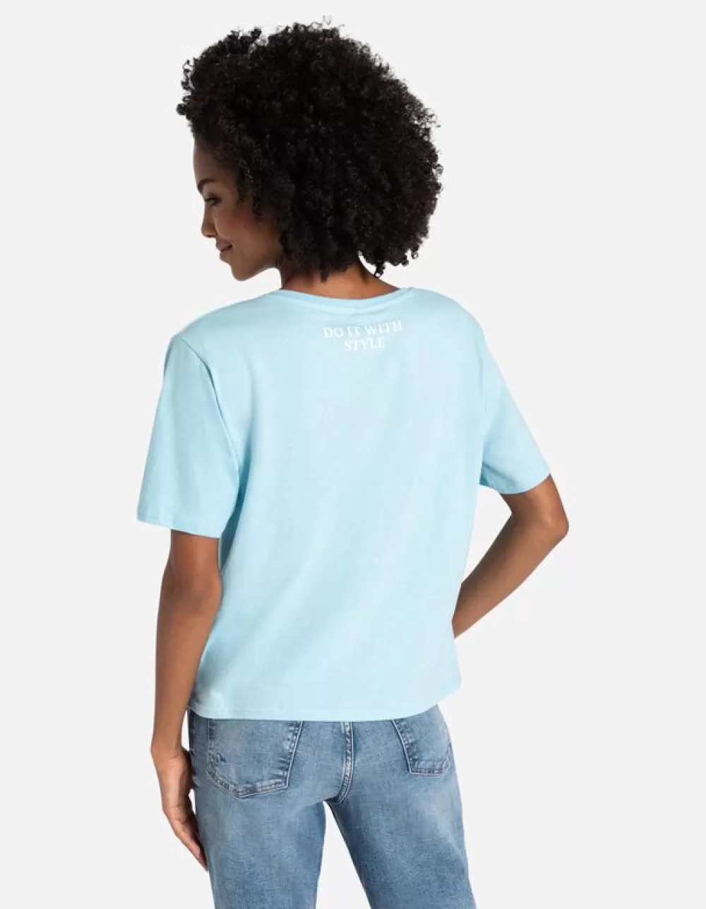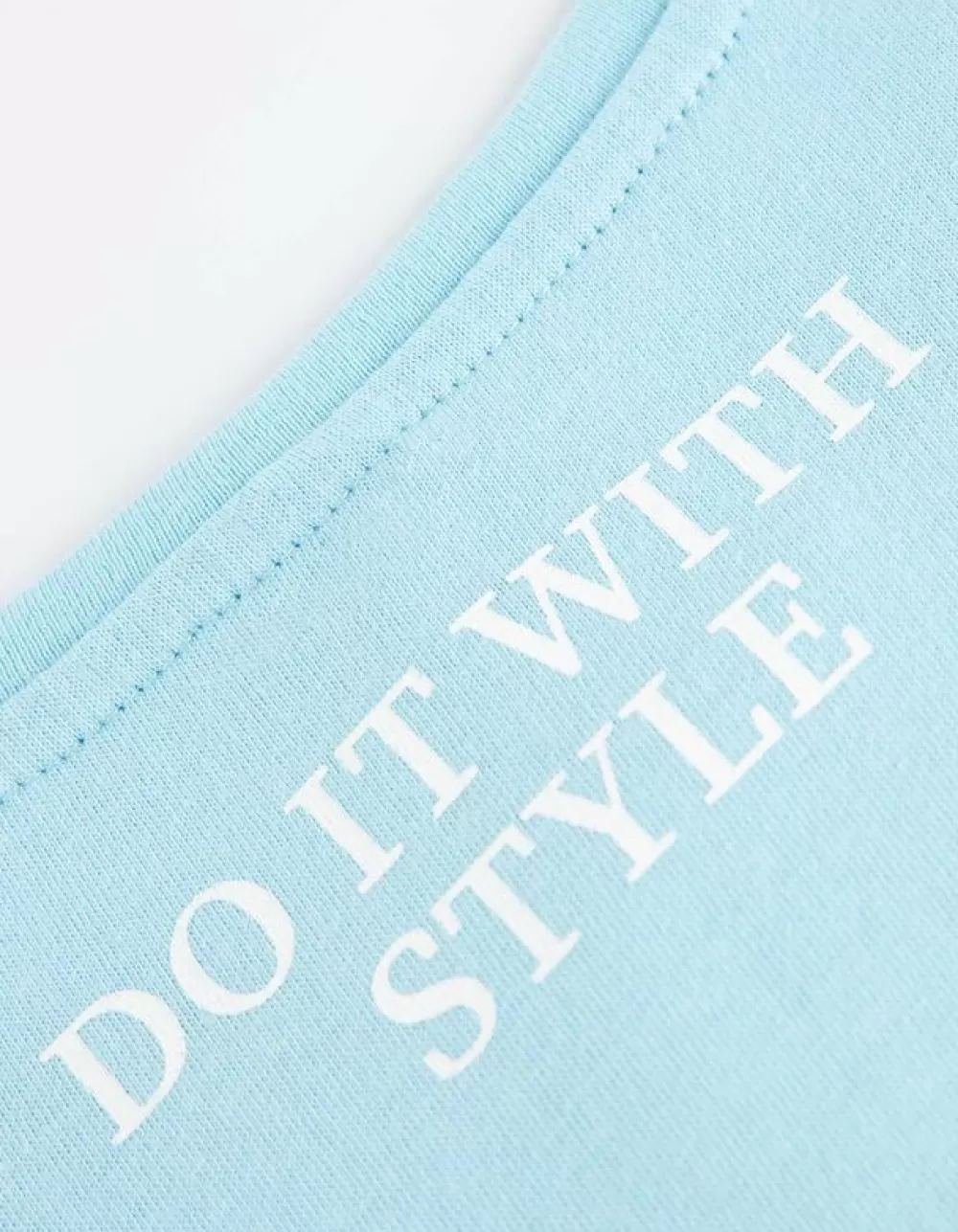 LichtblauwEffenRonde HalsKorte MouwenKatoenZonder SluitingTekstprint