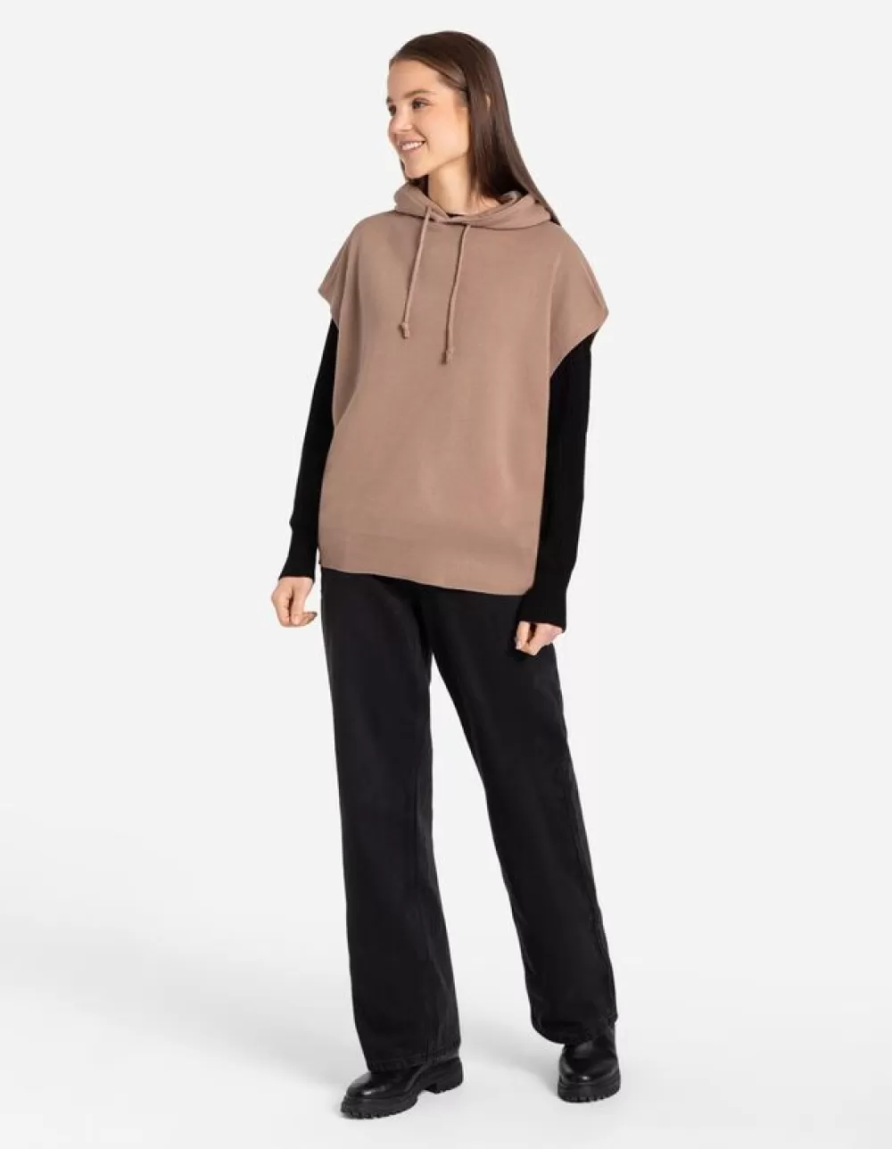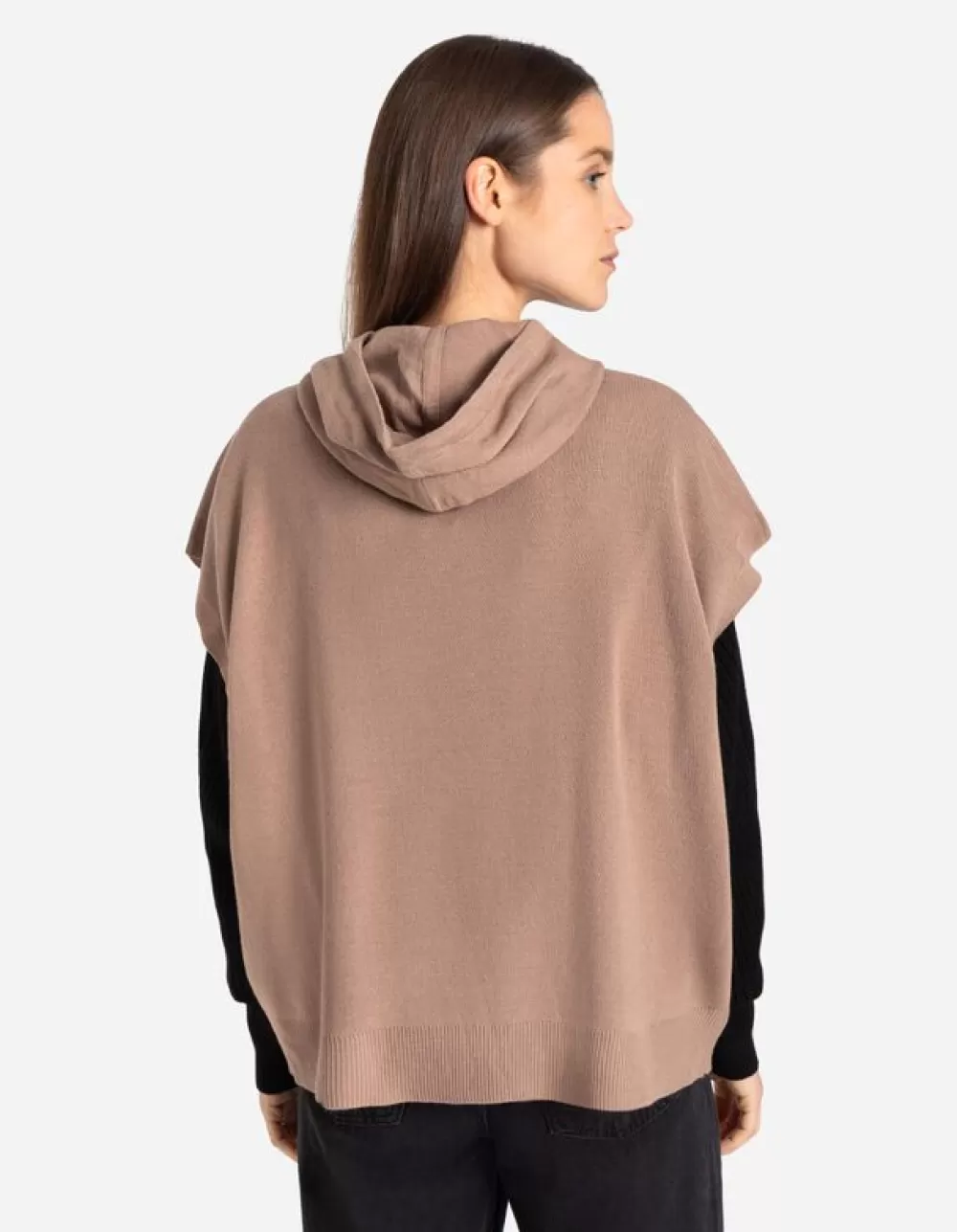 DonkerbruinEffenKapMouwloosPolyesterKoordCapuchon Met TunnelkoordRibboorden