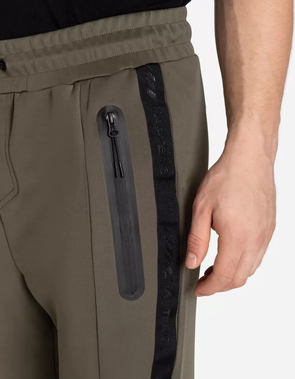 DonkergroenEffenRegular WaistNormale LengteMateriaalmixKoordElastische BandContraststrepenElastische Randen