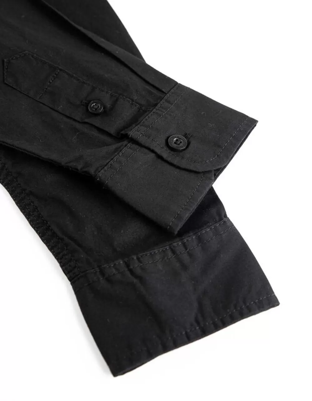 ZwartEffenRonde HalsLange MouwenKatoenKnoopsluitingLabel